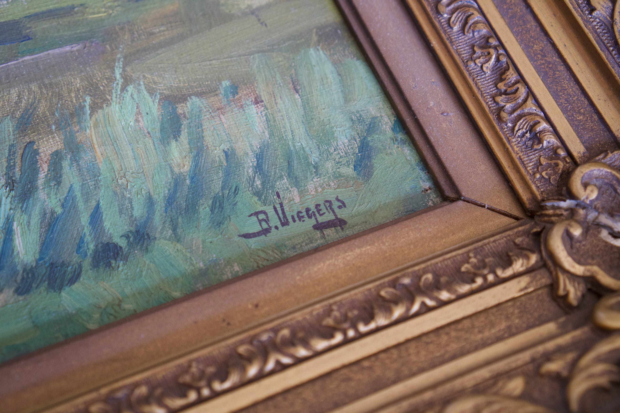 Het schilderij is gesigneerd in de rechter benedenhoek.