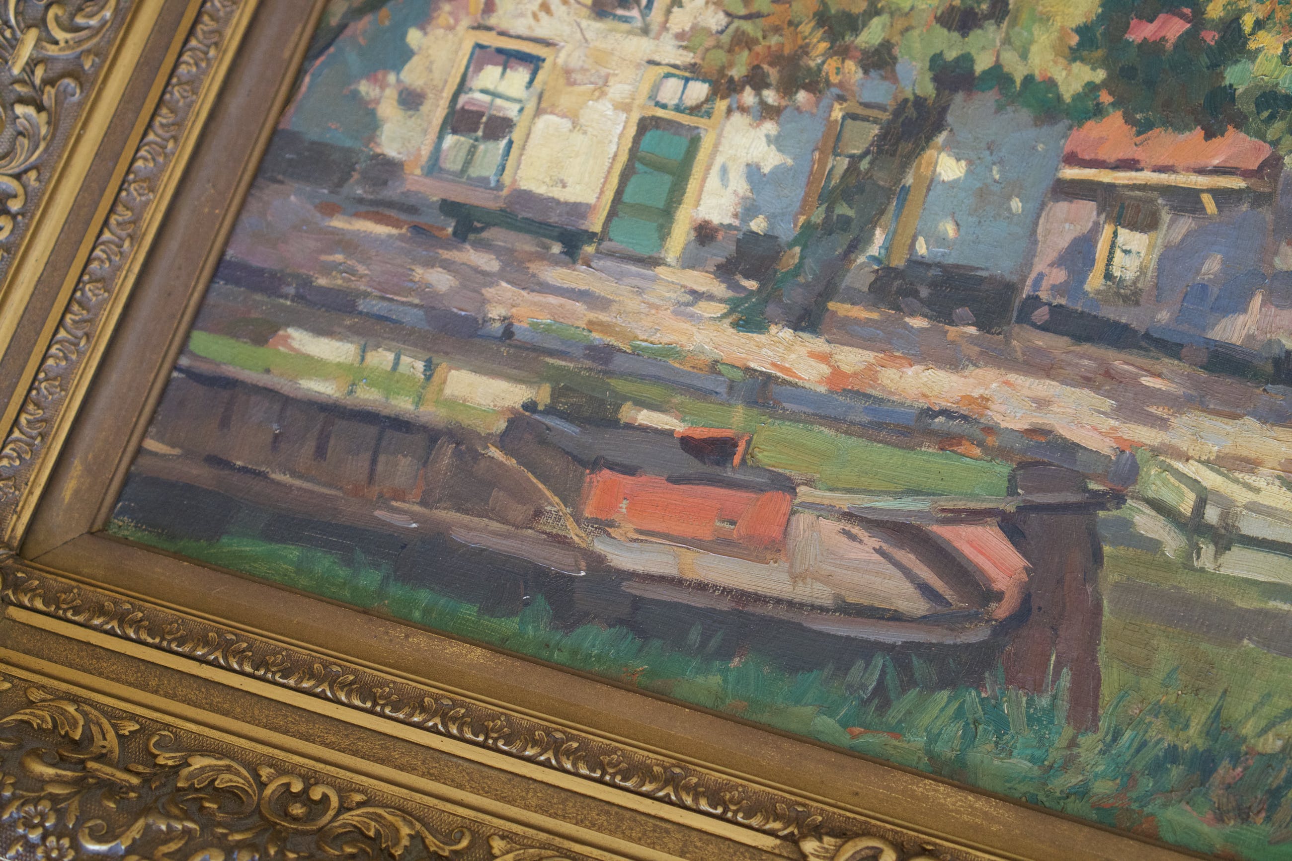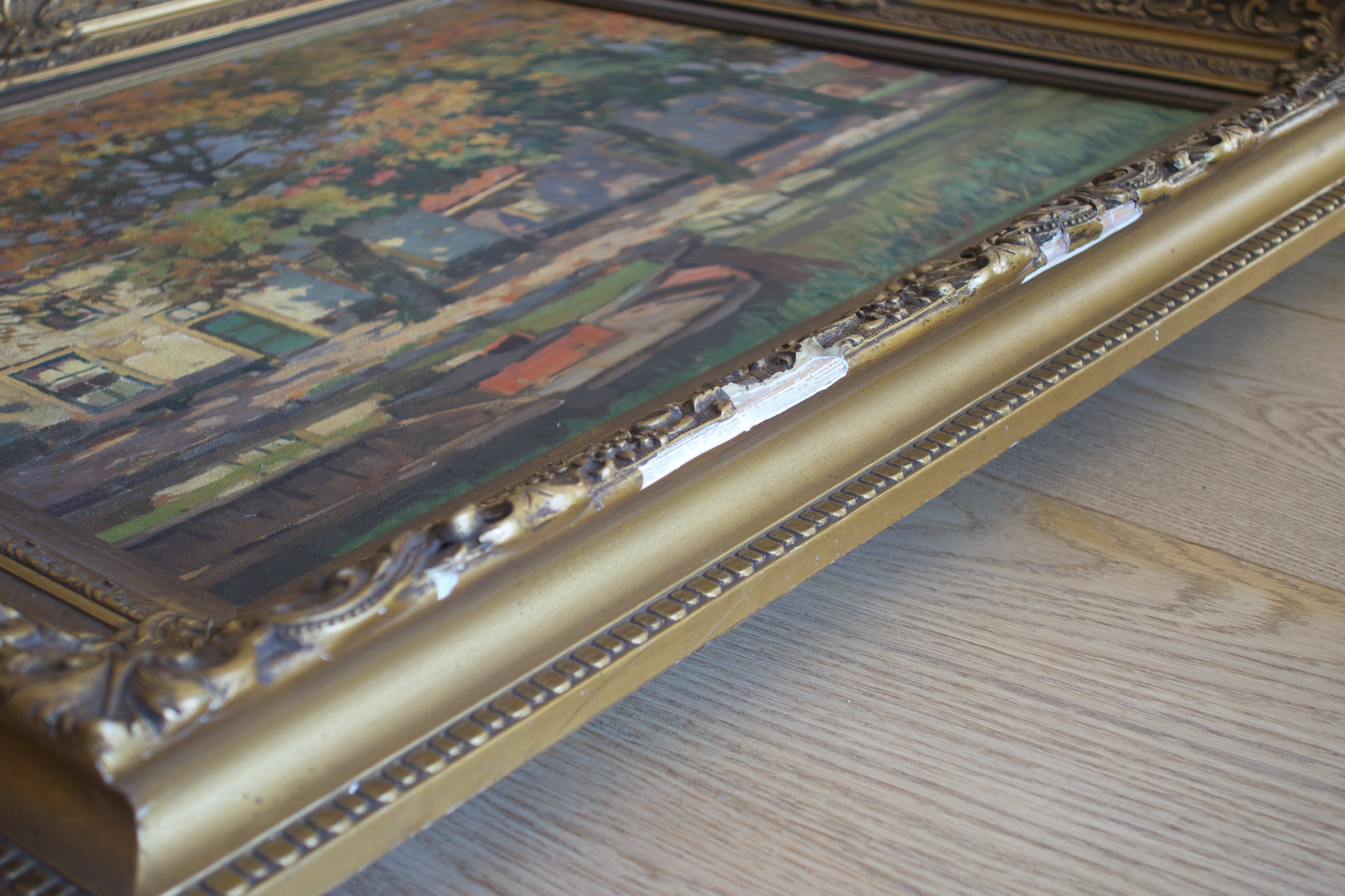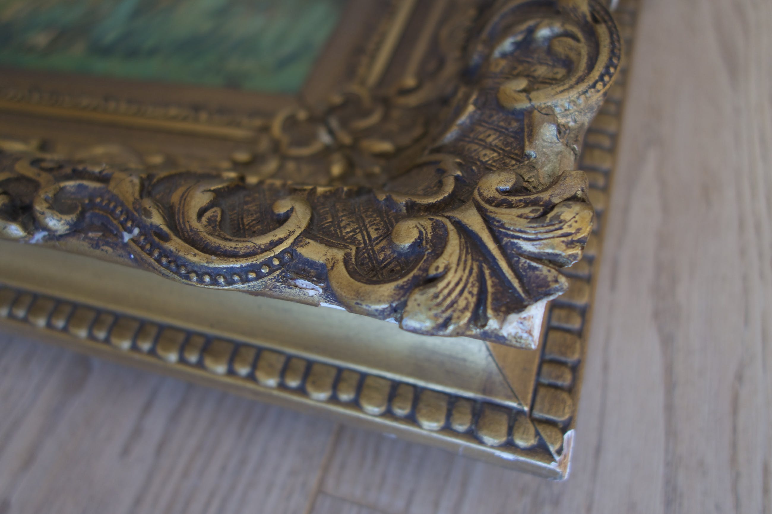 Het werk is in prima conditie en goed ingelijst, al is de lijst op een aantal plaatsen beschadigd. Naar mijn mening komt het werk een stuk mooier uit met een meer passende lichtere lijst.
