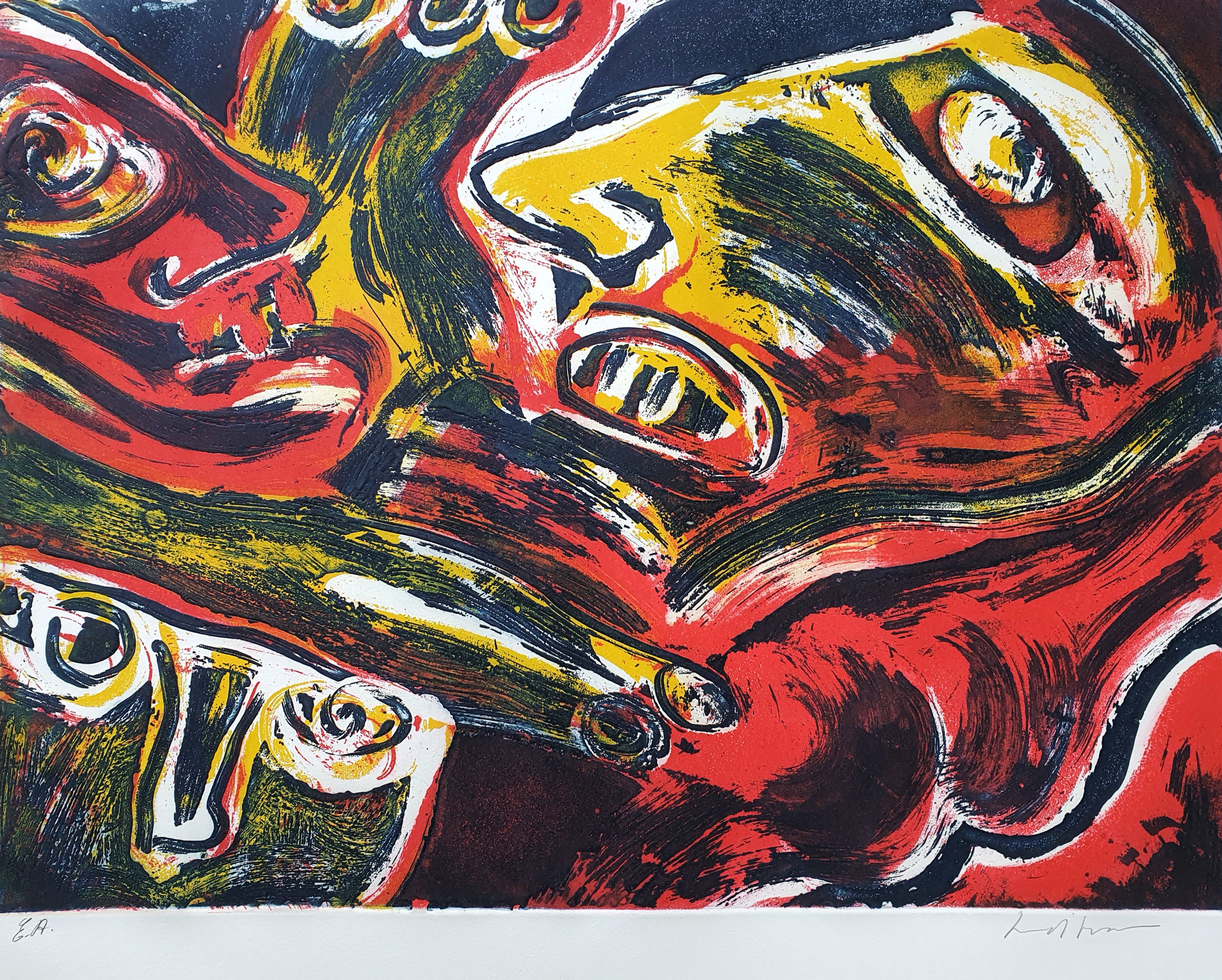 Kunstenaar: Bengt Lindstrom Techniek: Carborundum Oplage: E.a. Gesigneerd: Rechtsonder Ingelijst: Niet ingelijst Afmeting blad (HxB): 75 x 100 cm Conditie Werk: Goed, klein scheurtje in de marge.