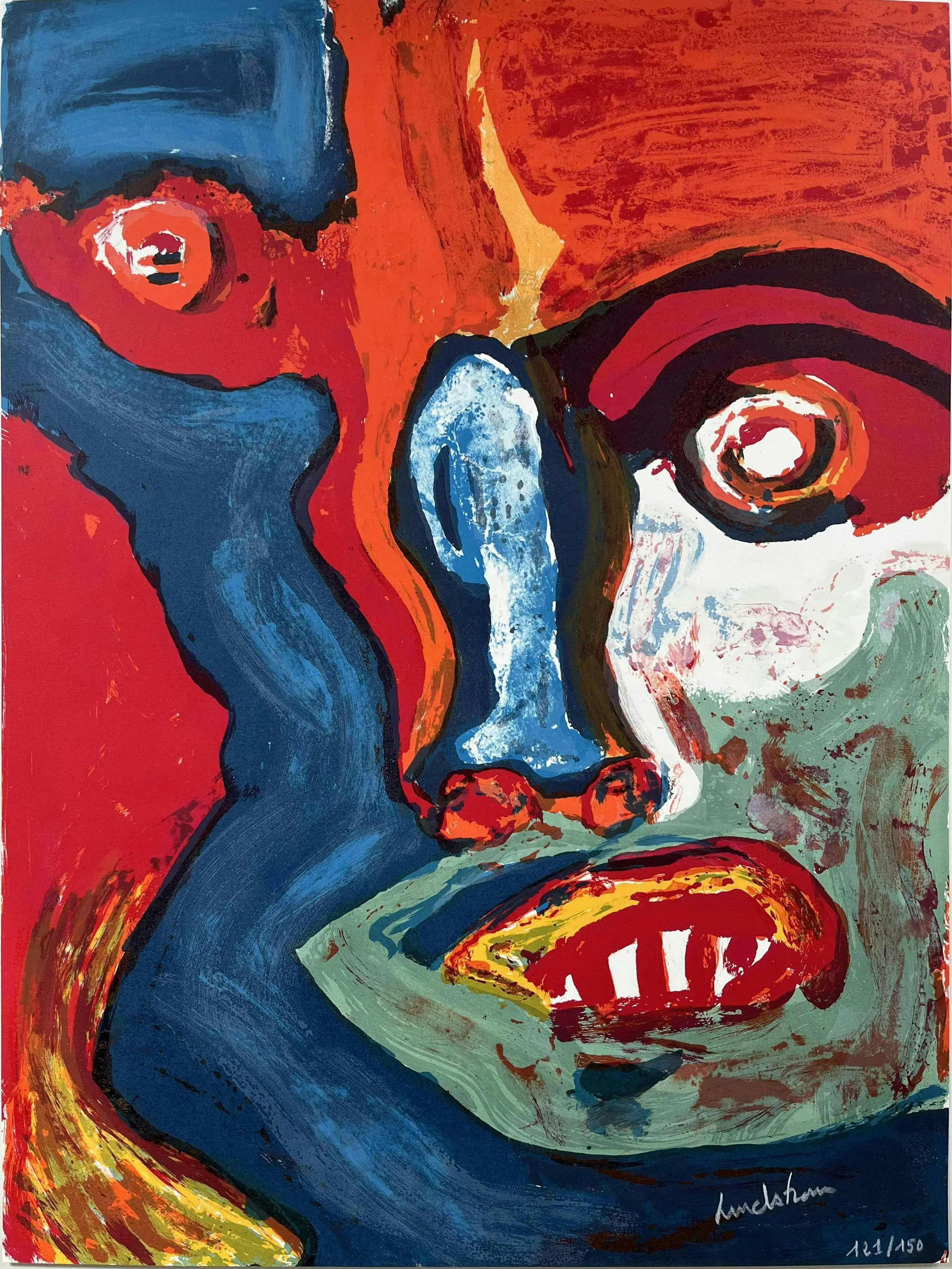 Mooi groot kleurrijk en expressief werk van Bengt Lindstrom.