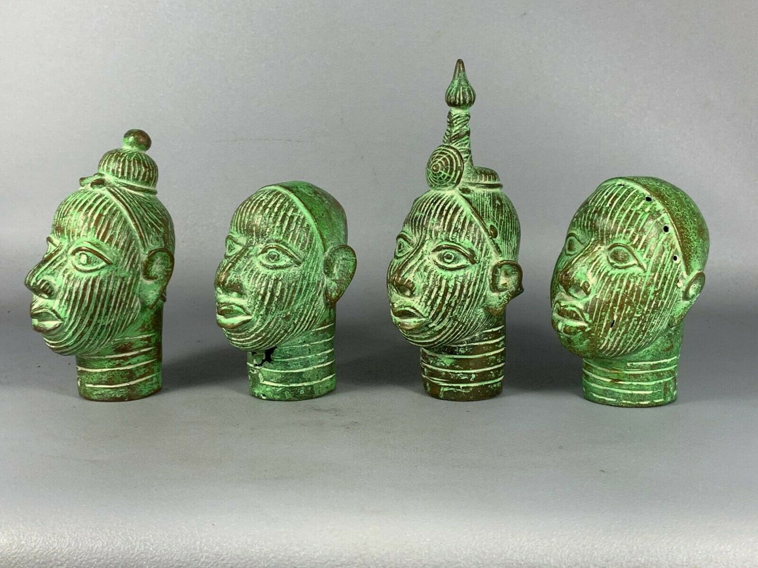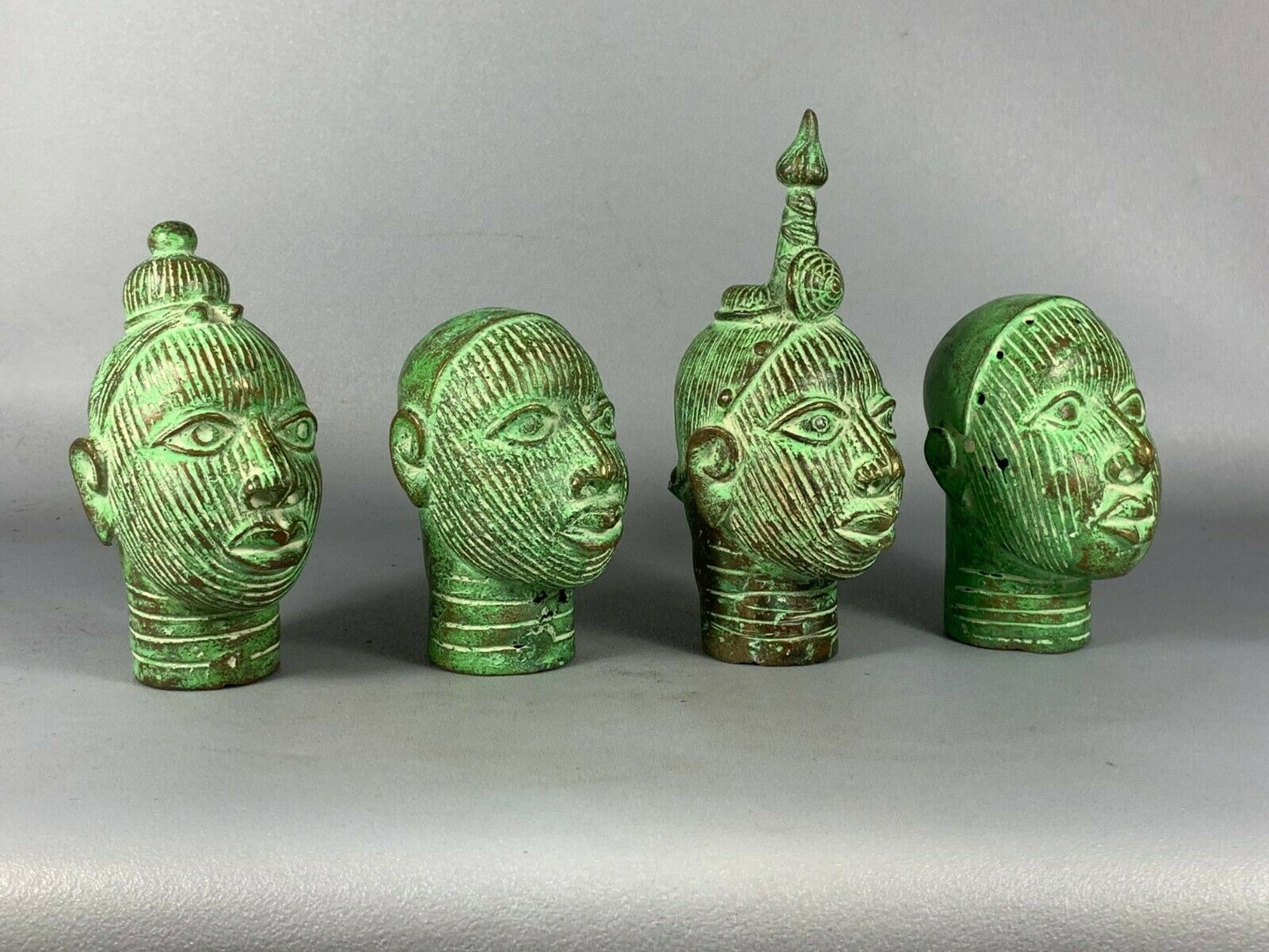 Nigeria: 4 Bronze BENIN BINI EDO heads.