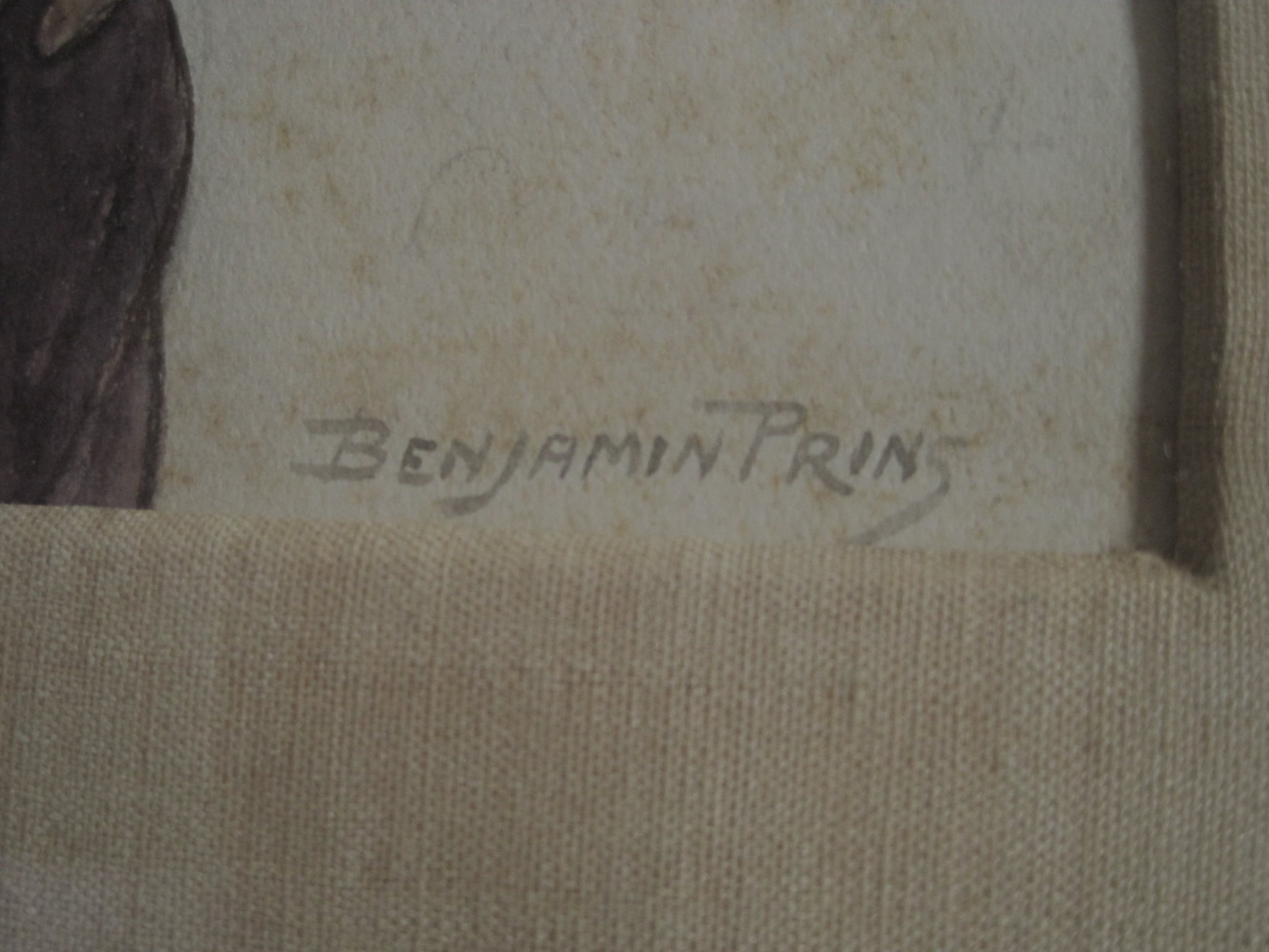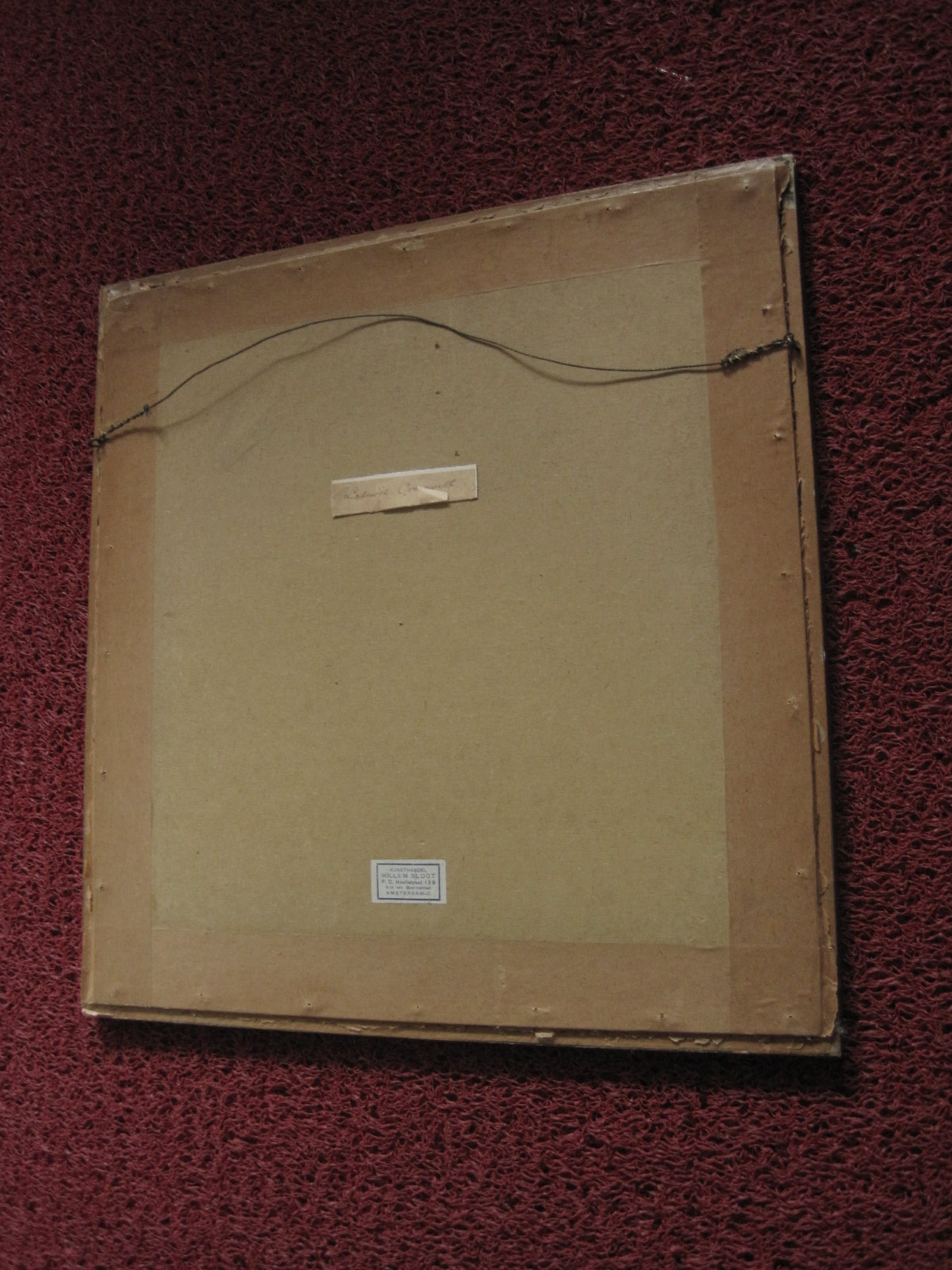 | weinig zichtbare onregelmatigheden. Prachtige kleuren. Originele art deco lijst. goed ( op de achtergrond lijken bruine zuurplekjes zichtbaar, maar bij nadere bestudering bleek dat om de print van het behang tegaan ) | |||