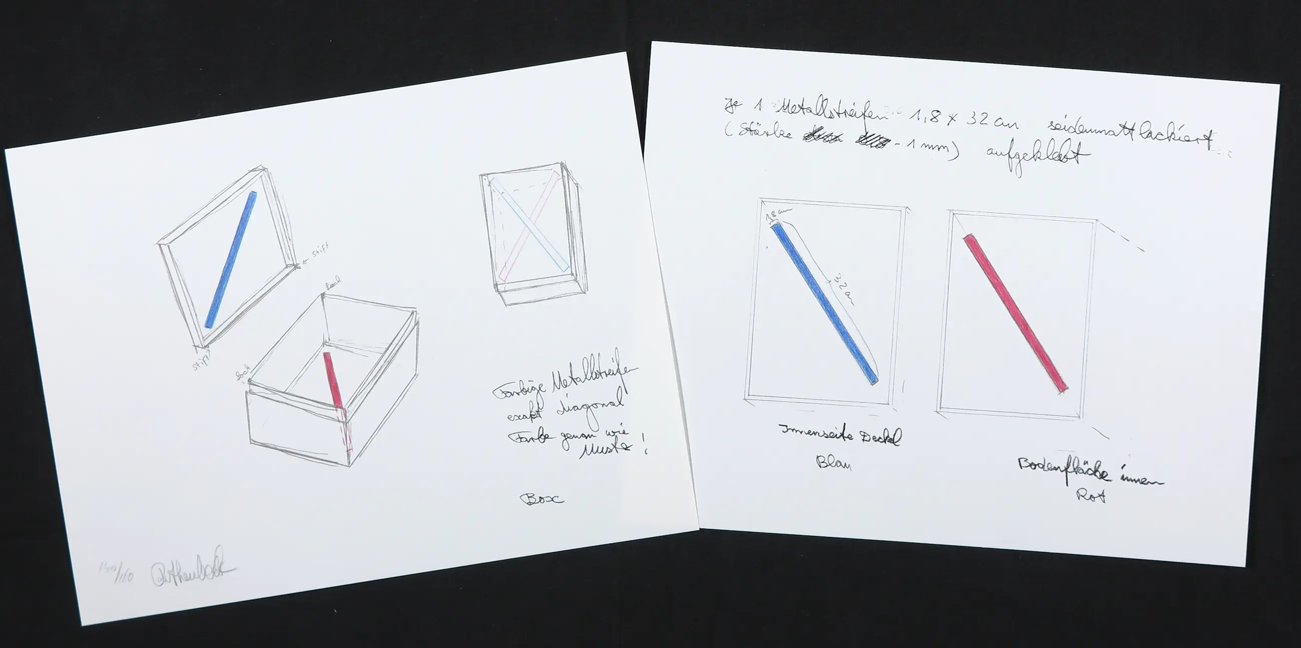 Reiner Ruthenbeck - Twee zeefdrukken en aluminium sculptuur (op de bodem en in de deksel van de kist)