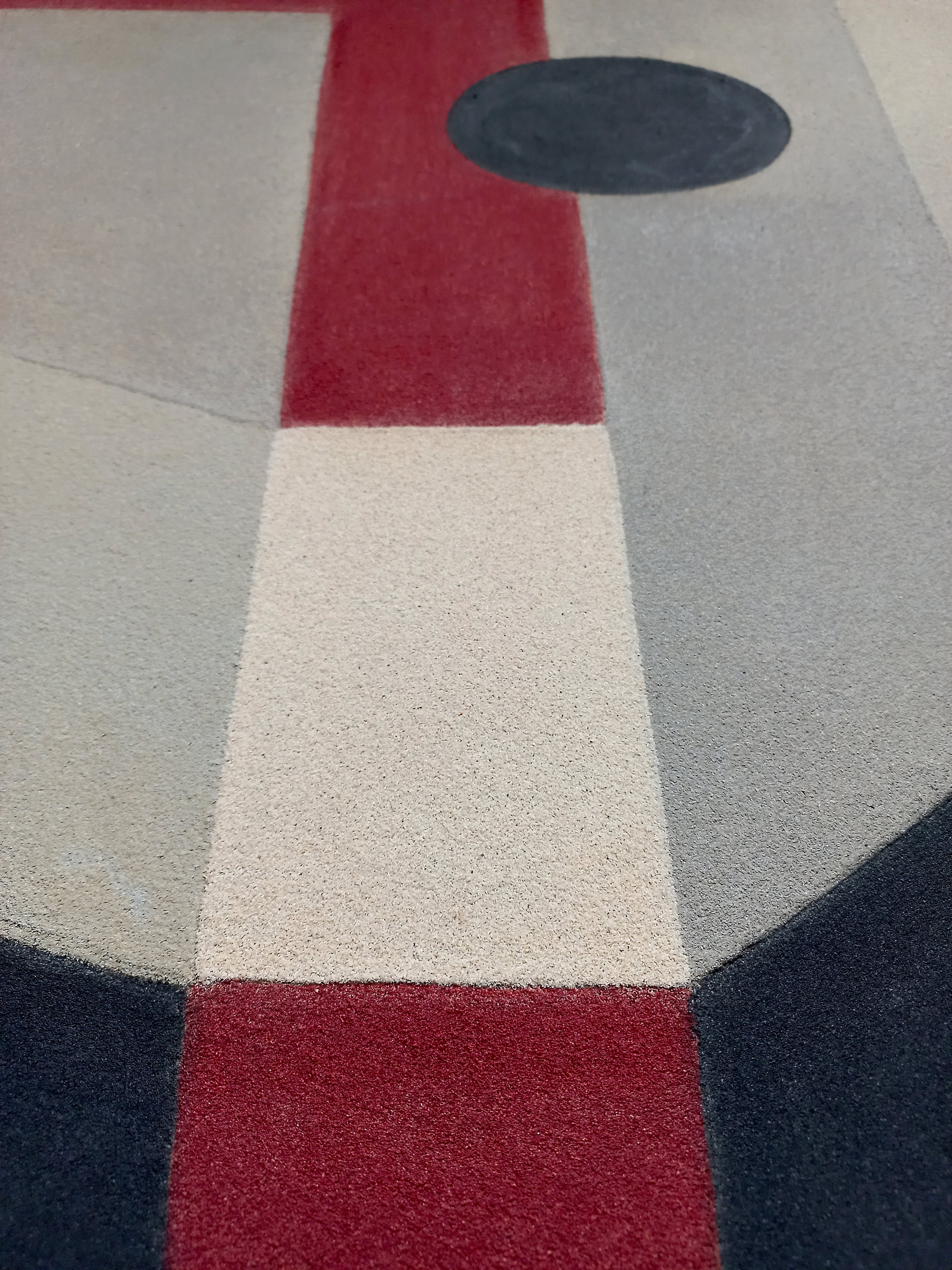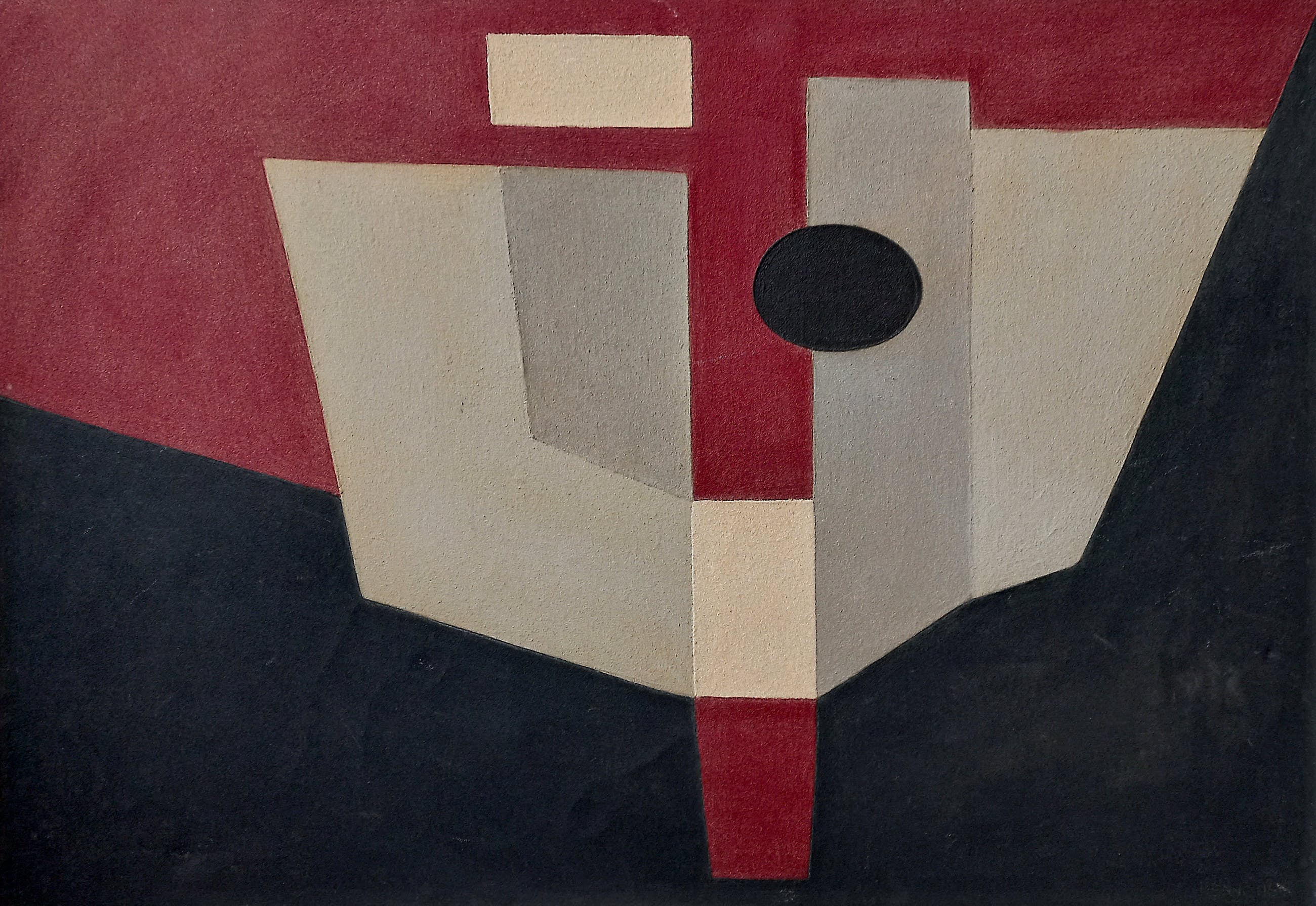 Spannend, geometrisch abstract werk van Benno Helders. Materieverf (een soort verf gemengd met zand) op doek, gesigneerd rechtsonder (“Bennoh64”, niet helemaal zeker van de datering), in verso diverse labels met herkomst (BKR, Gemeentemusea Amsterdam, Nuon). Alles in goede conditie, er zitten wat veegjes op het zwarte gedeelte en ook wat craquelure.