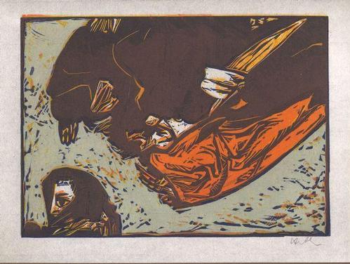 Benno Huth - zu einem Gedicht von Catull - Farblinolschnitt - 1969
