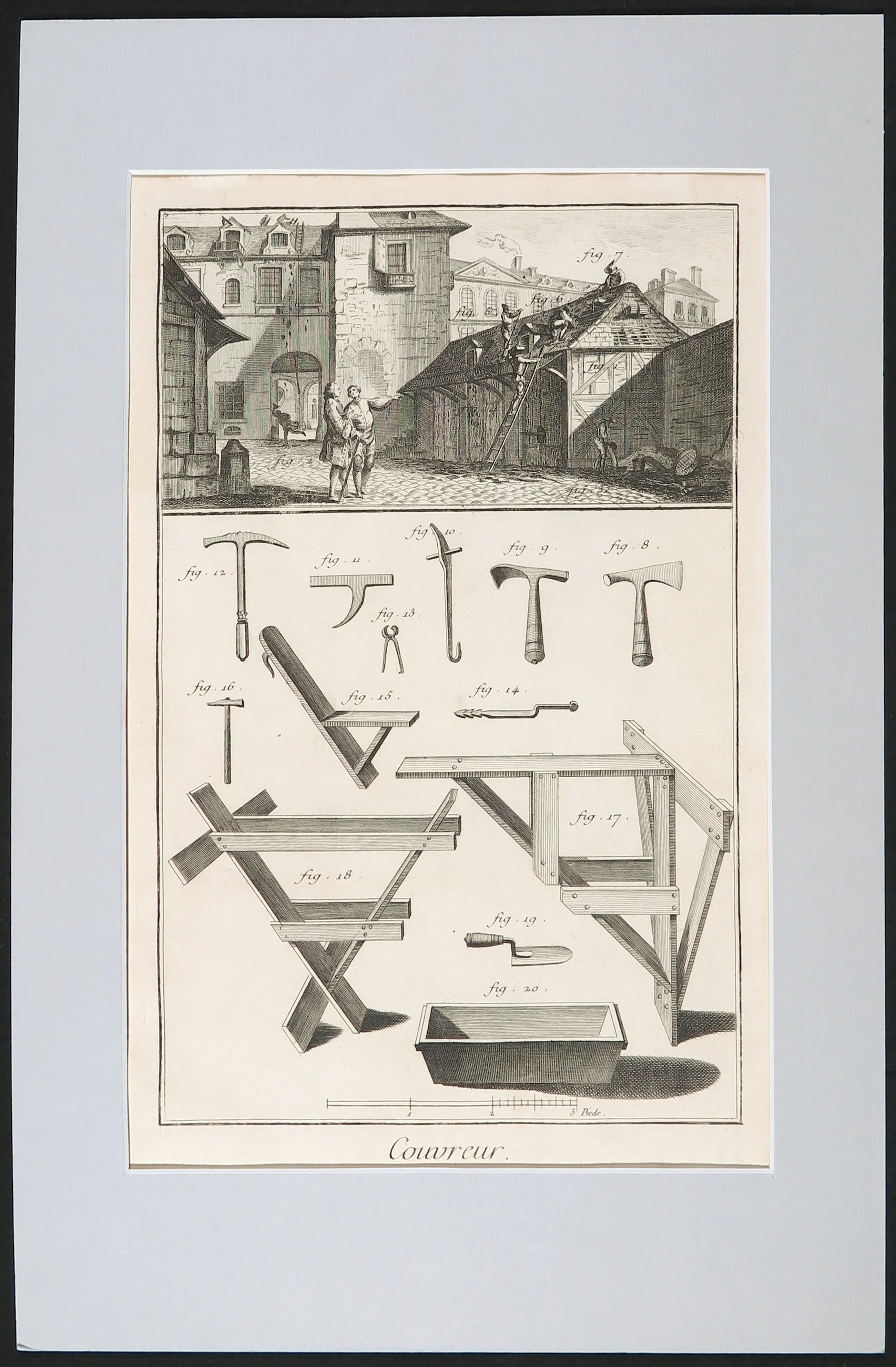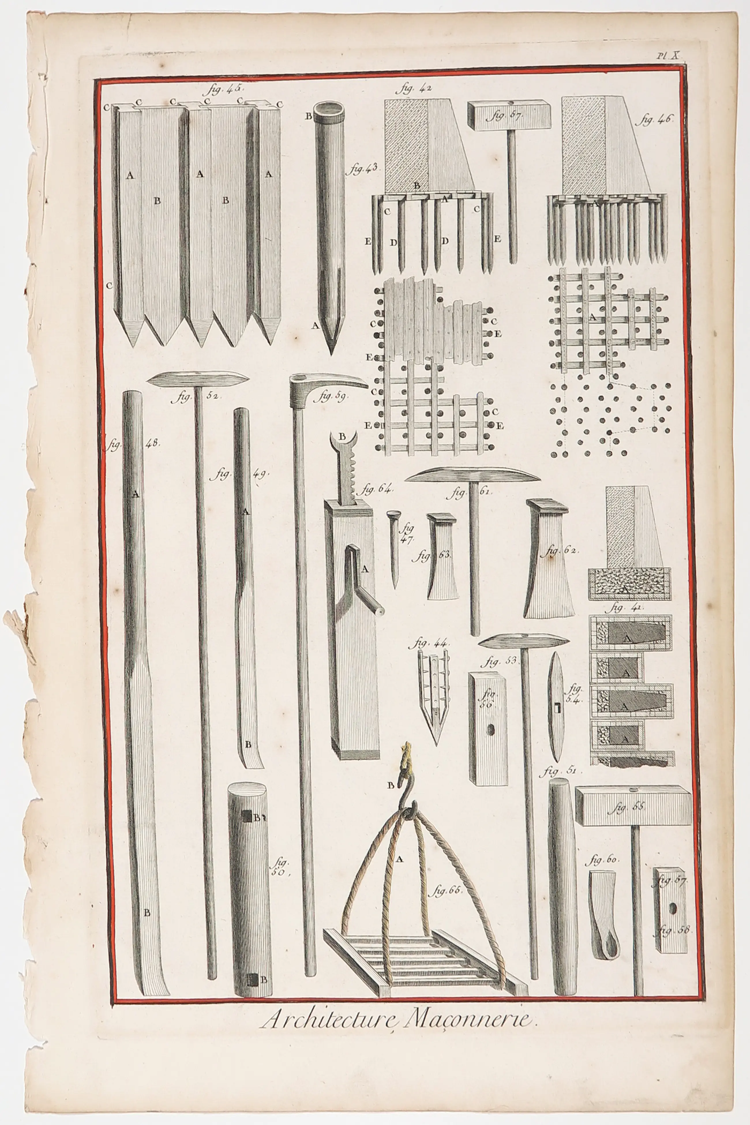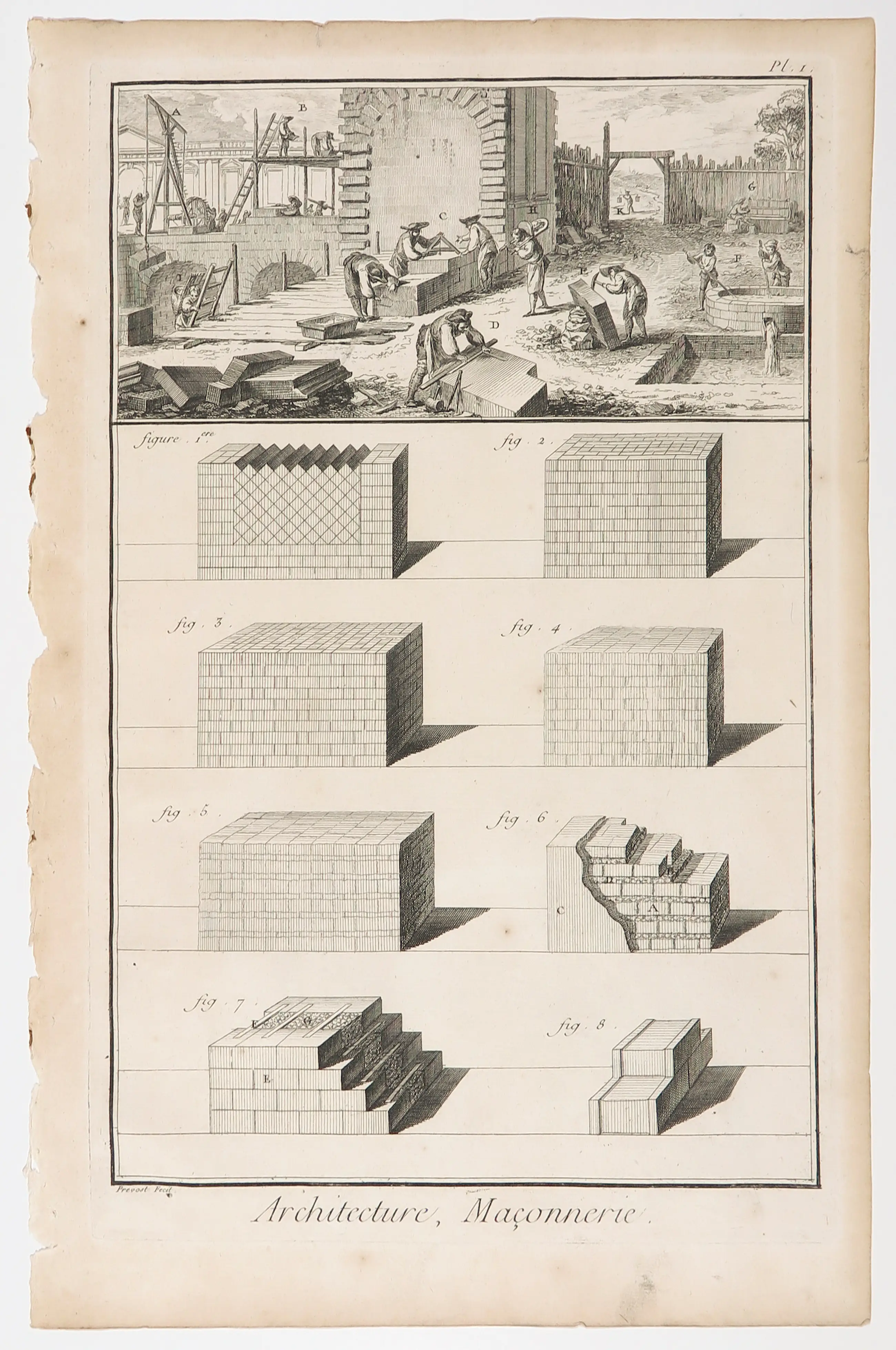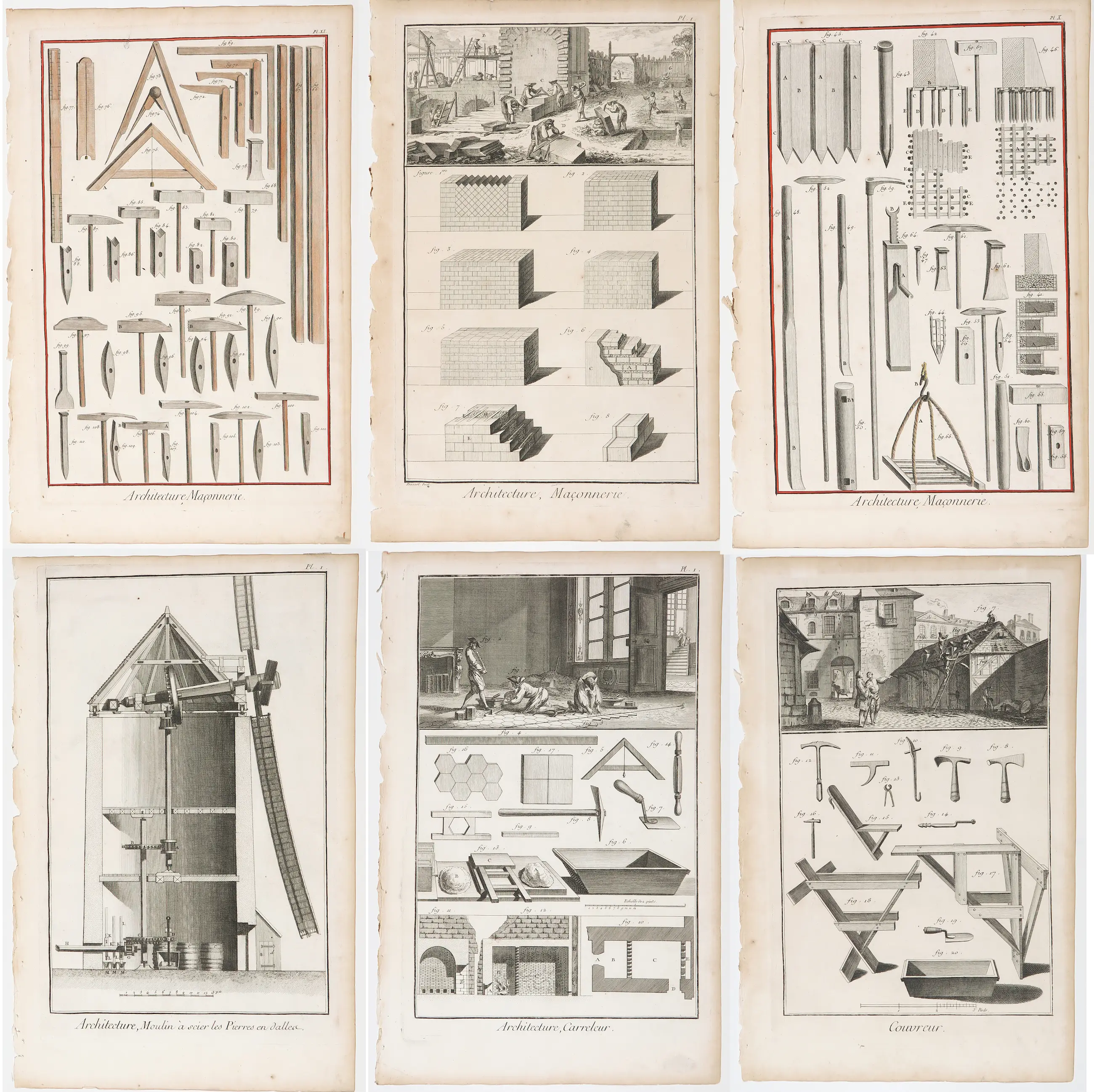 Lot van zes gravures, met bouwen als thema. Eén gravure is in de plaat gesigneerd (Prevost Fecit), de andere vijf niet. Deze zijn naar alle waarschijnlijkheid ook van de hand van Prévost.