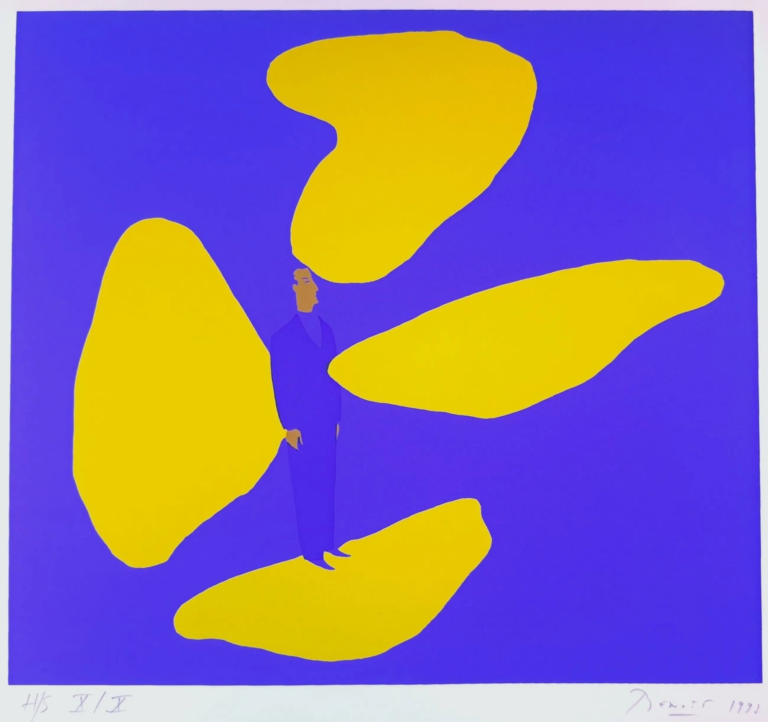 De zeefdruk "Felle Hemel" werd in 1993 in opdracht van de auteur en uitgeverij Loempia gedrukt door Roel Goussey in een oplage van 100 exemplaren, ter gelegenheid van het verschijnen van het gelijknamige boek. Tegelijk werden 10 exemplaren gedrukt, gemerkt van I tot X, bestemd voor de kunstenaar en de medewerkers. Dit is nummer X/X.