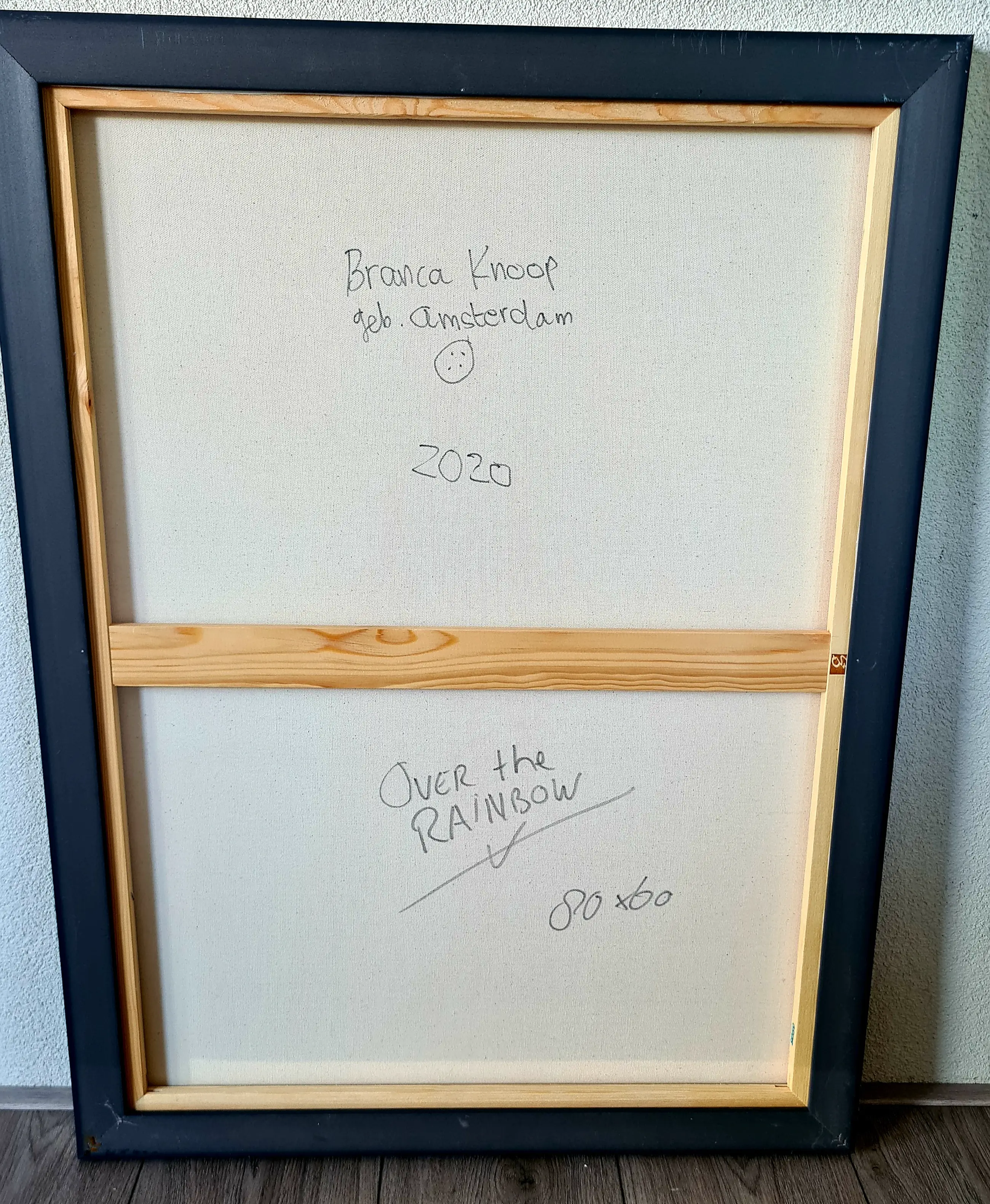 Het werk is netjes gelijst, kan zo aan de muur. Voorzien van een bijpassende lijst.