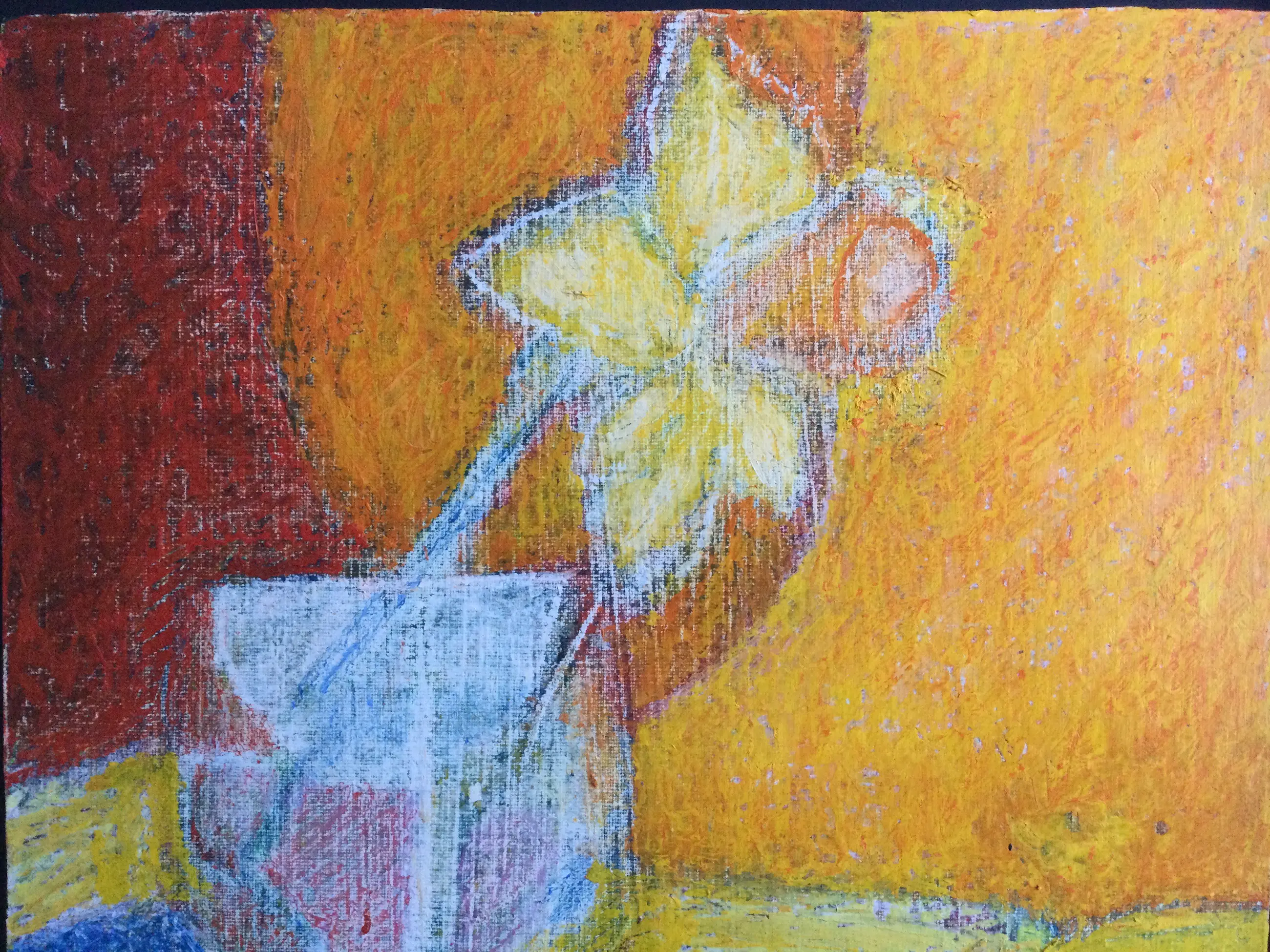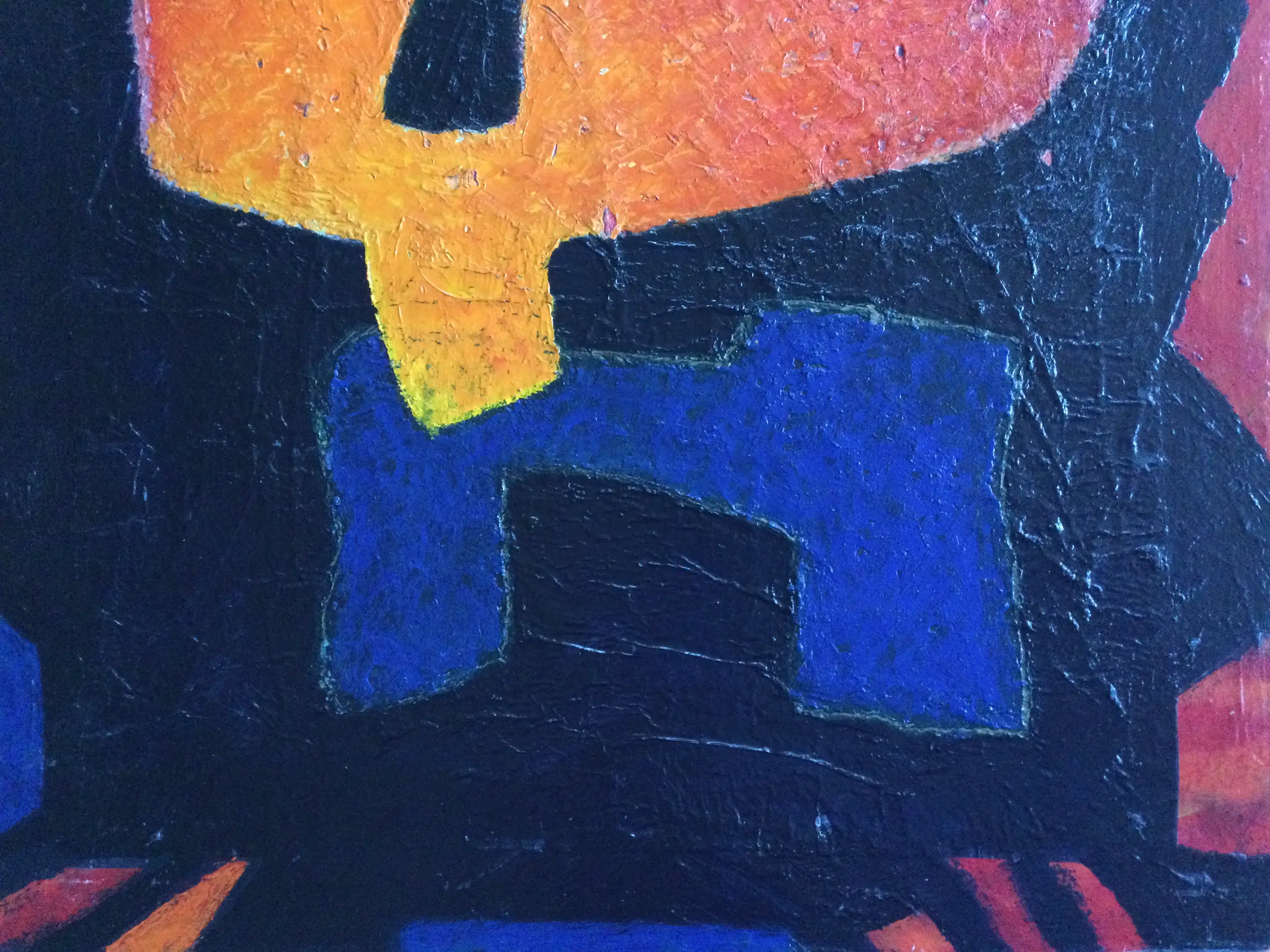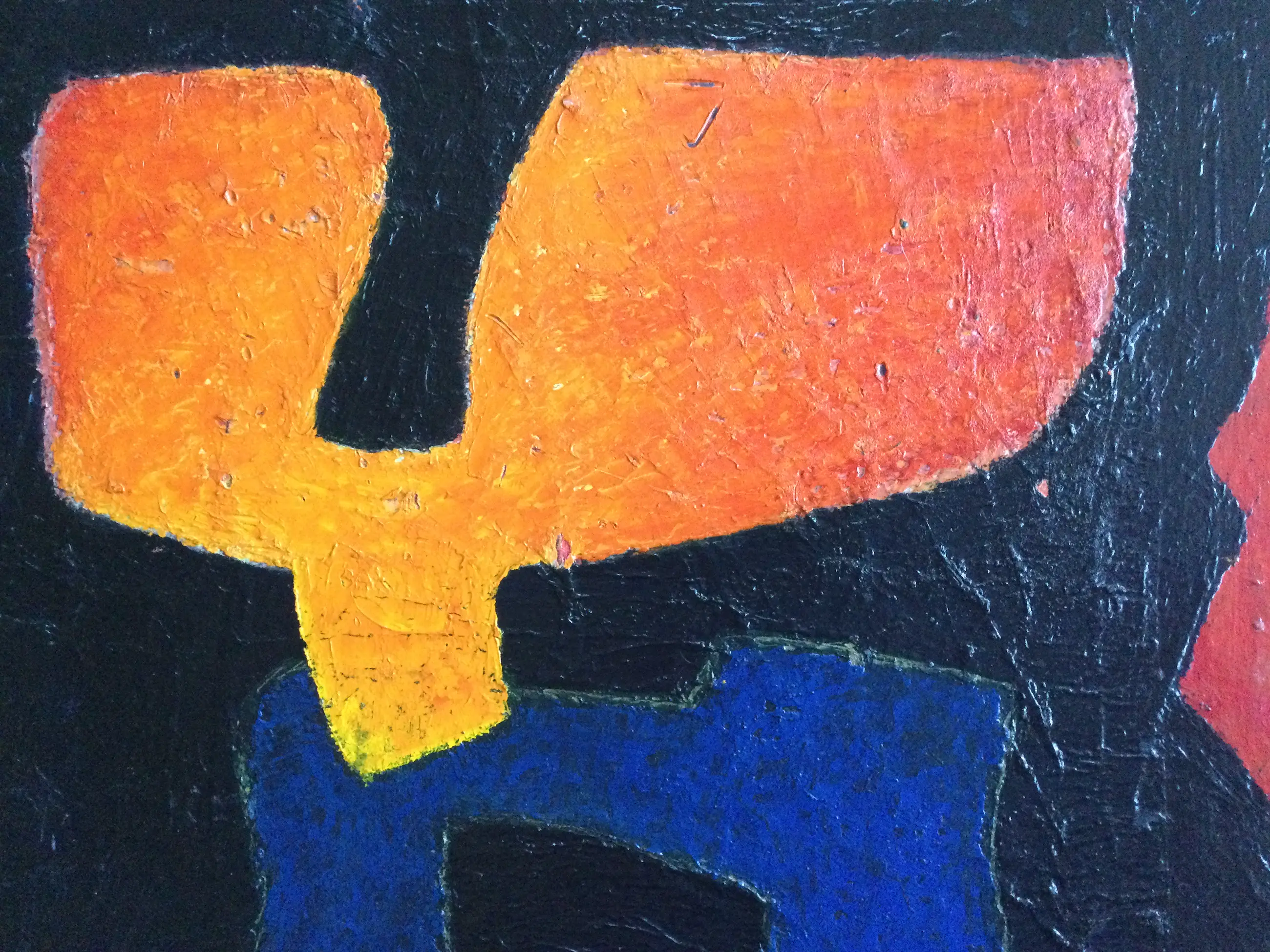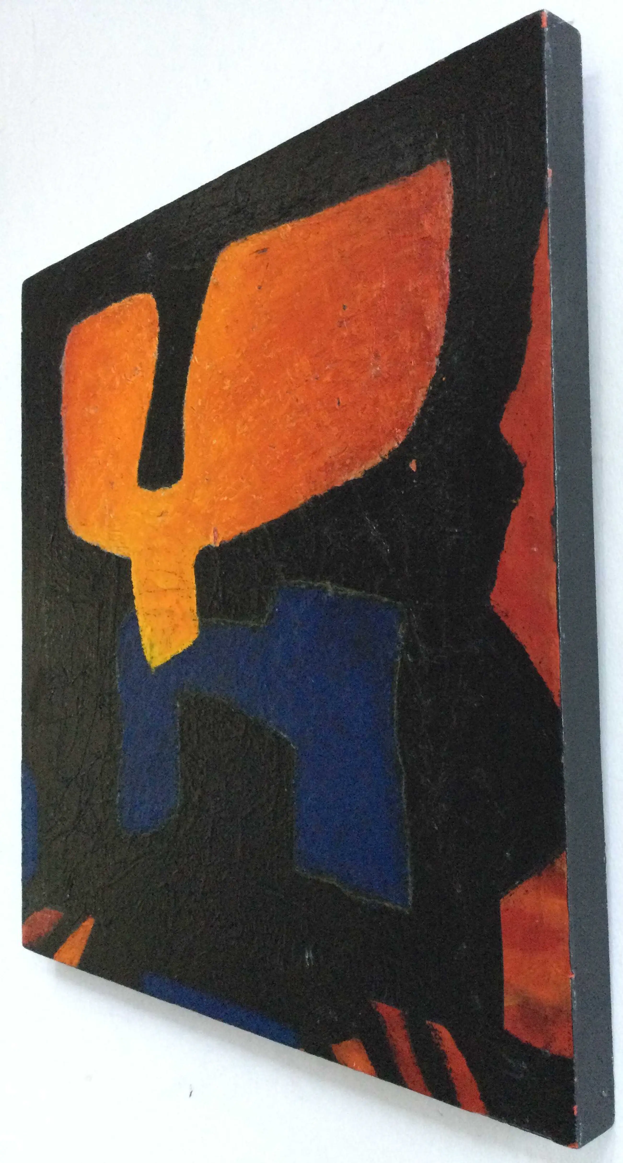 De werken verkeren in (zeer) goede staat. Het abstracte werk is deels geschilderd op papier (verlijmd op board) waardoor er een reliëf structuur ontstaat. In het zwarte en oranje gedeelte is een klein stukje papier verdwenen, niet storend. Zie tweede foto (detail).