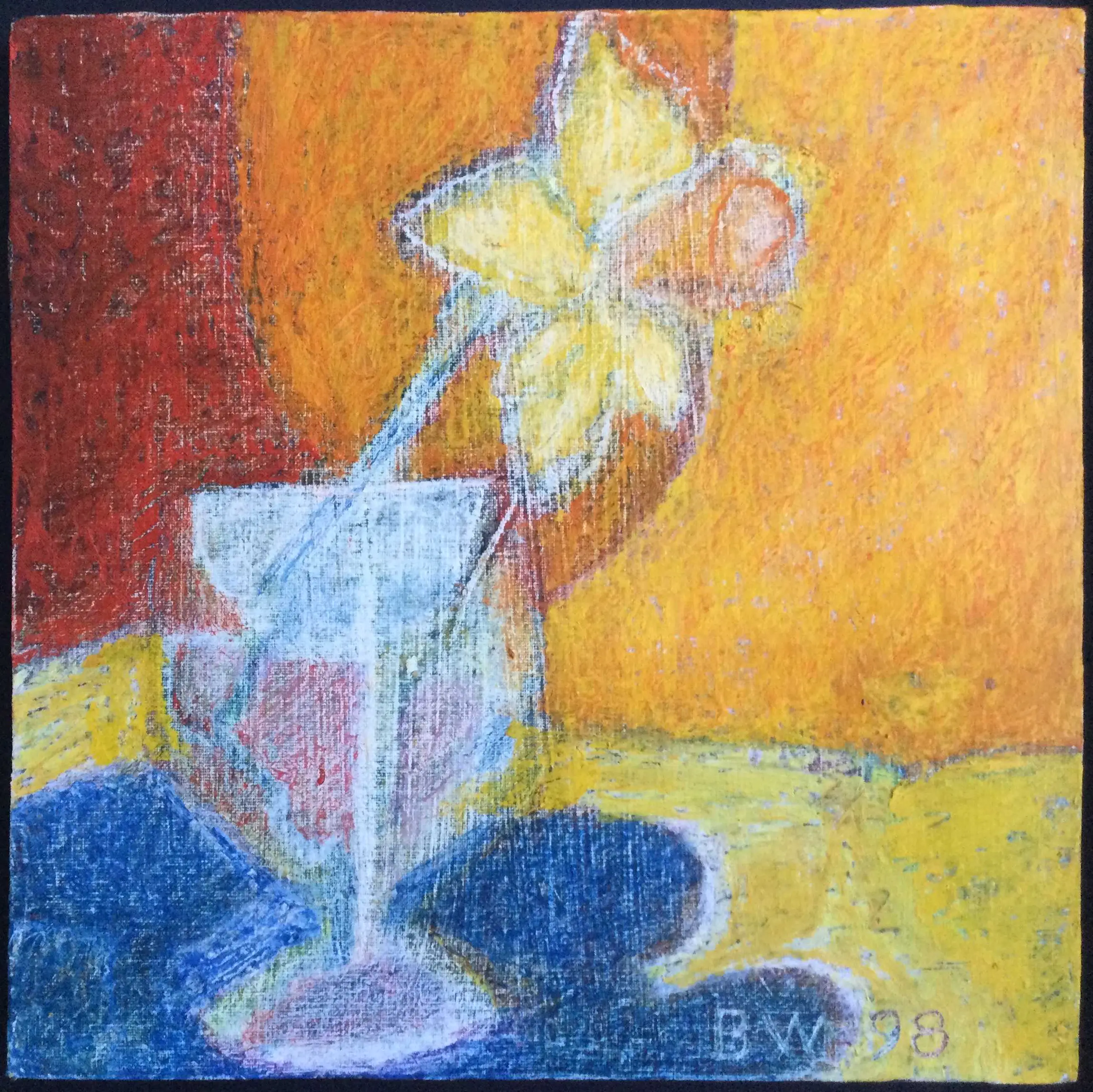 Afmetingen zie hiernaast. Voorstelling: bloeiende narcis. Jaar: 1998, met de hand gesigneerd