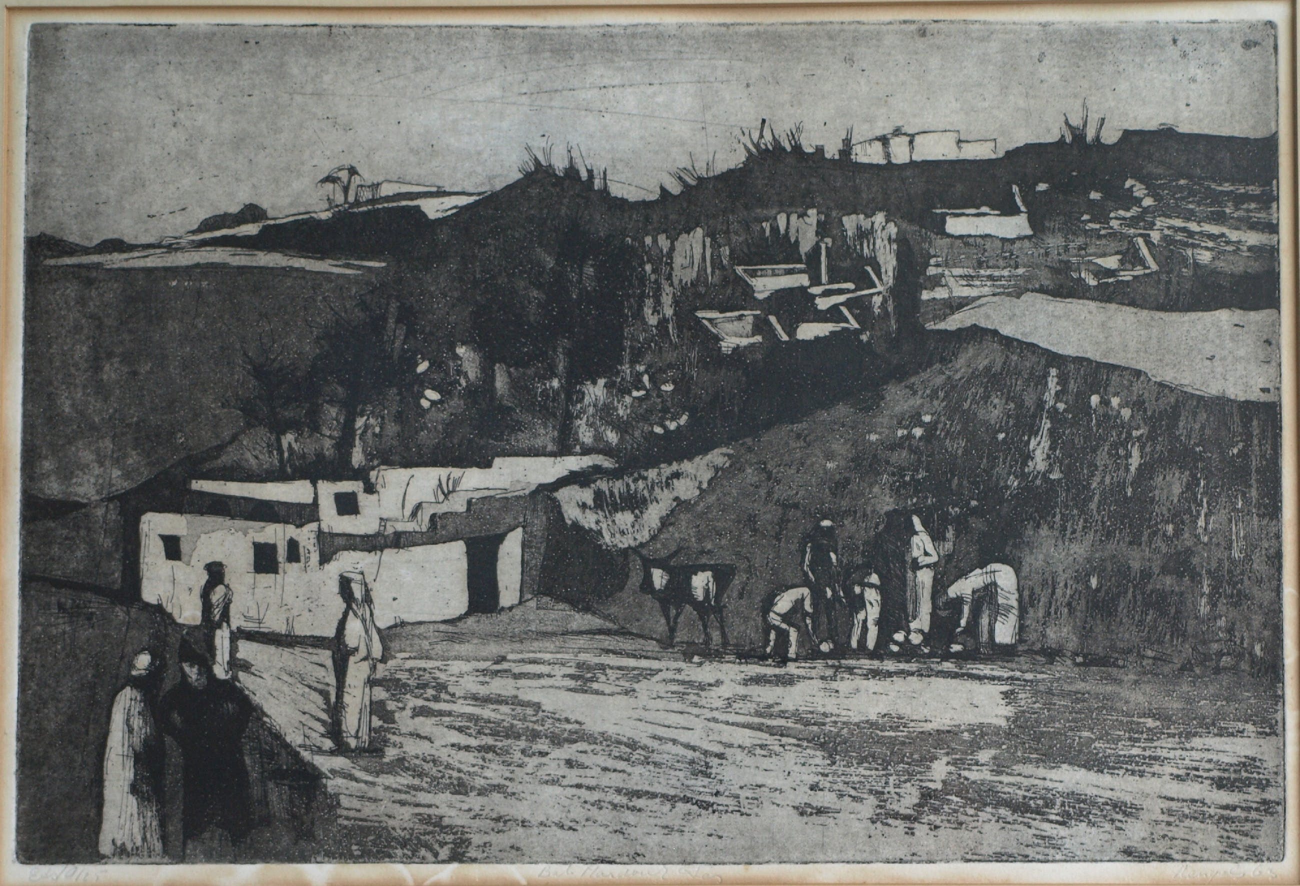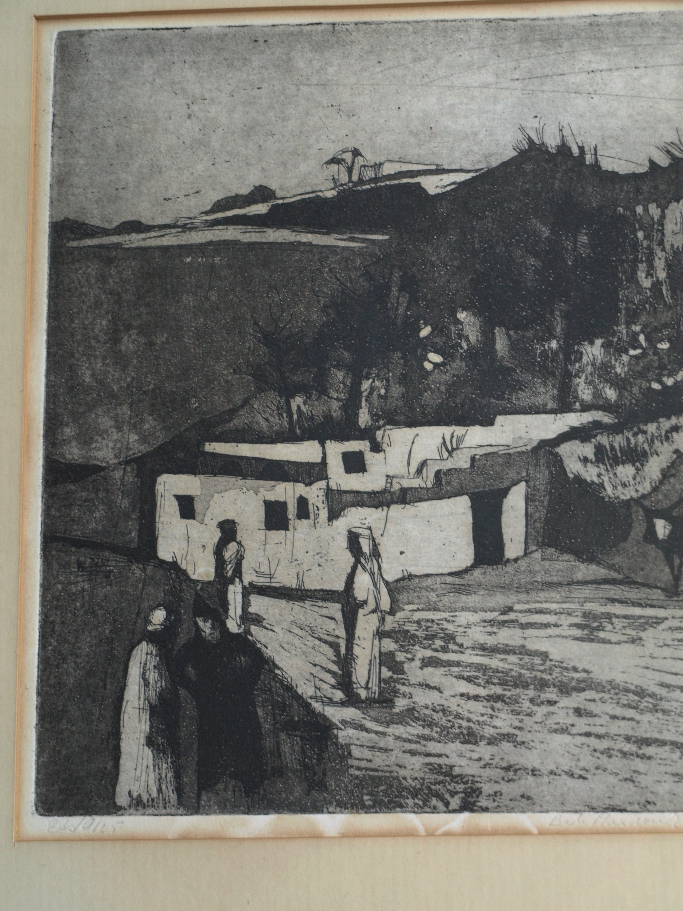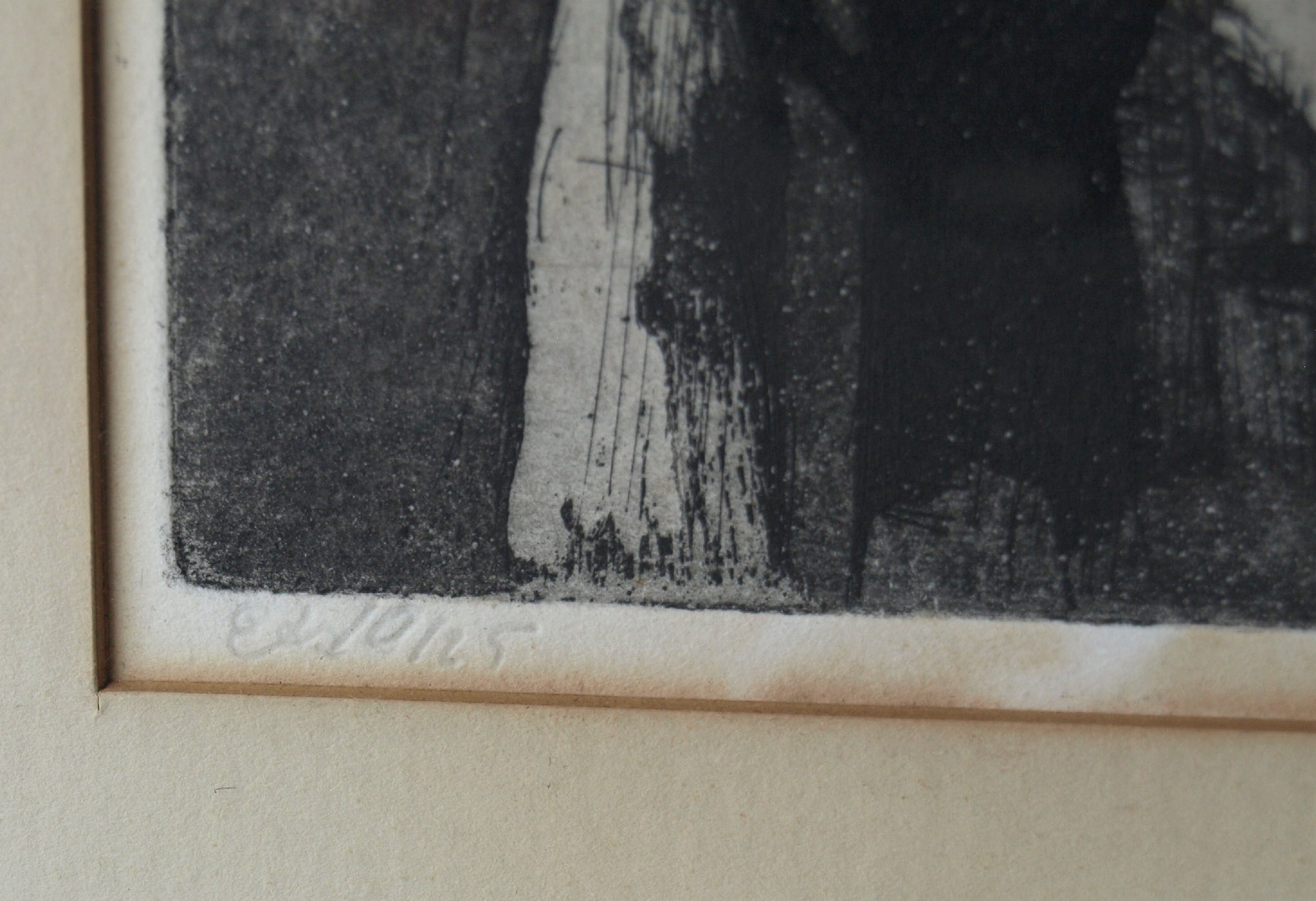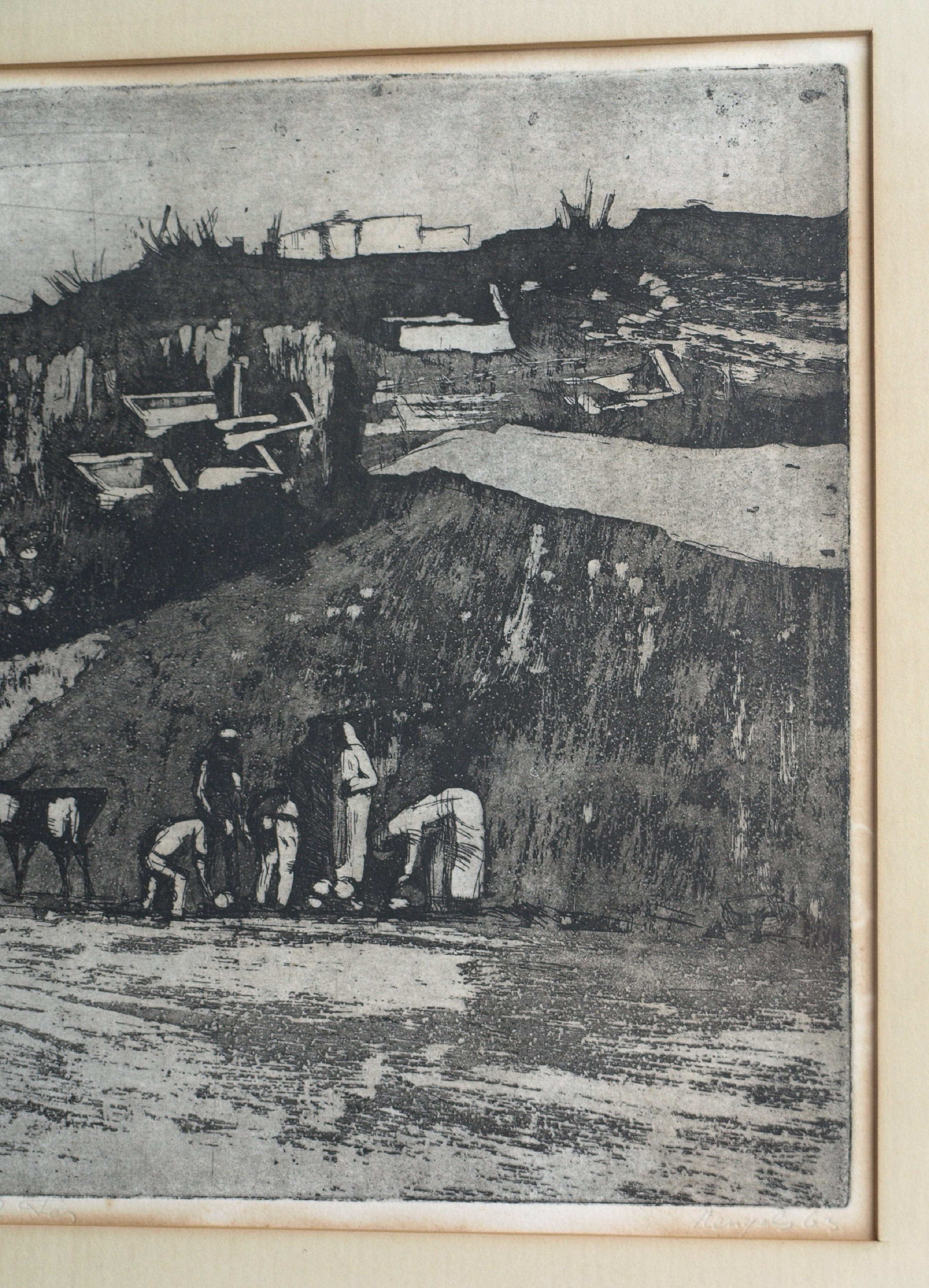 Een ingelijste ets uit 1963 van de Nederlandse /