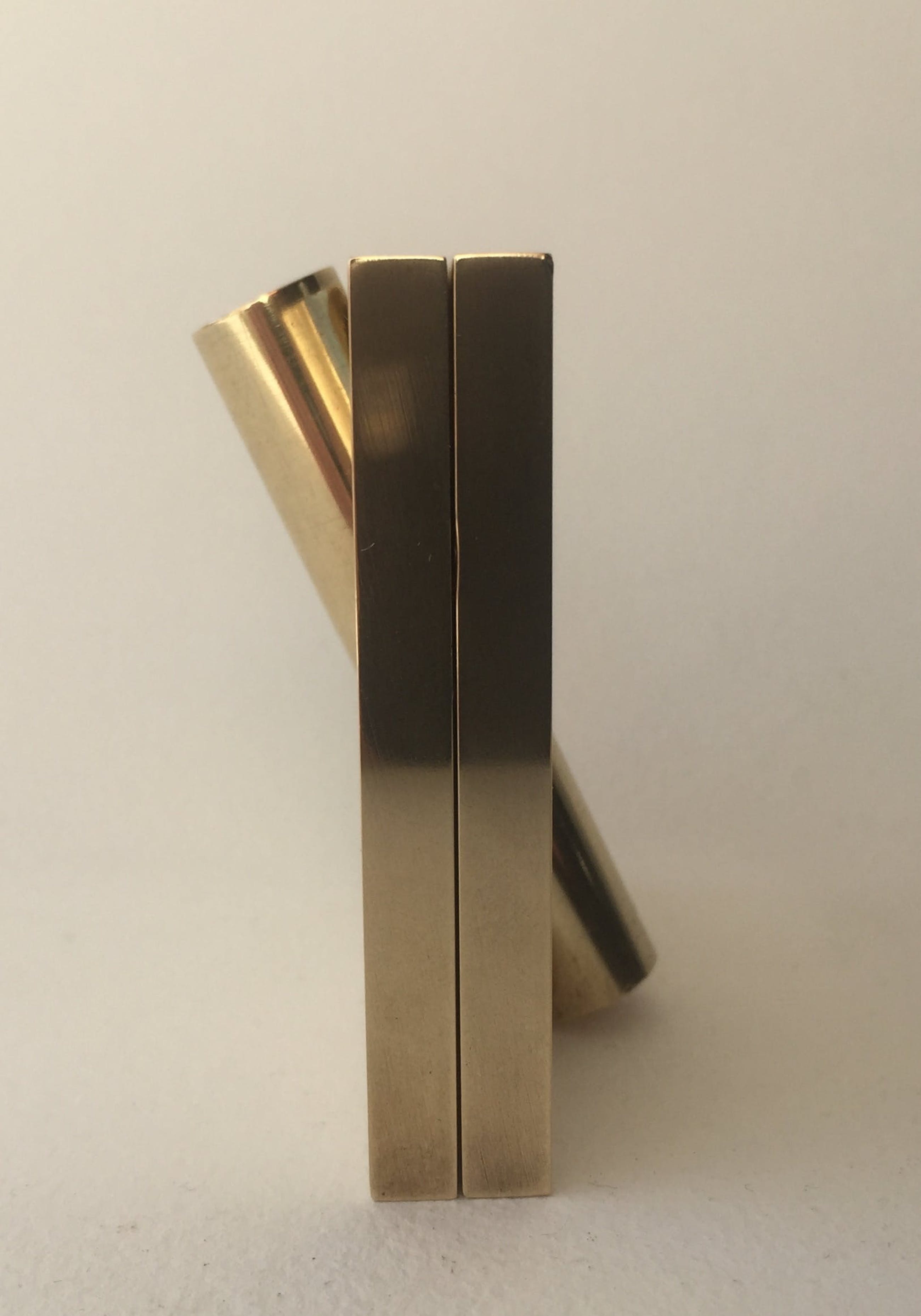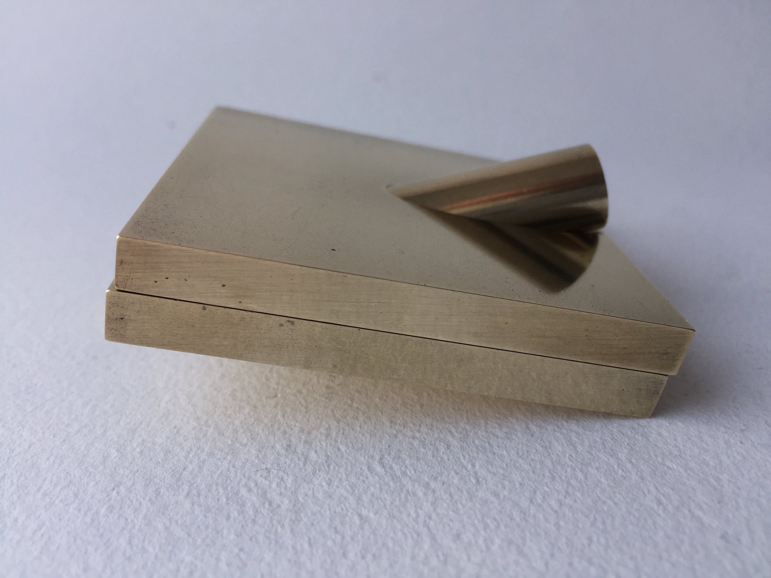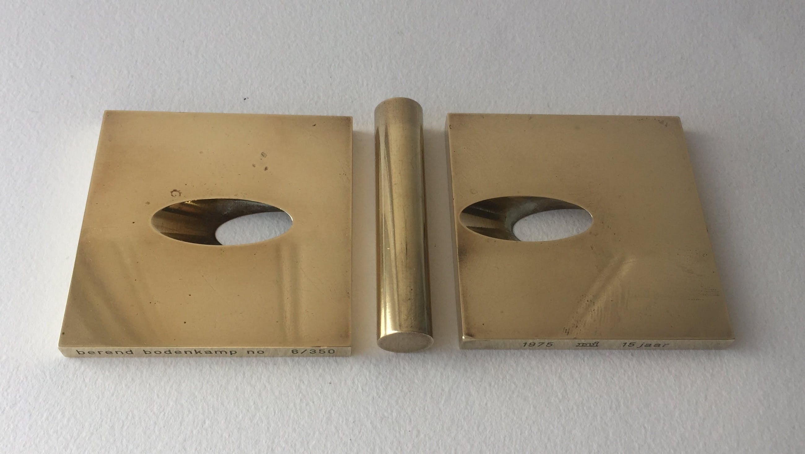 Het speelse object bestaat uit twee vierkanten en een cilinder die op verschillende manieren is neer te zetten. De multiple is vervaardigd van messing. De naam van de kunstenaar en oplage nummer, 193, zijn in de zijkant geslagen.