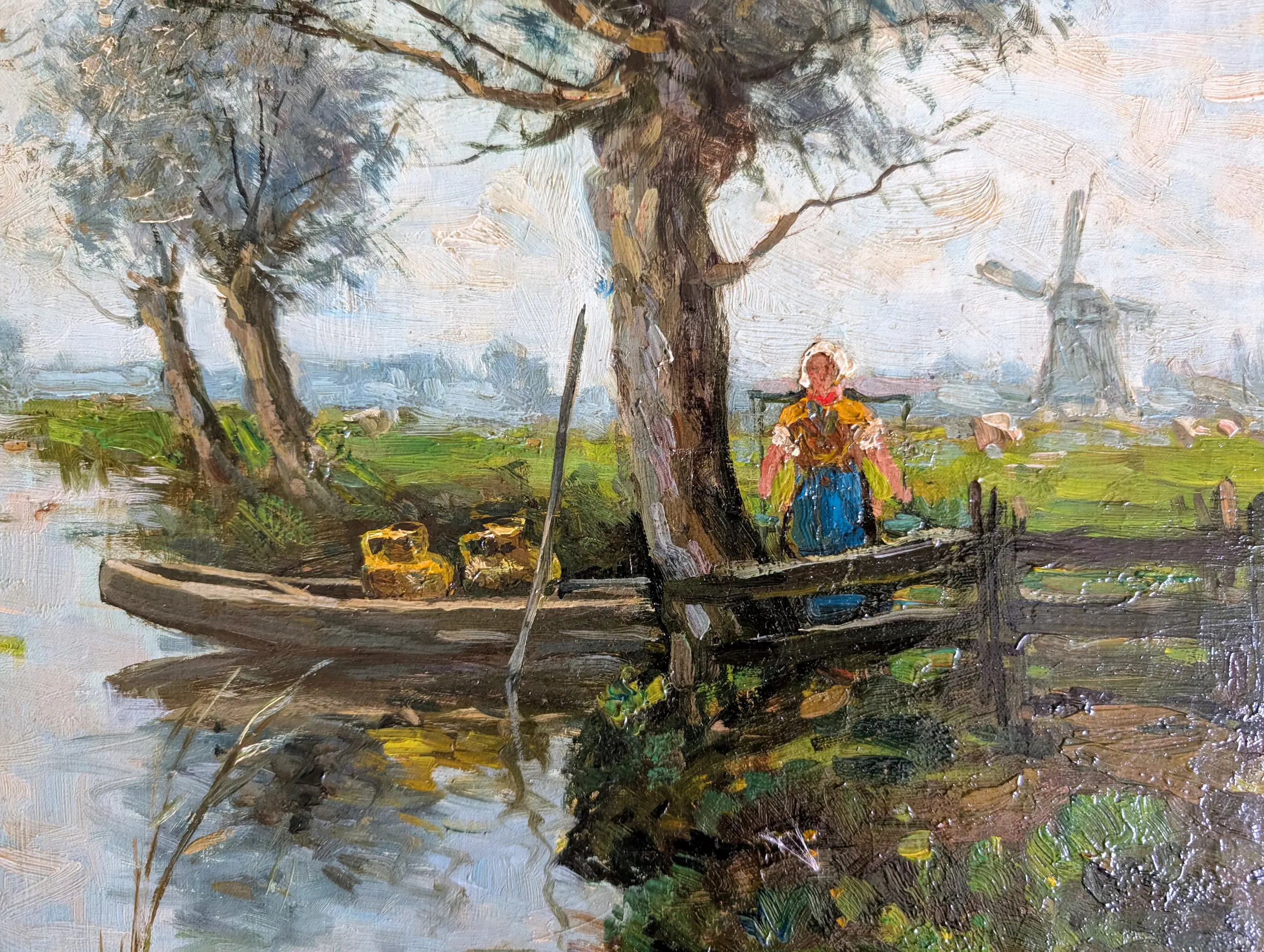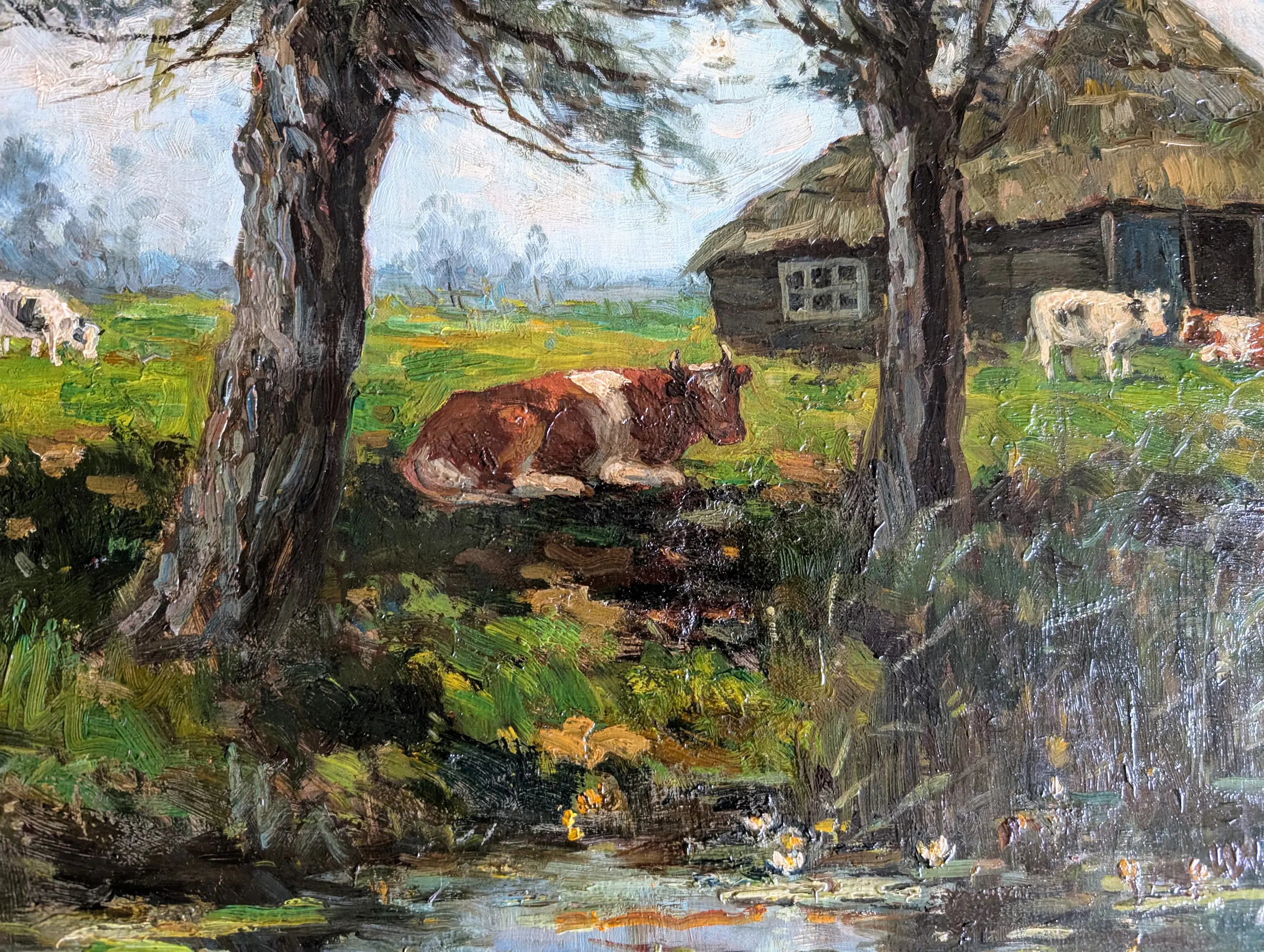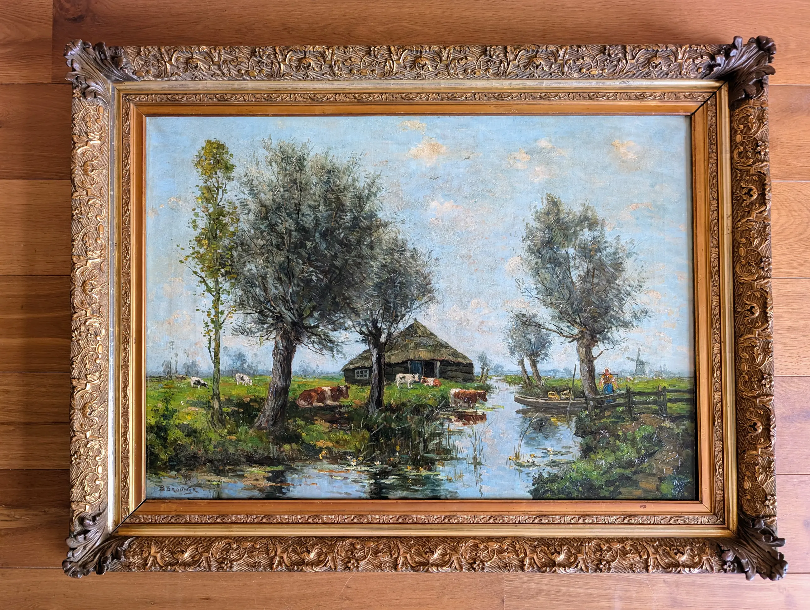 Prachtig fris geschiderd werk in monumentale lijst. Als geen ander geeft Brouwer het hollands polderlandschap weer. Is bijna 60 jaar het pronkjuweel in de familie van verkoper geweest. Bepaalde meerdere generaties de sfeer in huis.