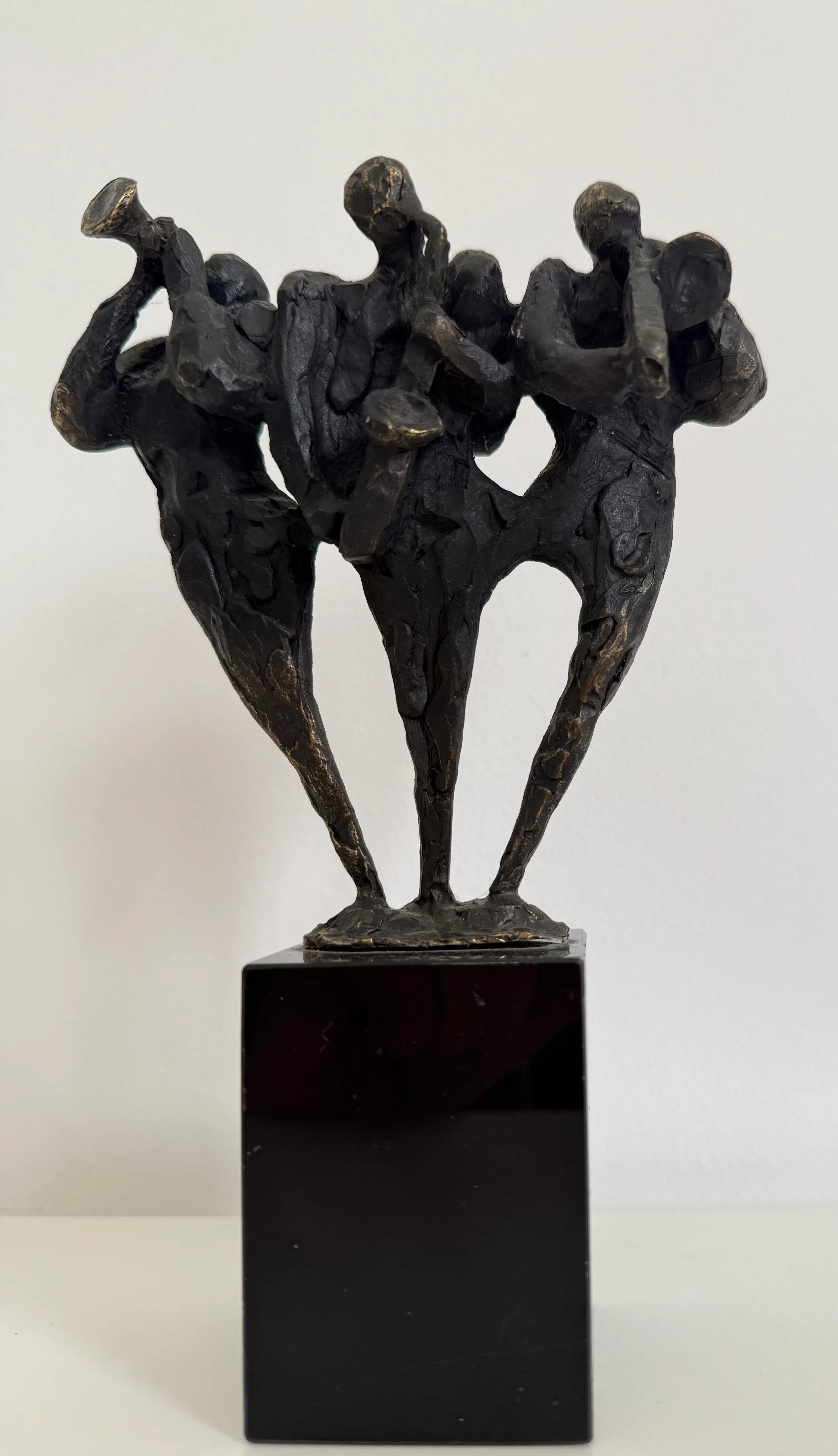 Zeer fraai werk met een trompettist, een saxofonist en een trombone speler.