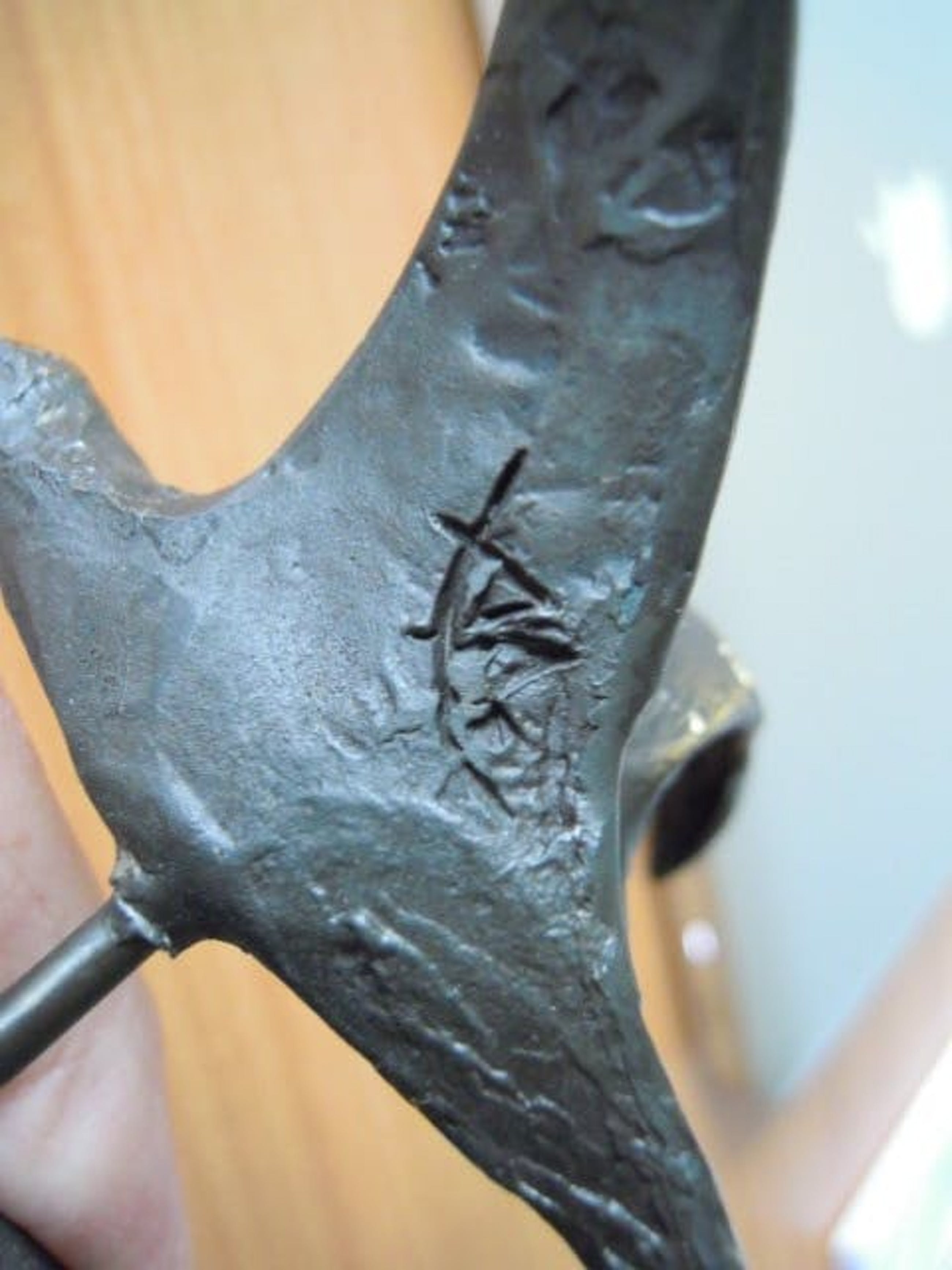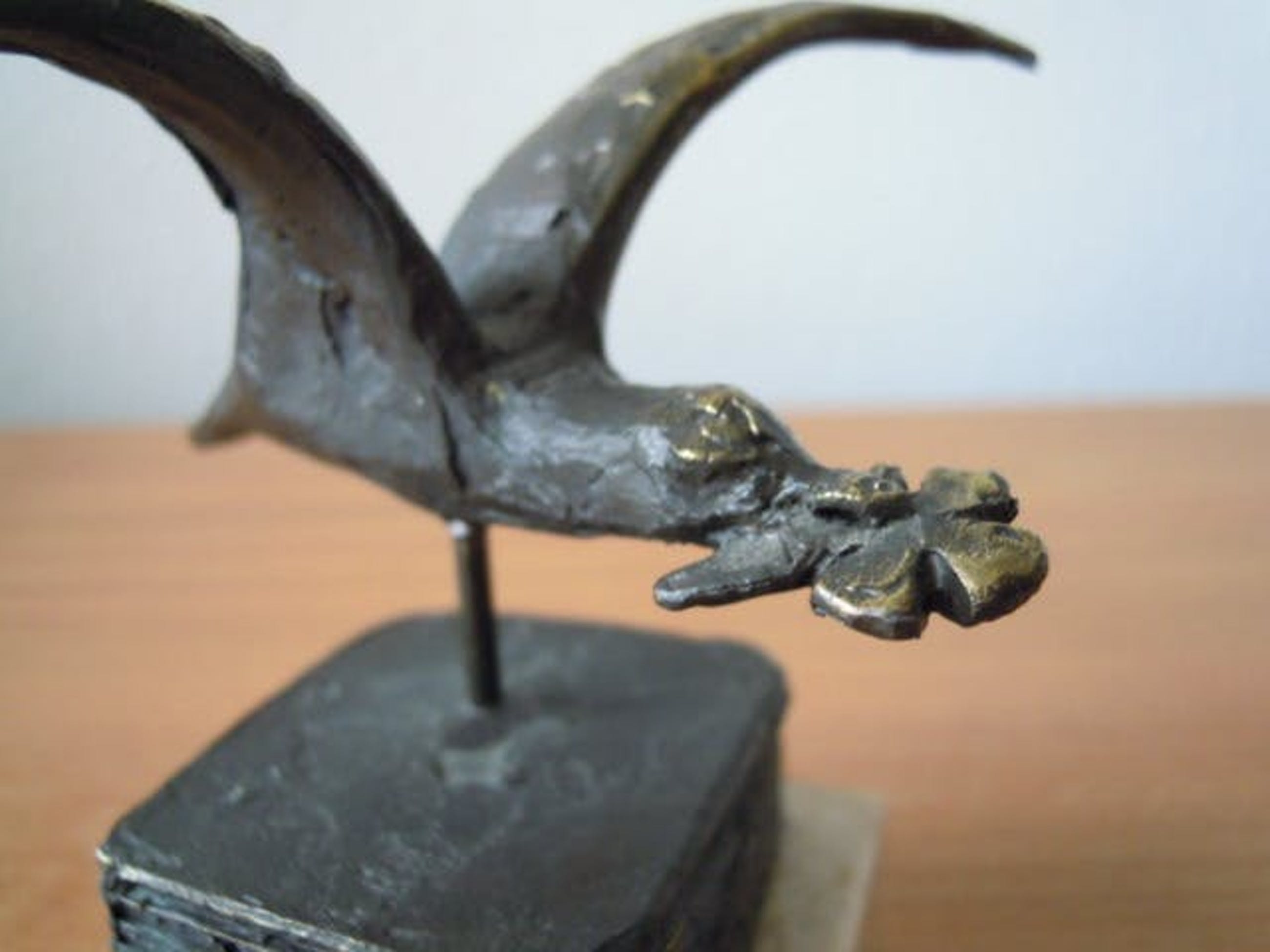 Het betreft een zeer mooi apart beeldje dat onder de vleugel is gesigneerd.
