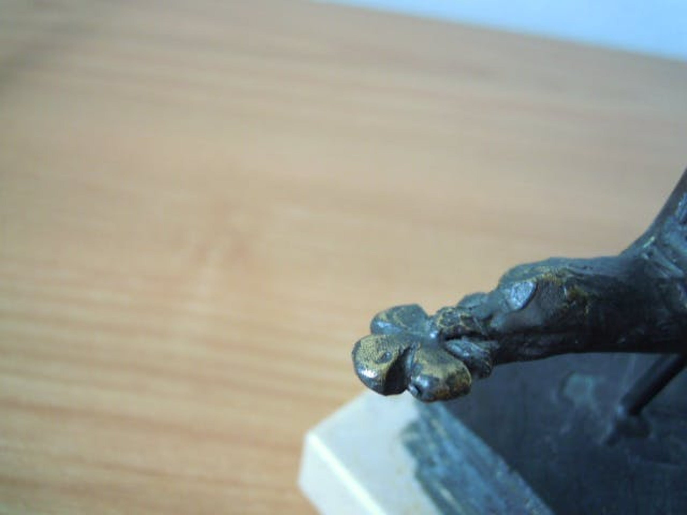 Het beeldje staat op een wit marmeren sokkeltje en is in totaal 10 cm hoog.