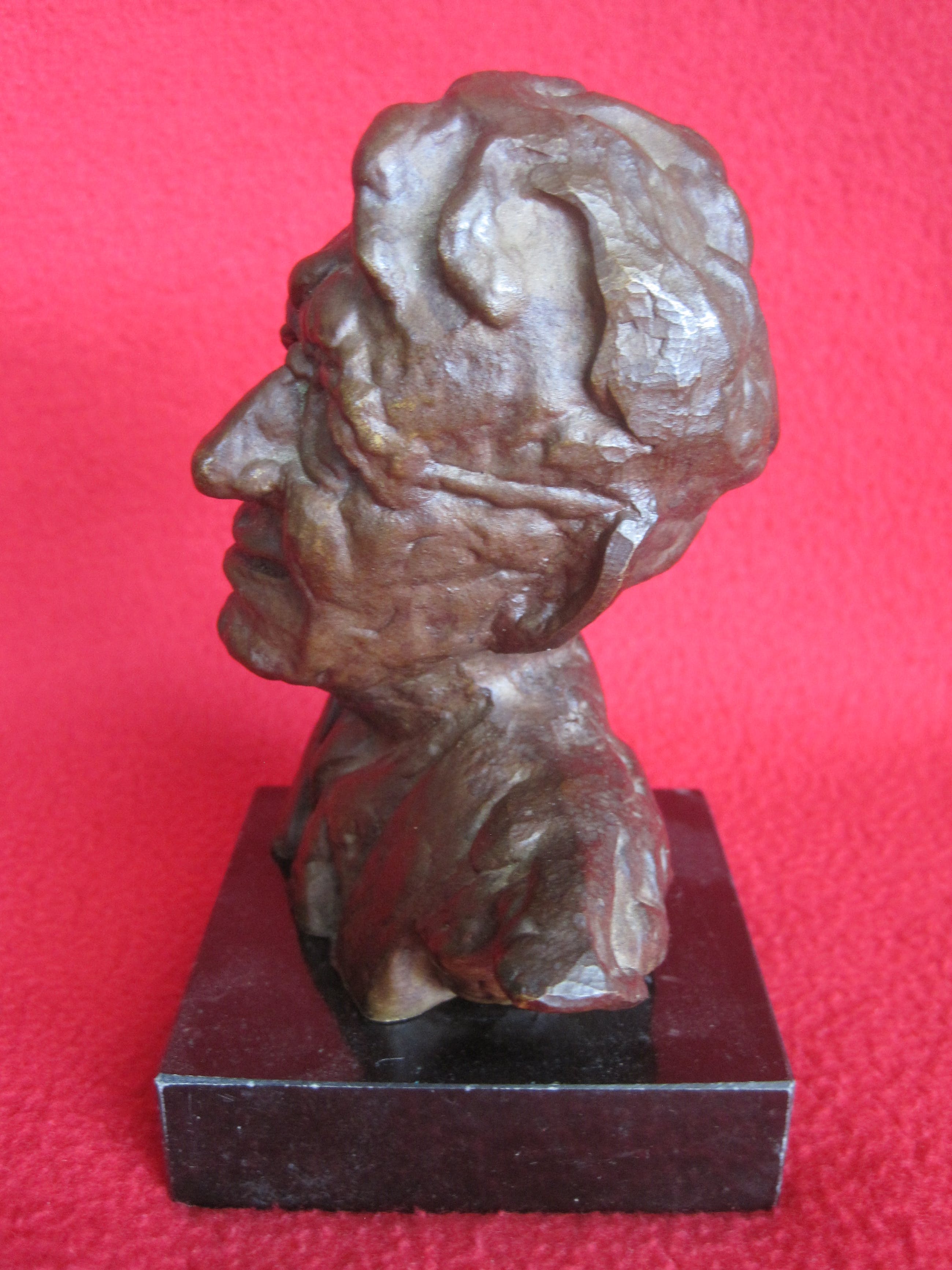 Massief bronzen beeld van de Nederlandse schrijver, dichter en journalist Simon Carmiggelt alias Kronkel . Simon Carmiggelt die stierf in November 1987 op 74 jarige leeftijd . Een fantastisch borstbeeldje van Simon Carmiggelt gemaakt door een zeer getalenteerde kunstenares Bernadette Leijdekkers . Bij dit beeldje komt een los marmeren sokkeltje die u naar believen kunt gebruiken.
