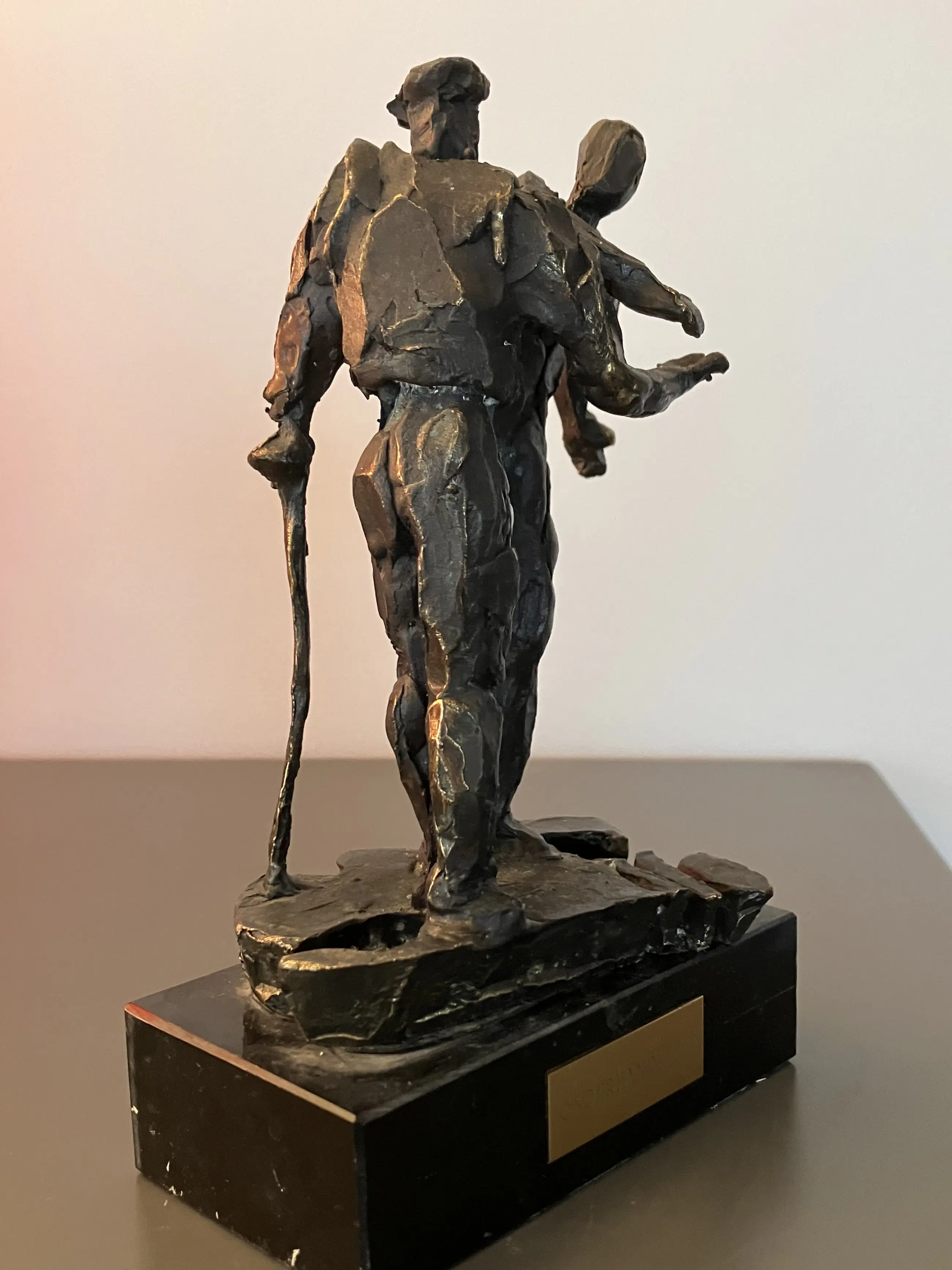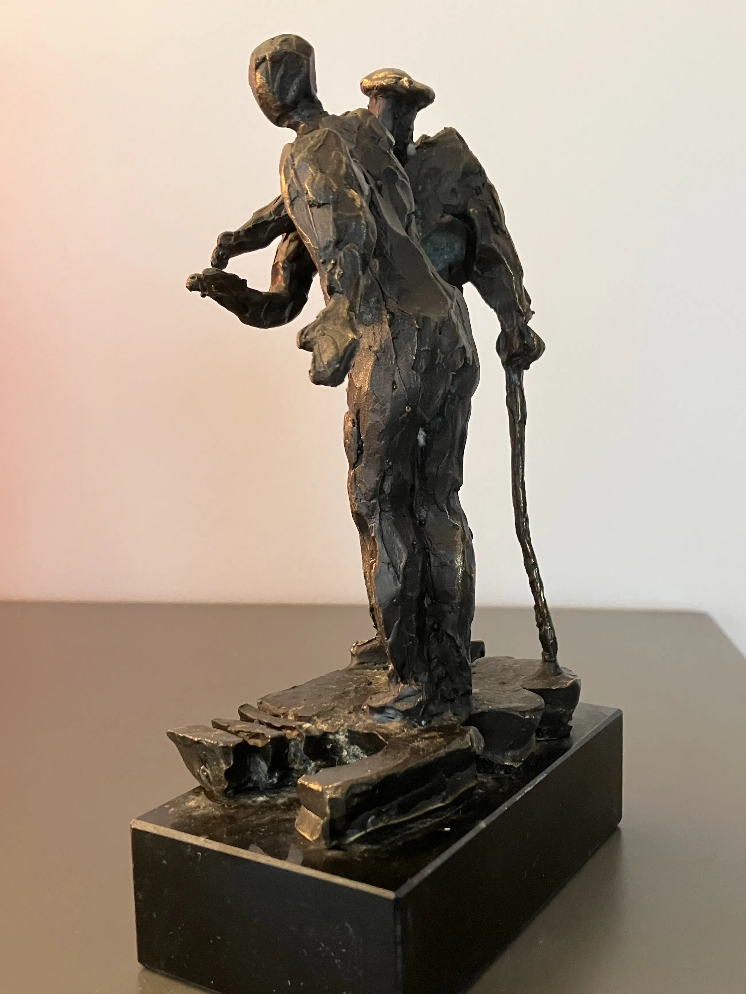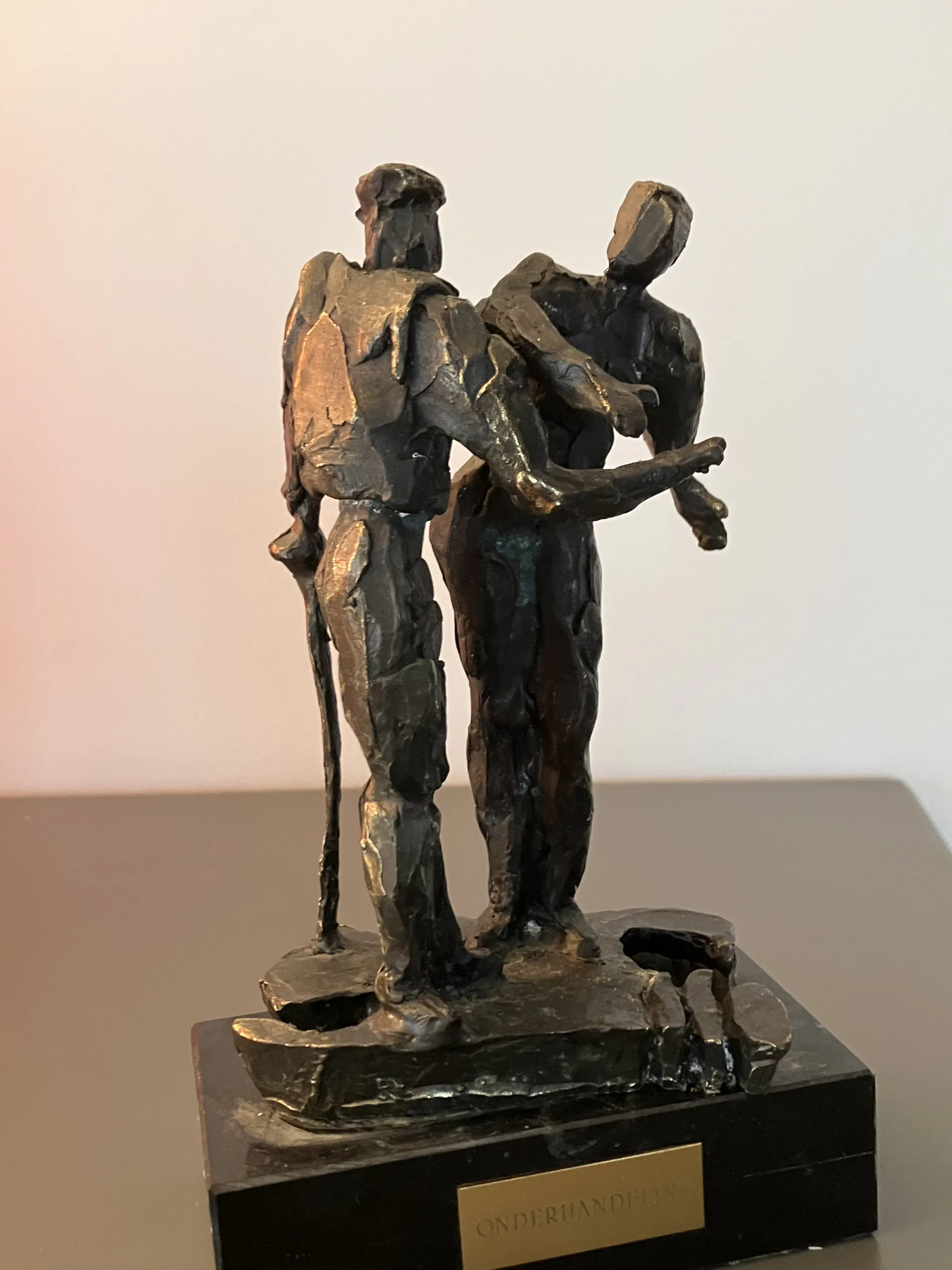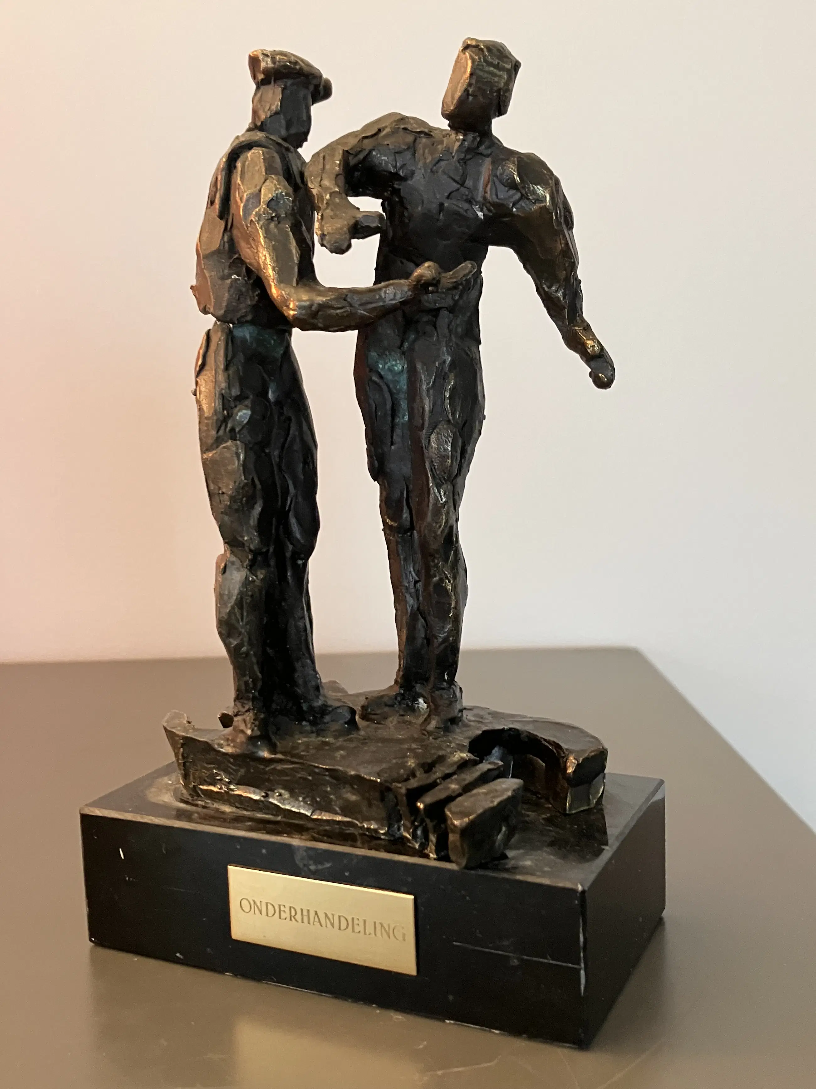 De twee boeren zijn op de markt aan het onderhandelen (handje- klap) Ze staan op een plattegrond van Nederland Massief bronzen beeldje op zwarte natuurstenen sokkel