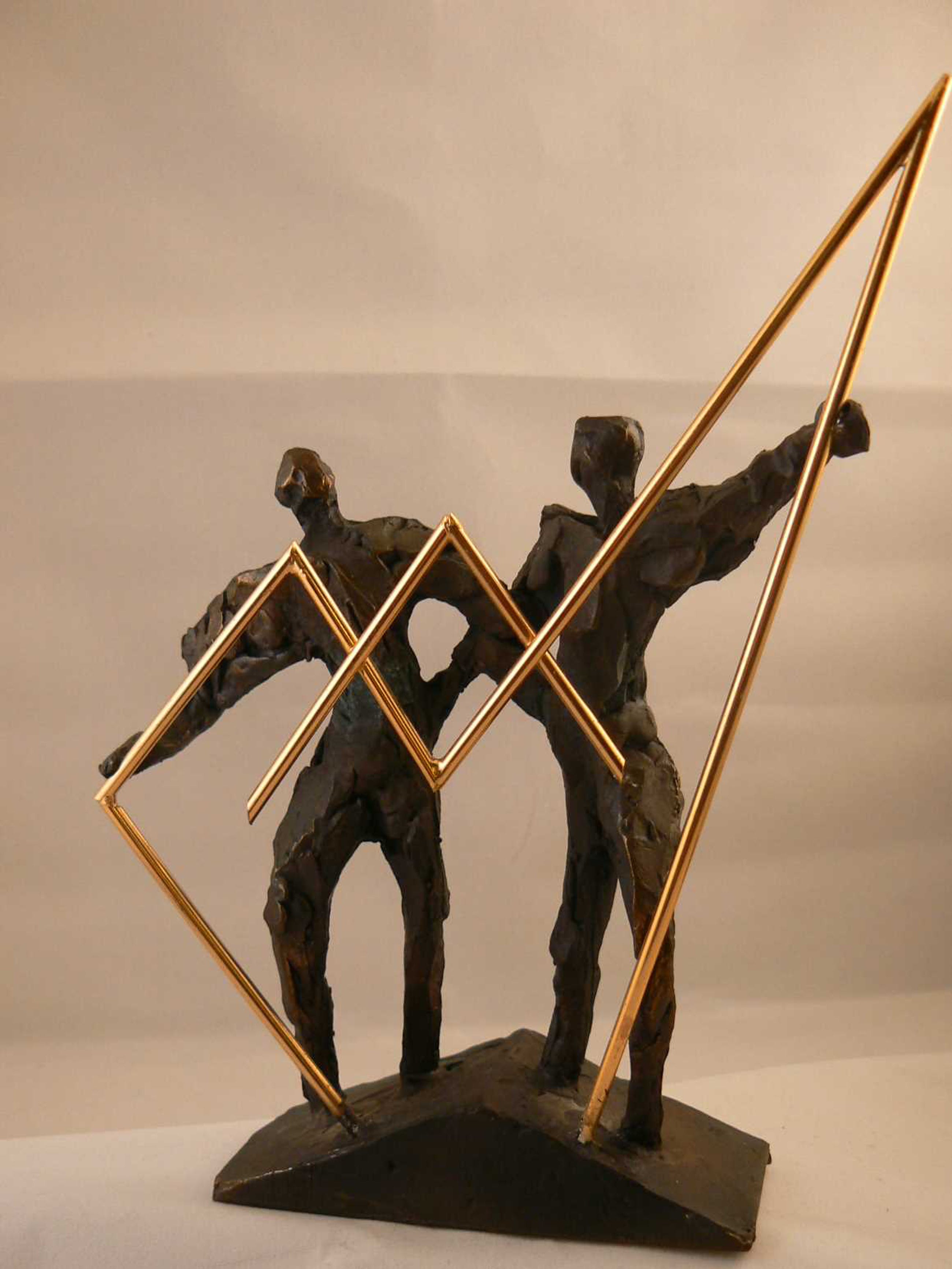 Fraai verbronsd beeld gemaakt door de Nederlandse kunstenares Bernadette Leijdekkers. Het beeld is gesigneerd op de achterkant