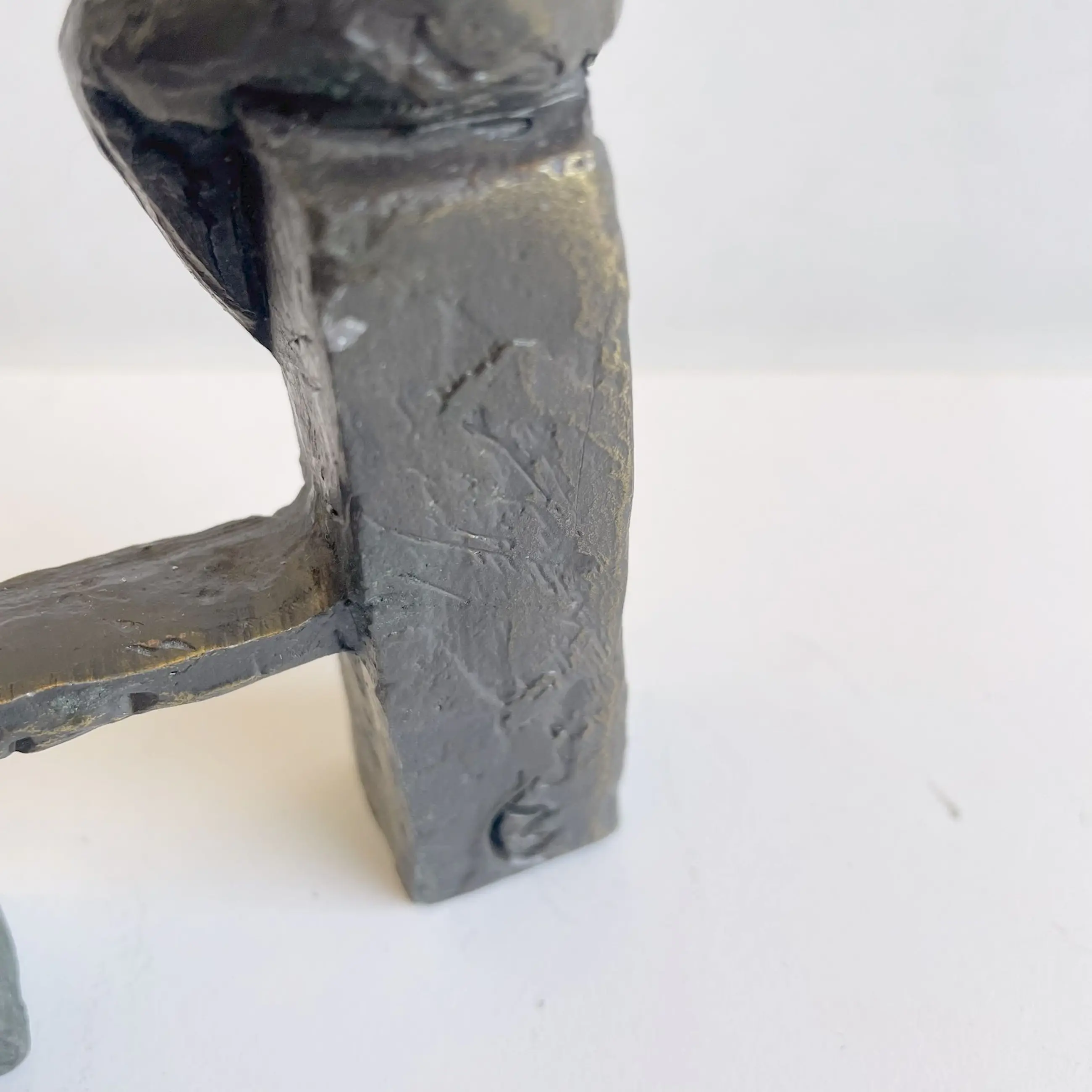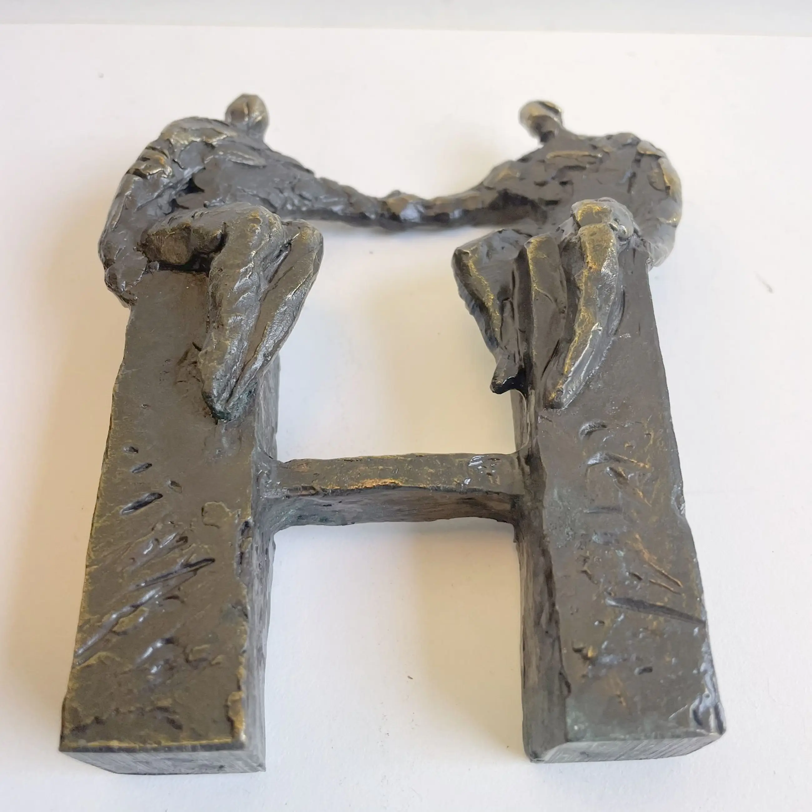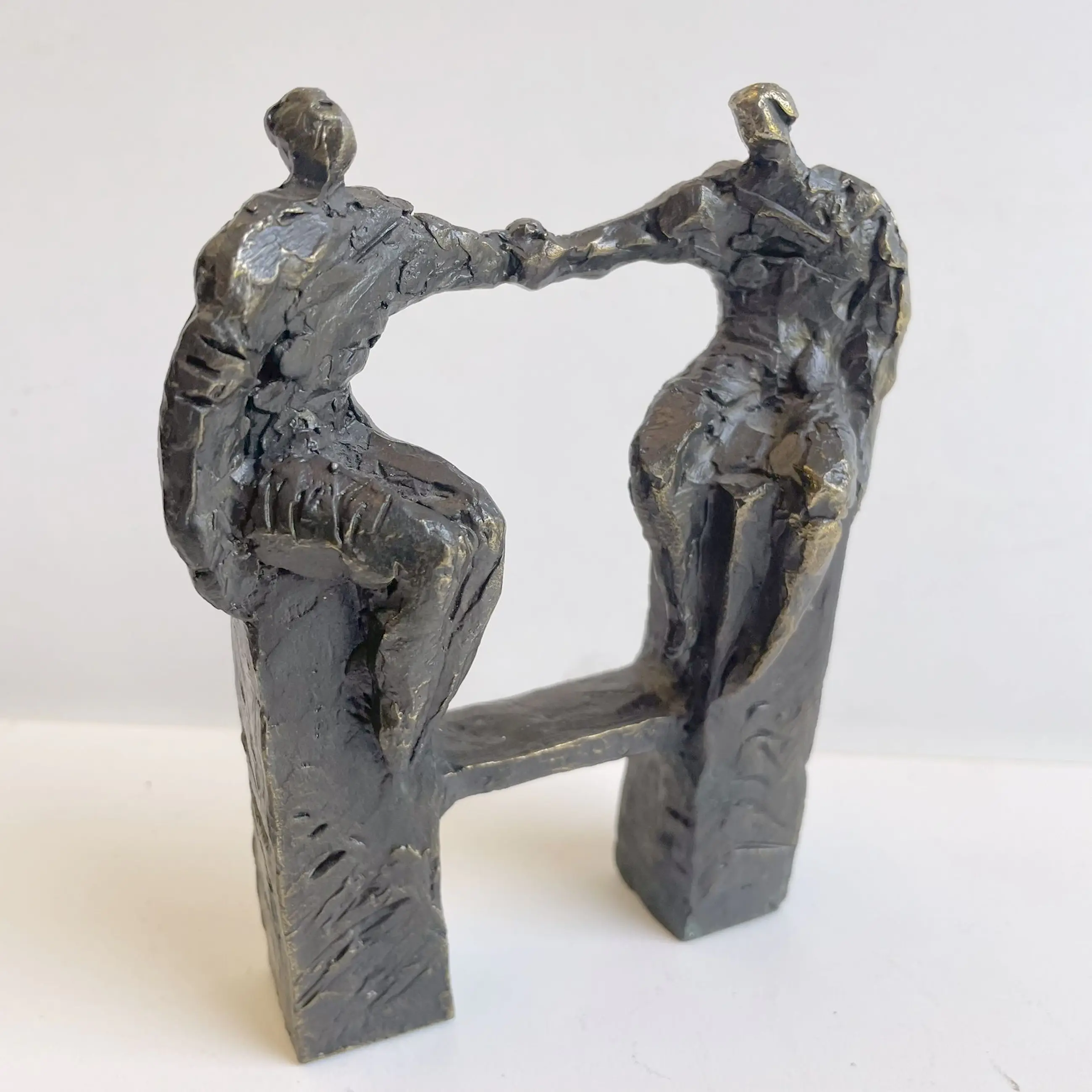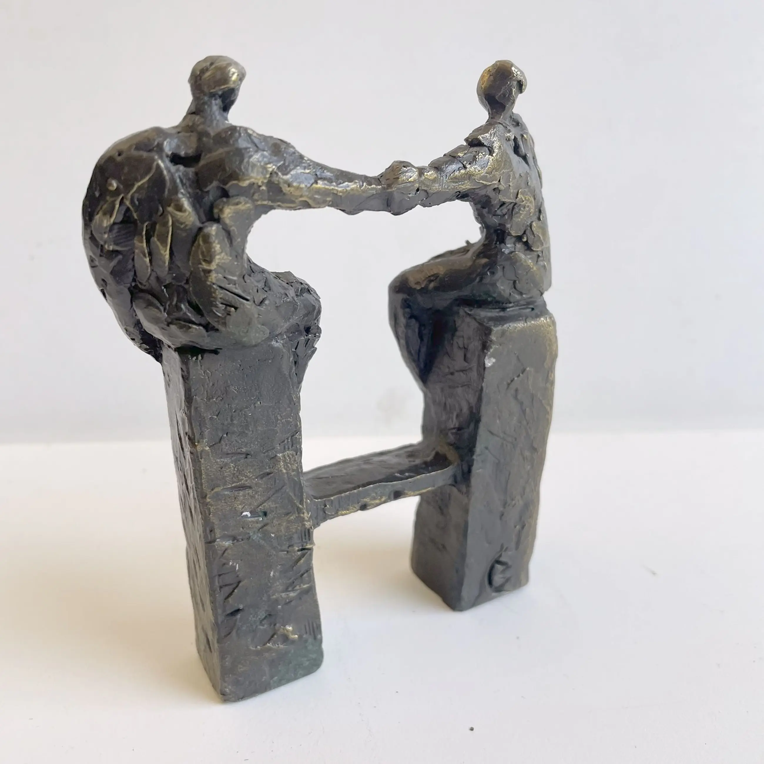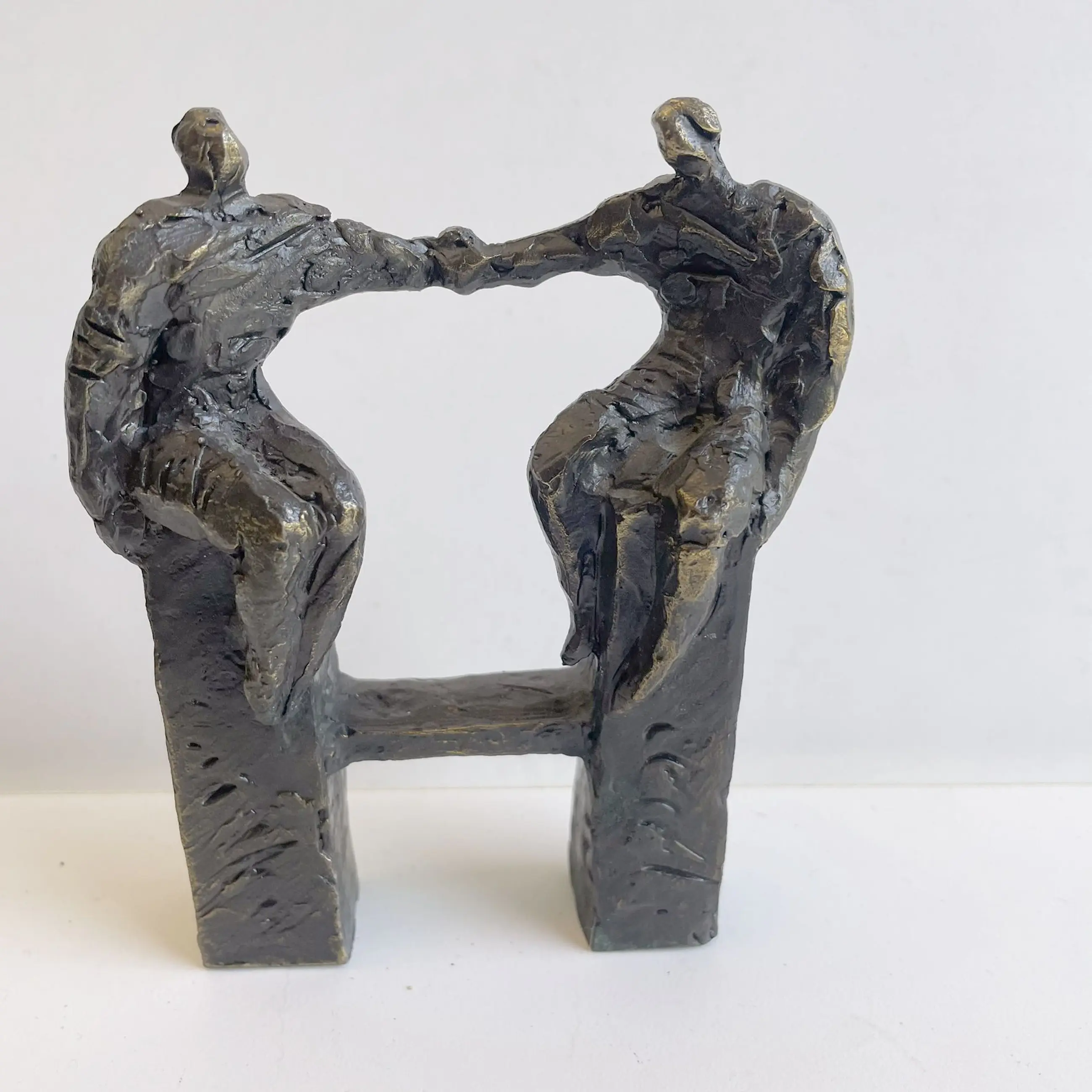 Symbolisch sculptuur van twee zittende mensfiguren die elkaar stevig vasthouden met de toepasselijke titel “ Verbondenheid“.