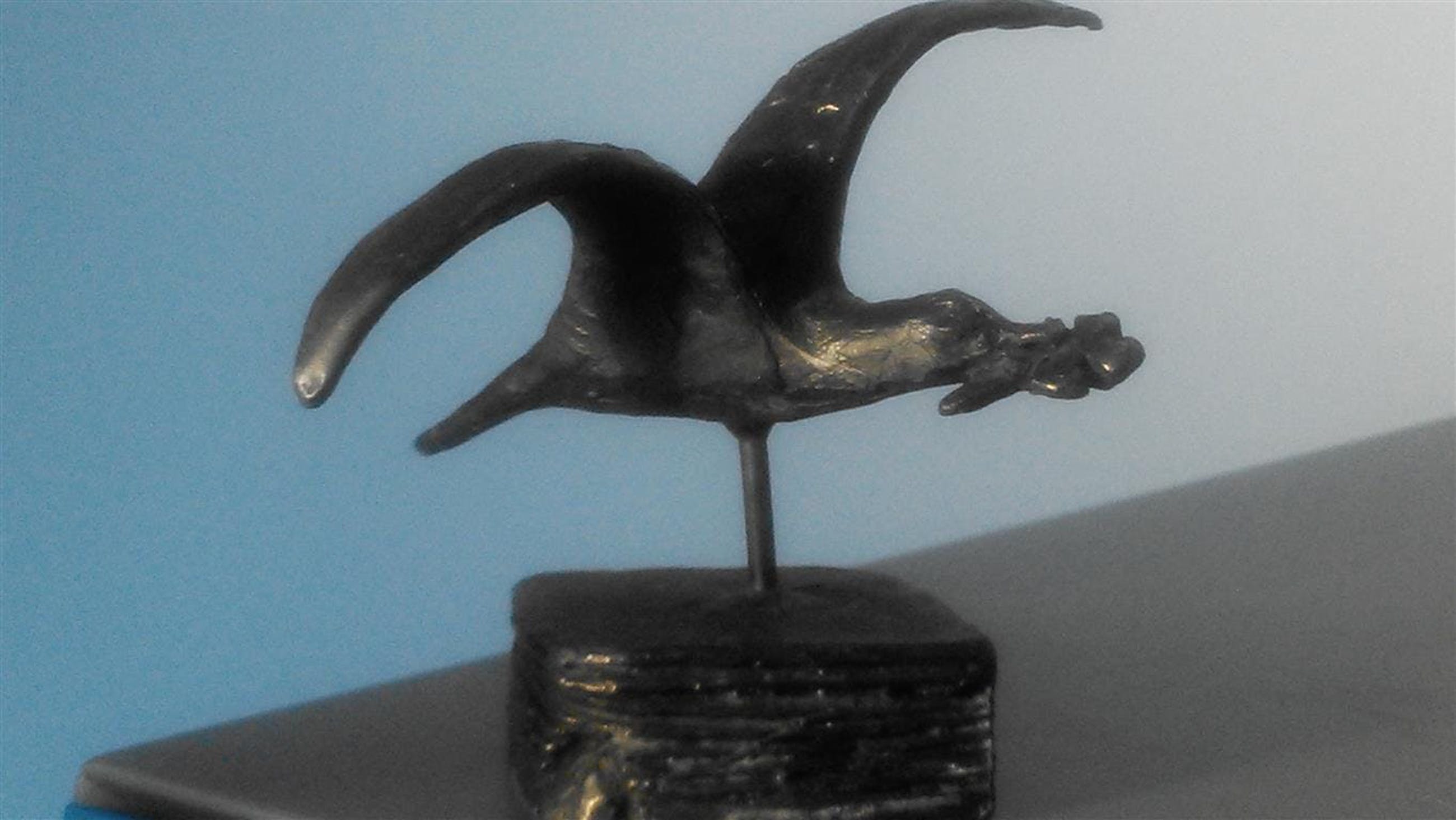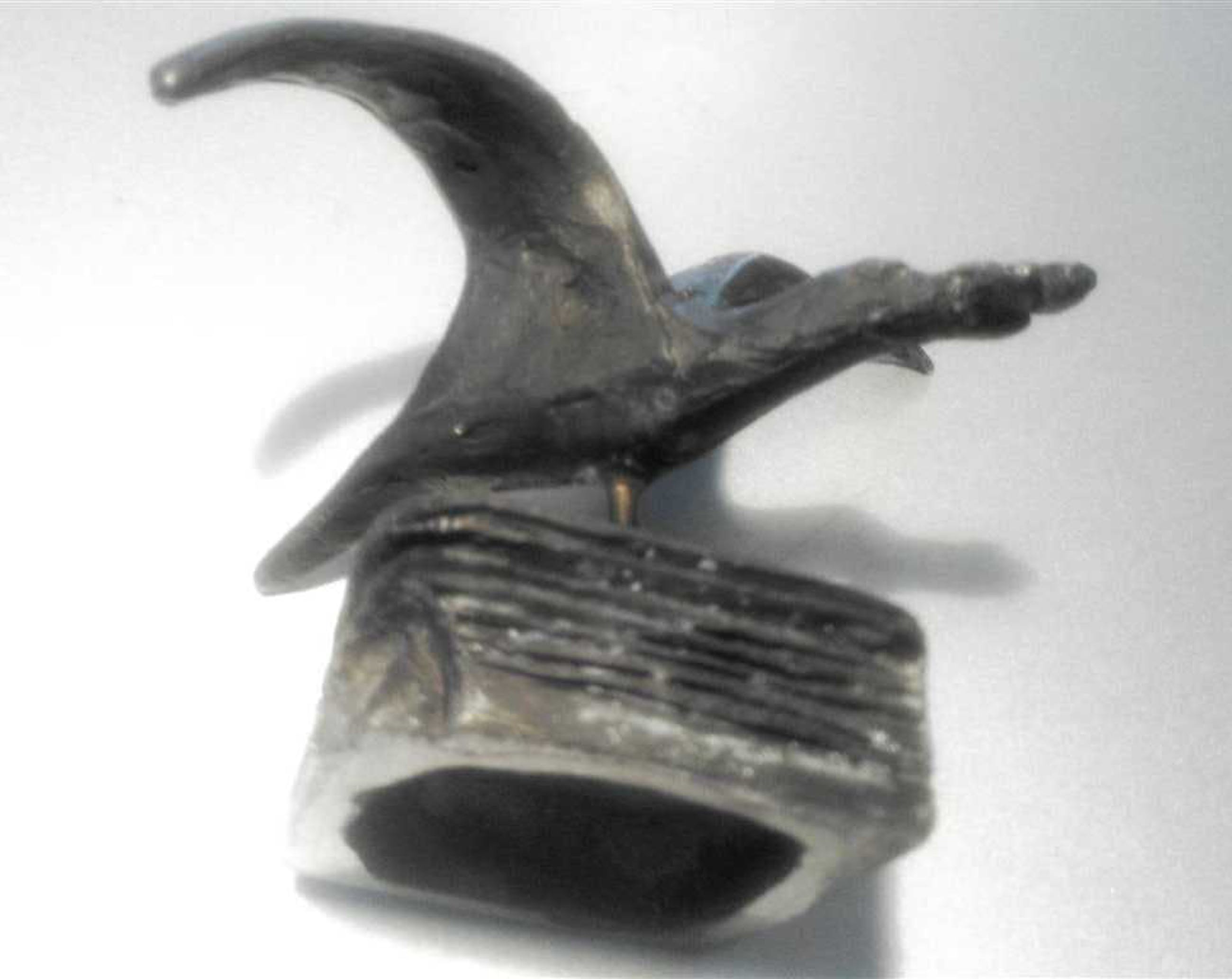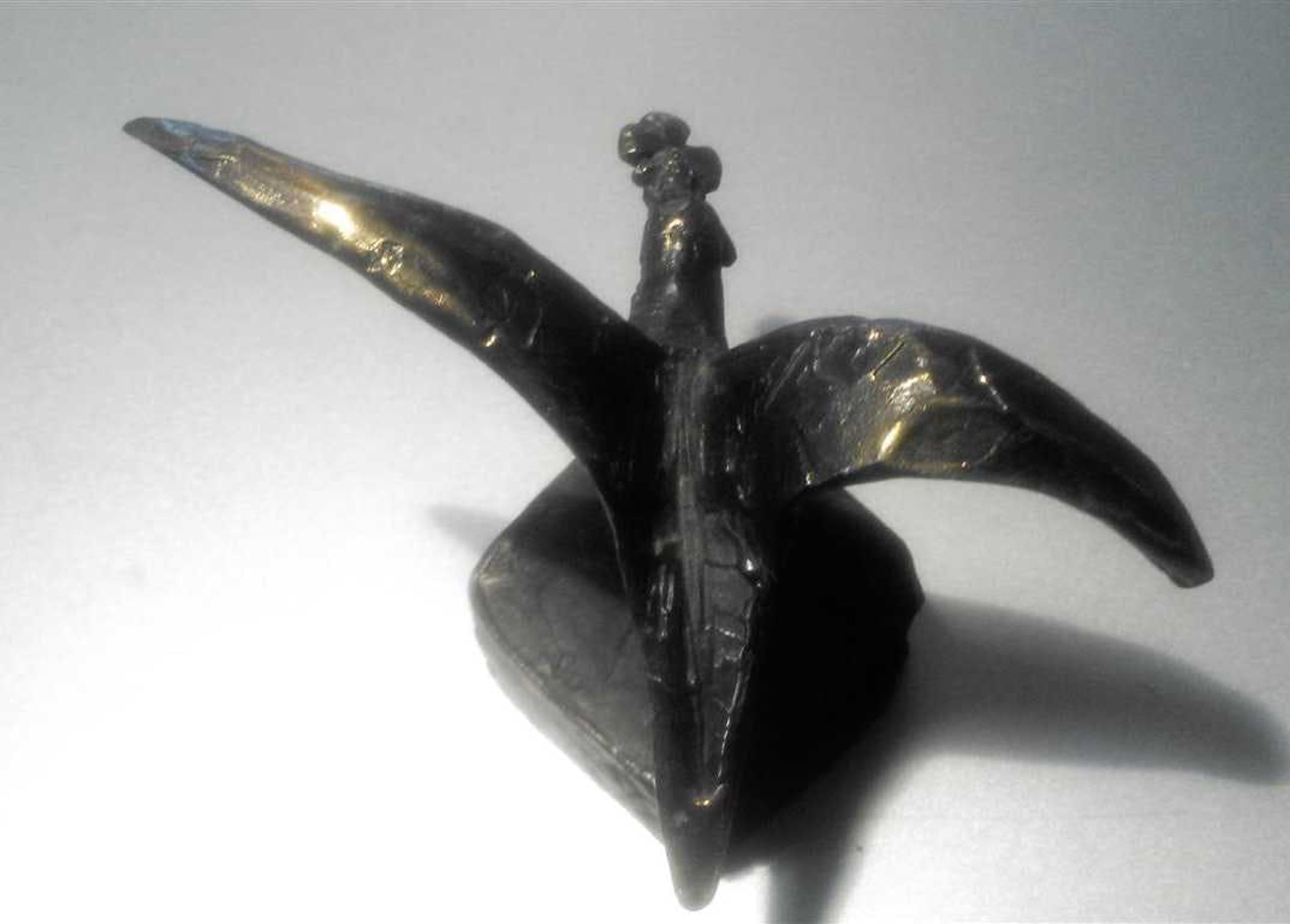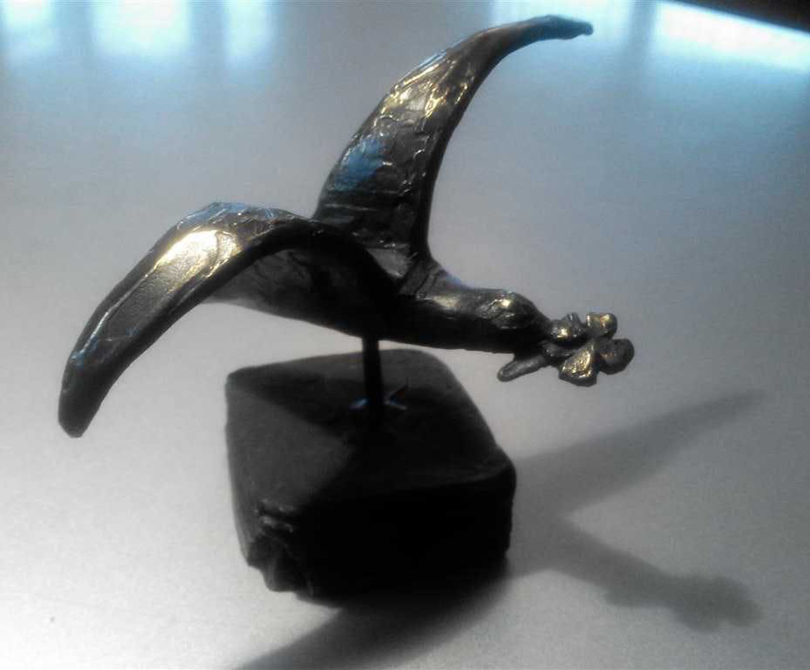 Voorspoed, vertrouwen, liefde en geluk in de vorm van een klavertje vier wordt ons gebracht door deze vogel. Dubbel gesigneerd op sokkel en onder de vleugel
