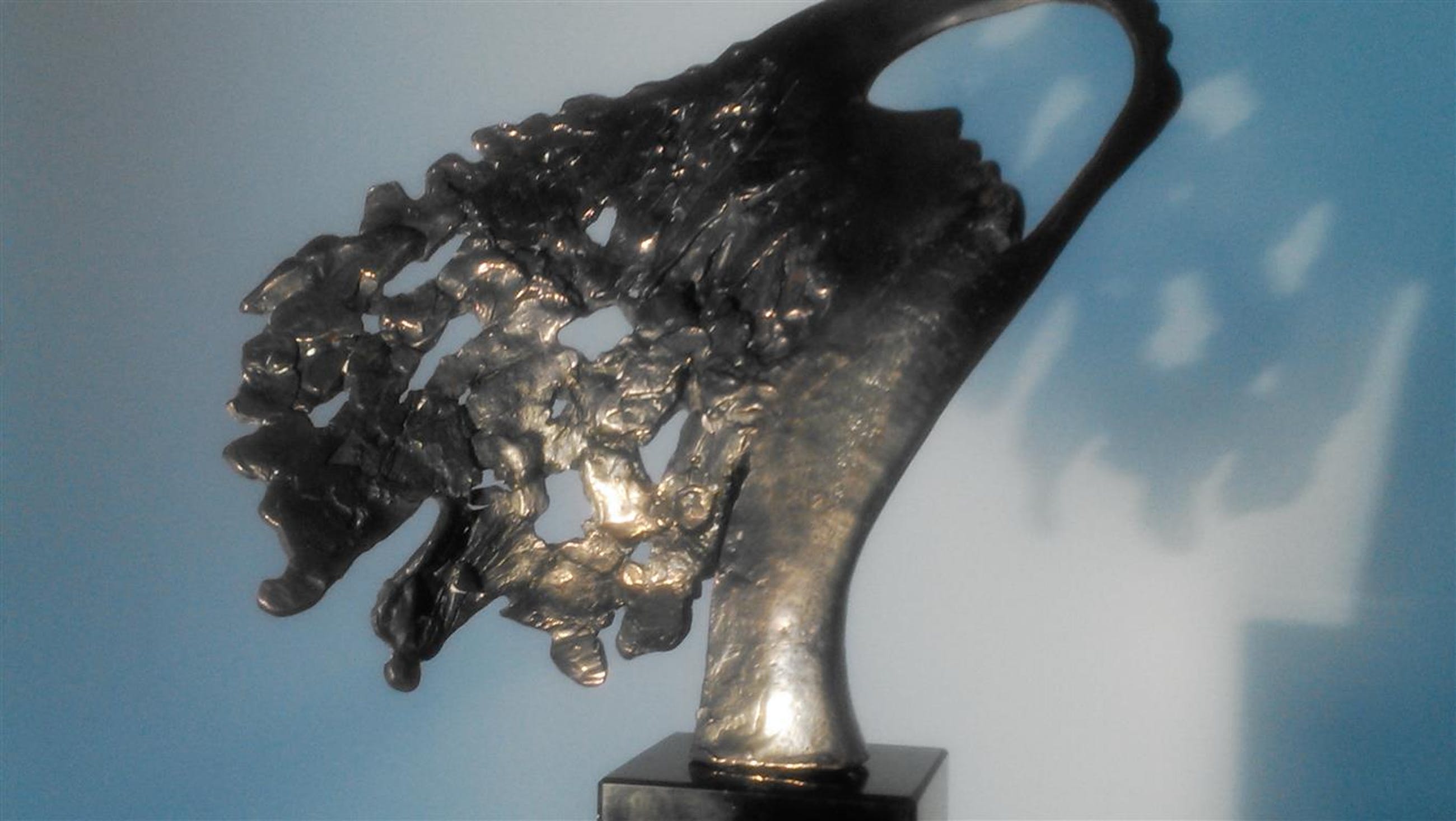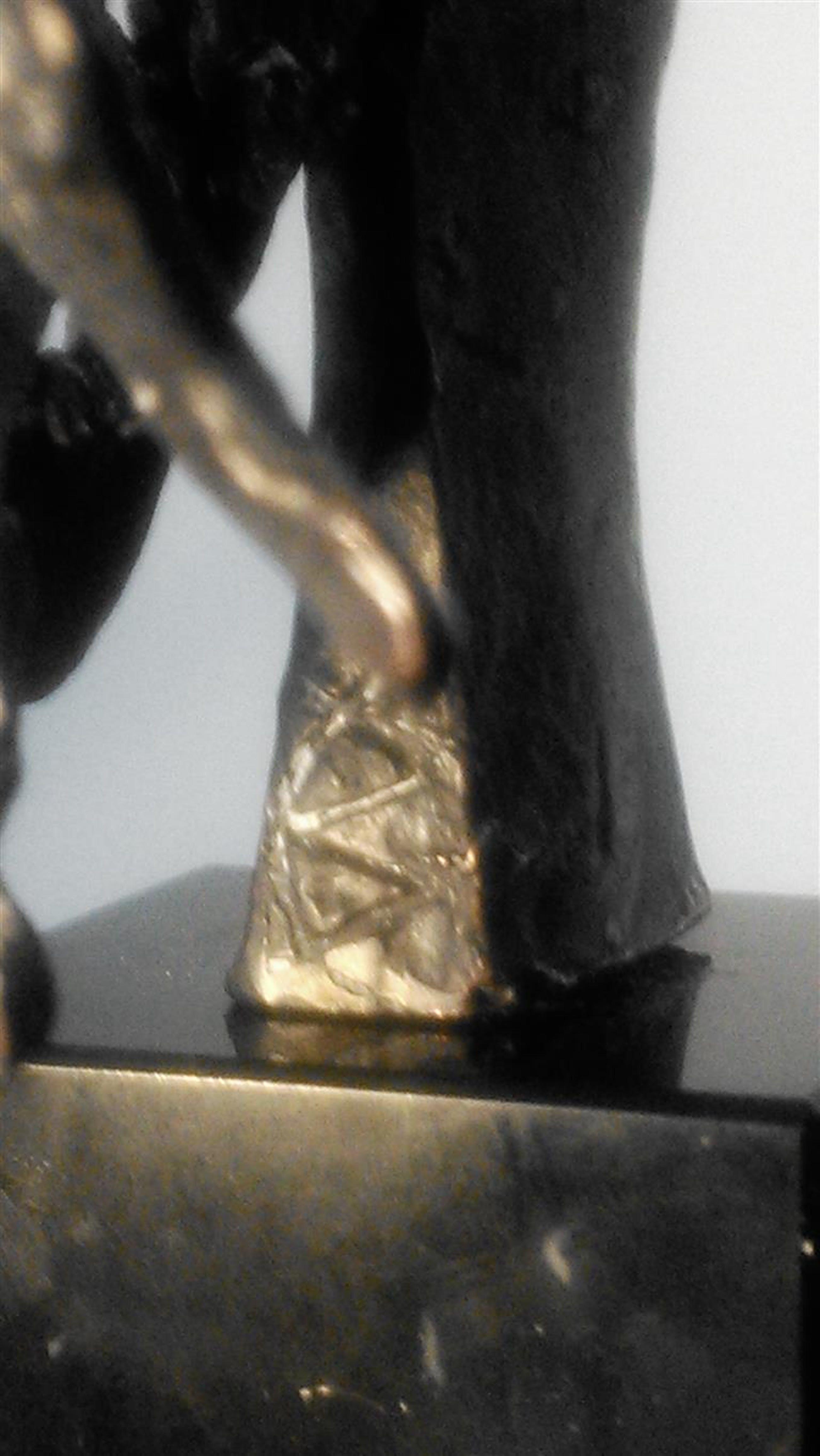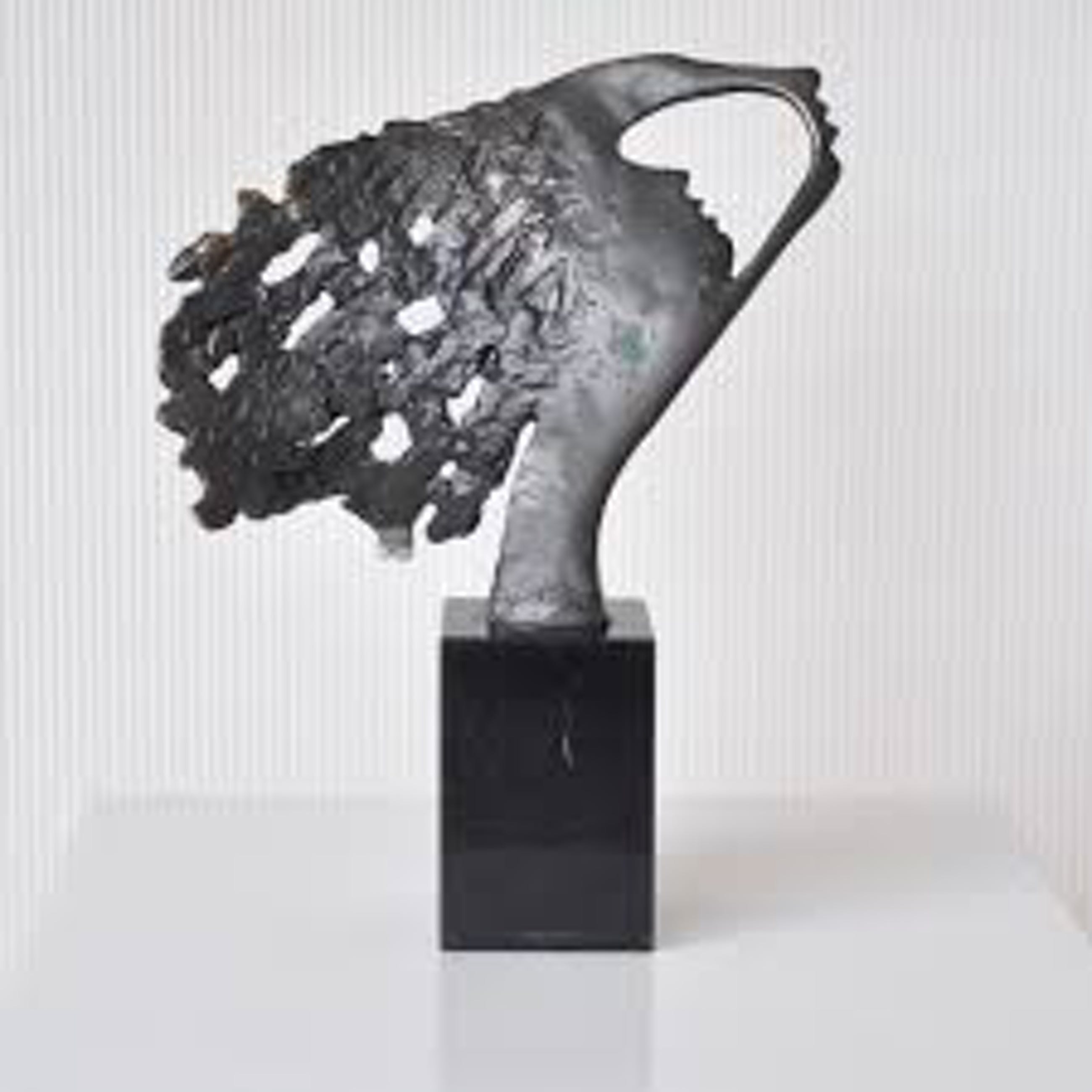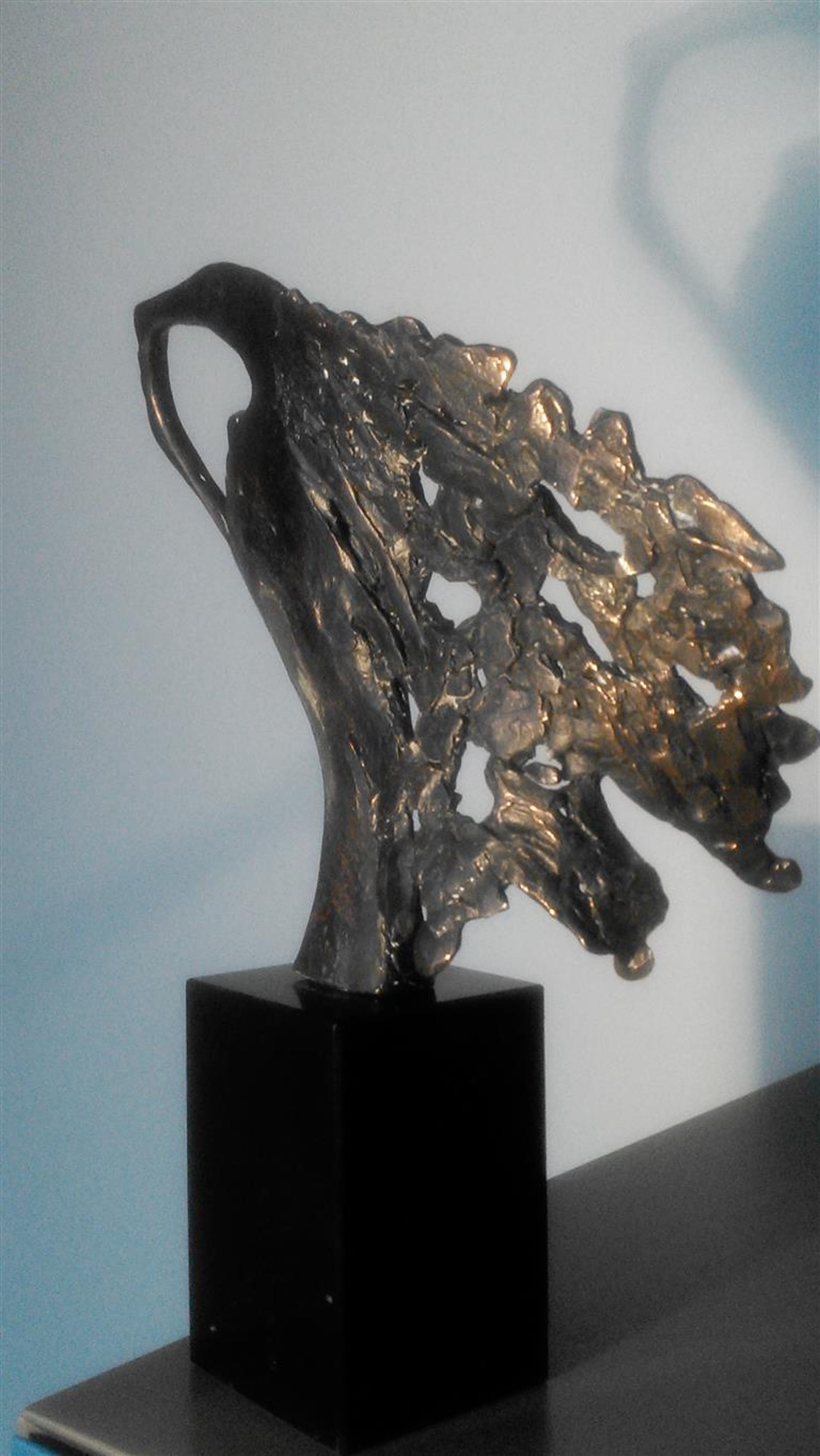 Op zwarte natuurstenen sokkel 9 x 6 x 6 cm een mooi gedetailleerd vrouwenhoofd en profil met de contouren van een tweede ik