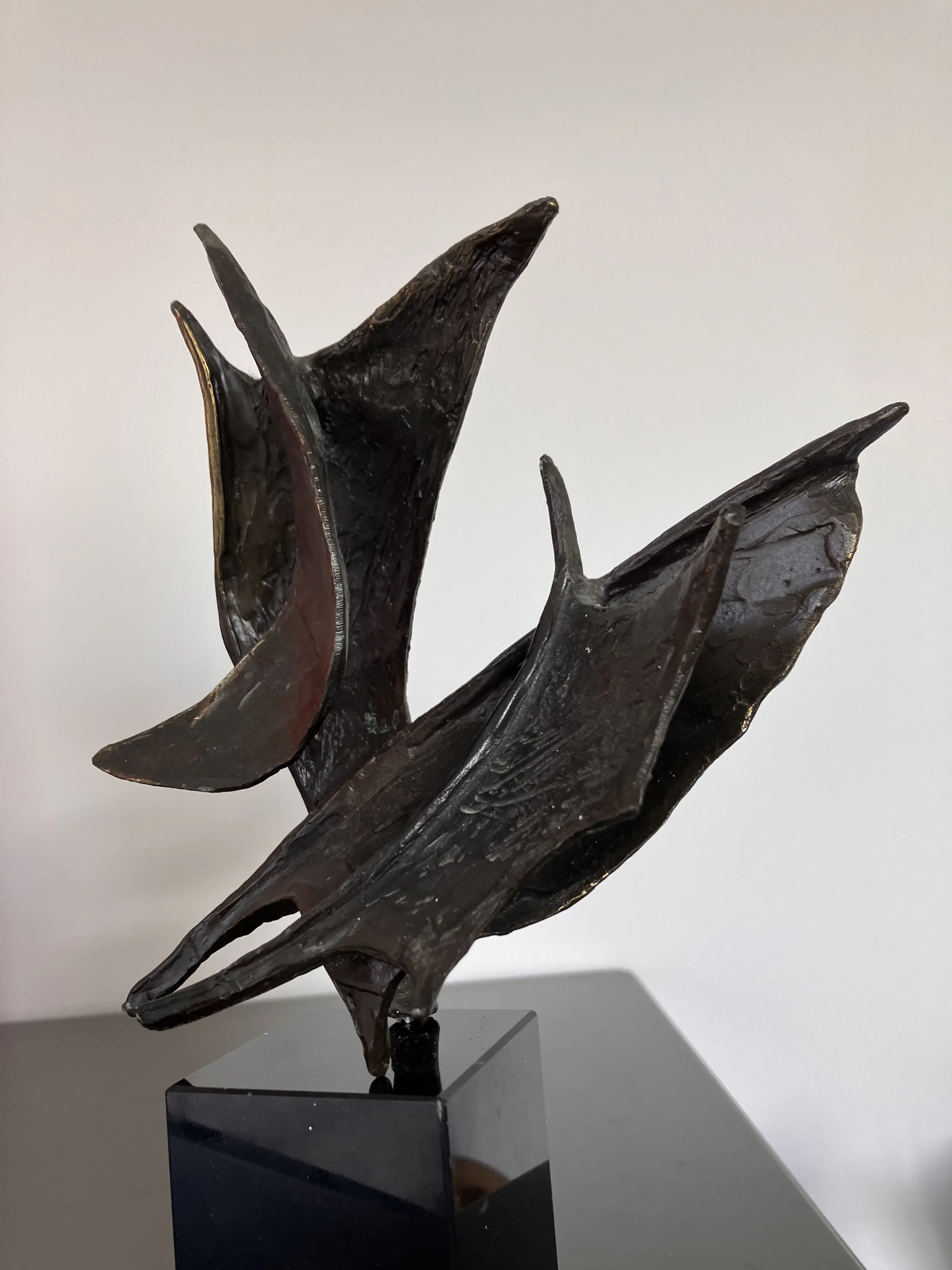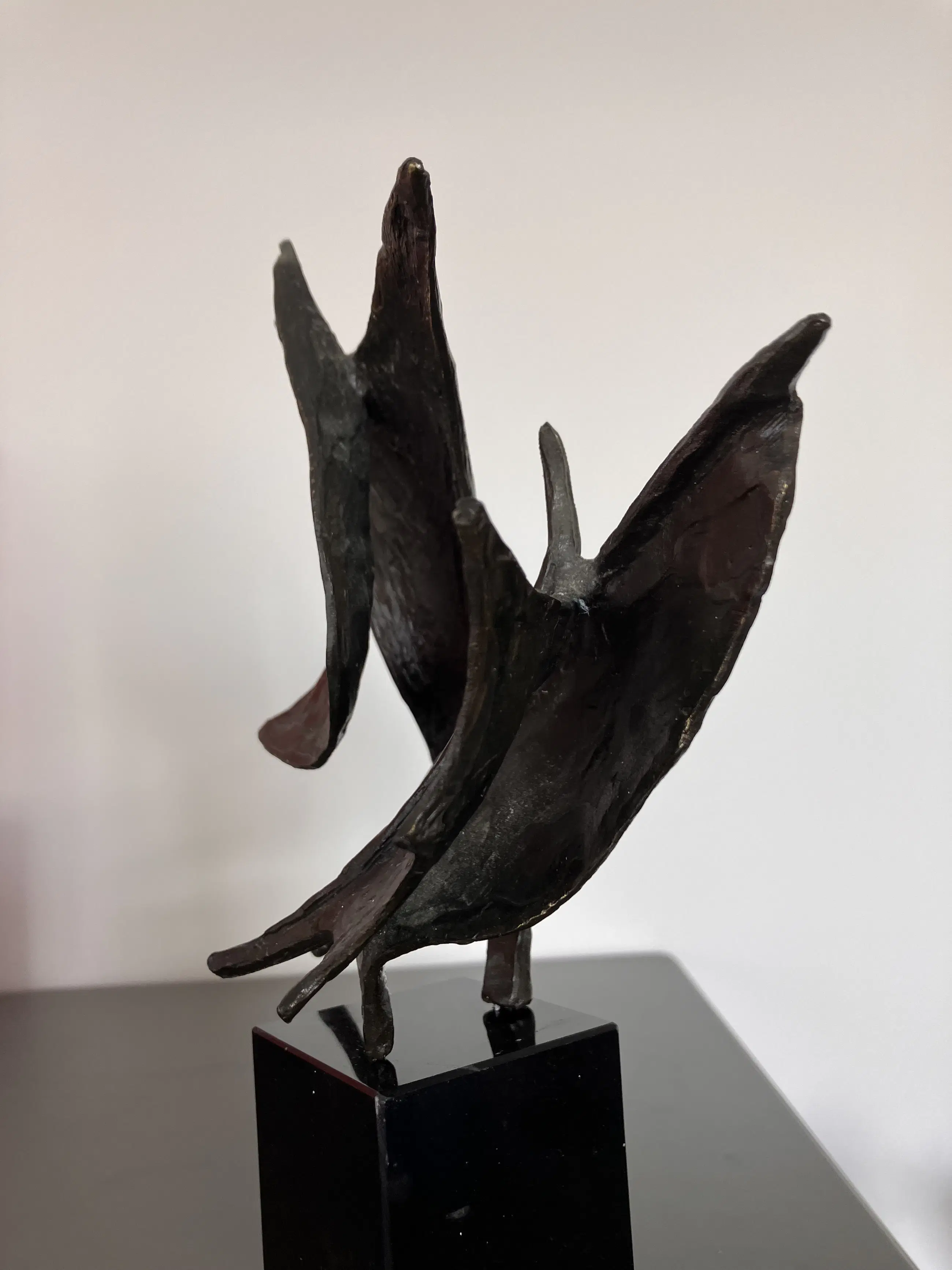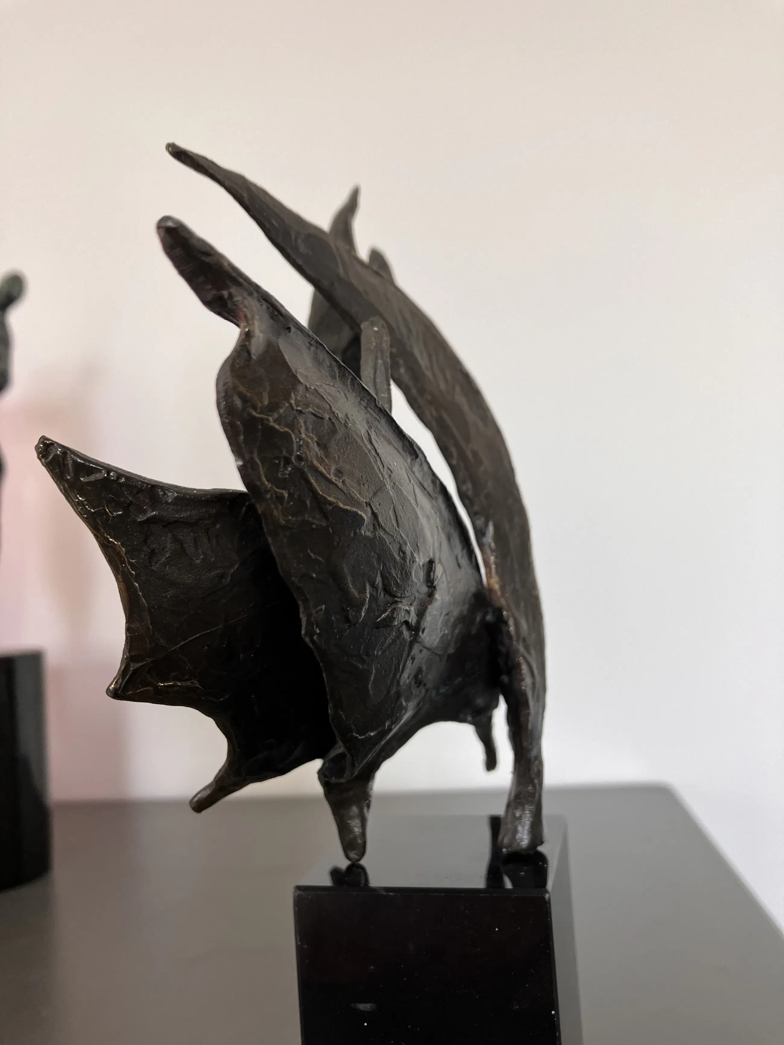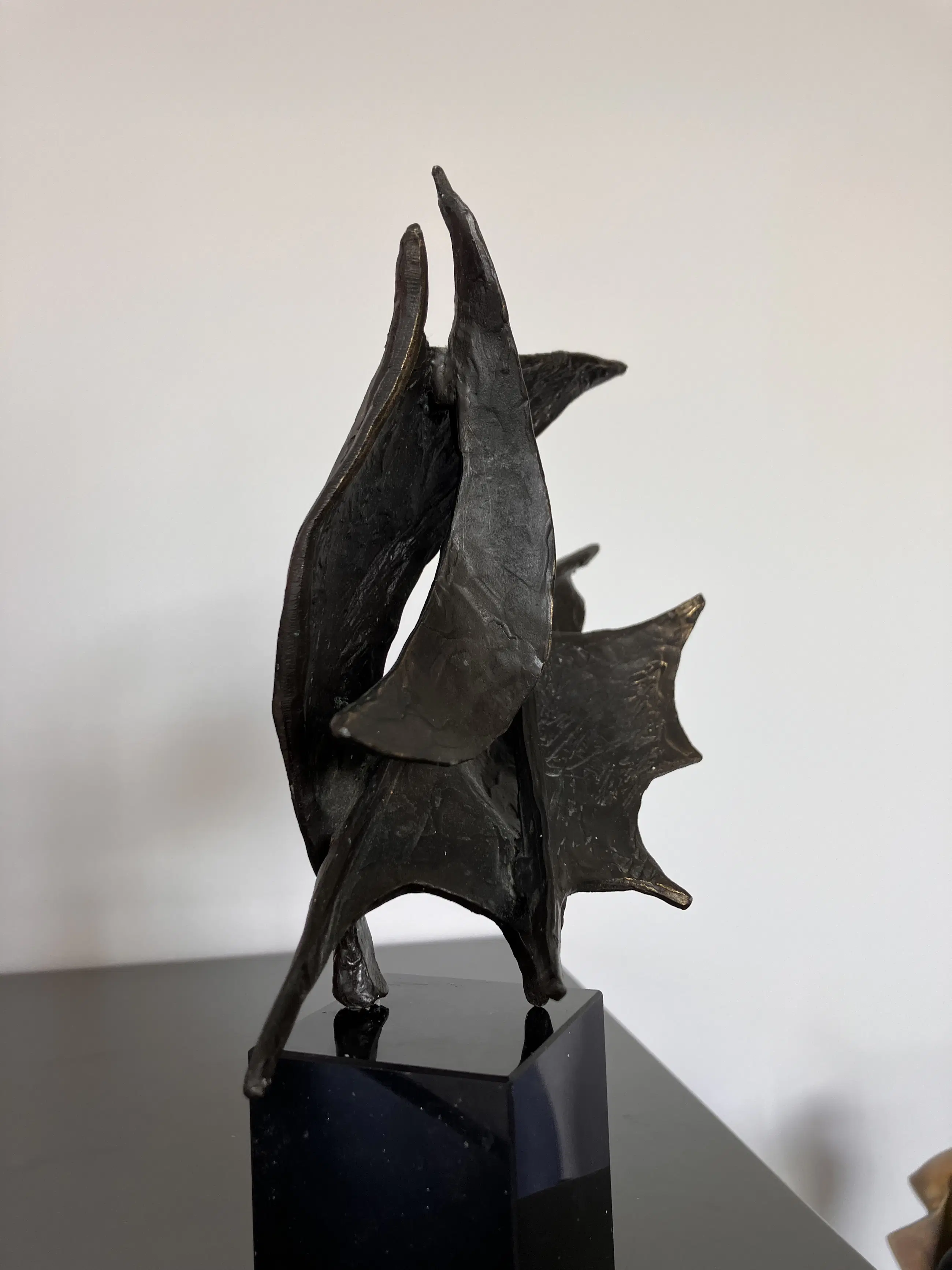 Op zwarte natuurstenen sokkel dit plastisch beeld. Motivatie kunstenares : Onze samenwerking is als de wind in de zeilen we varen koers op succes. "Bij mijn beelden ligt de uiteindelijke concentratie en aandacht in de vorm, maar ook hier spelen energie en levenslust een grote rol in beweging en dynamiek. Ik werk voornamelijk in brons."