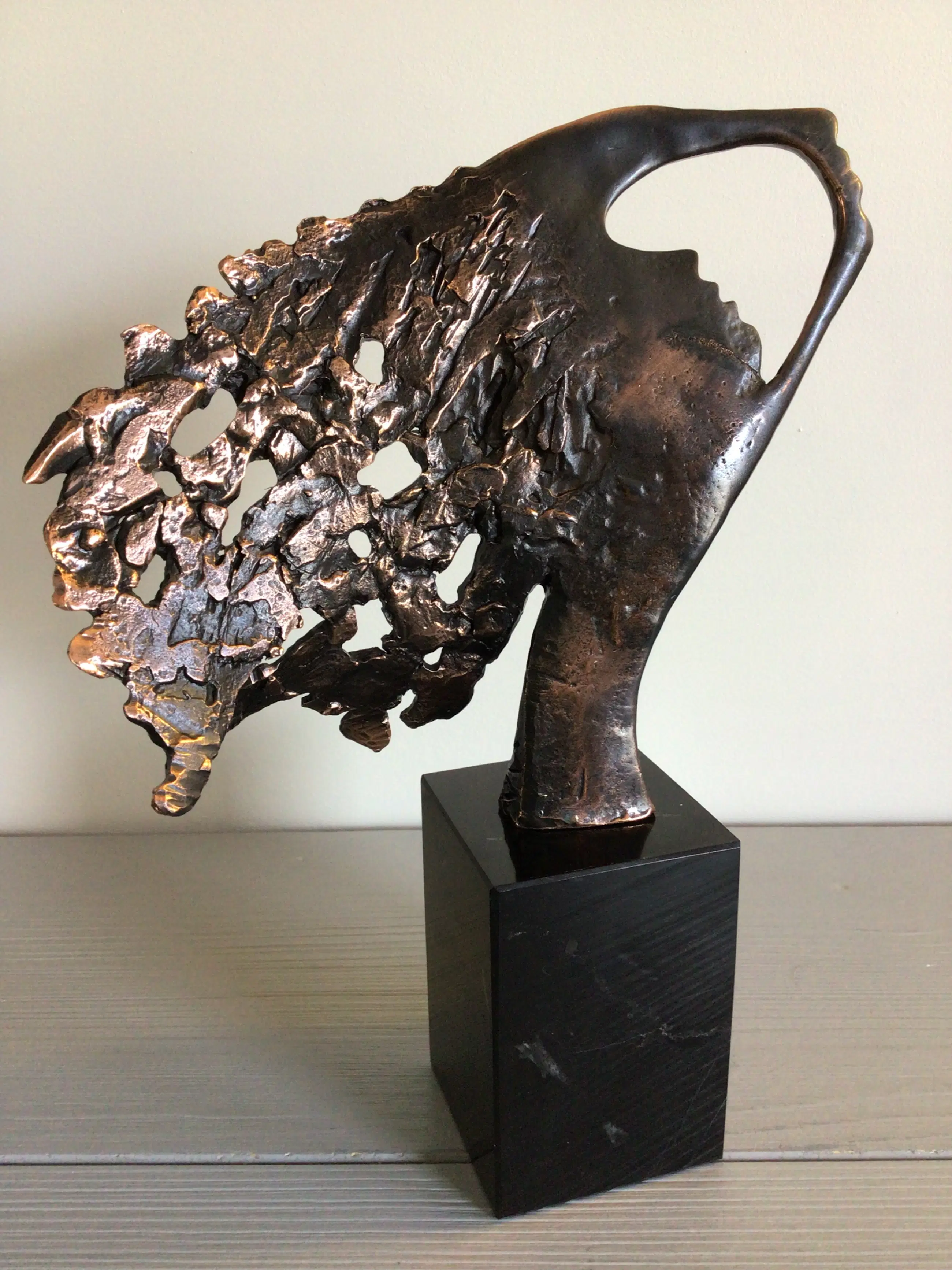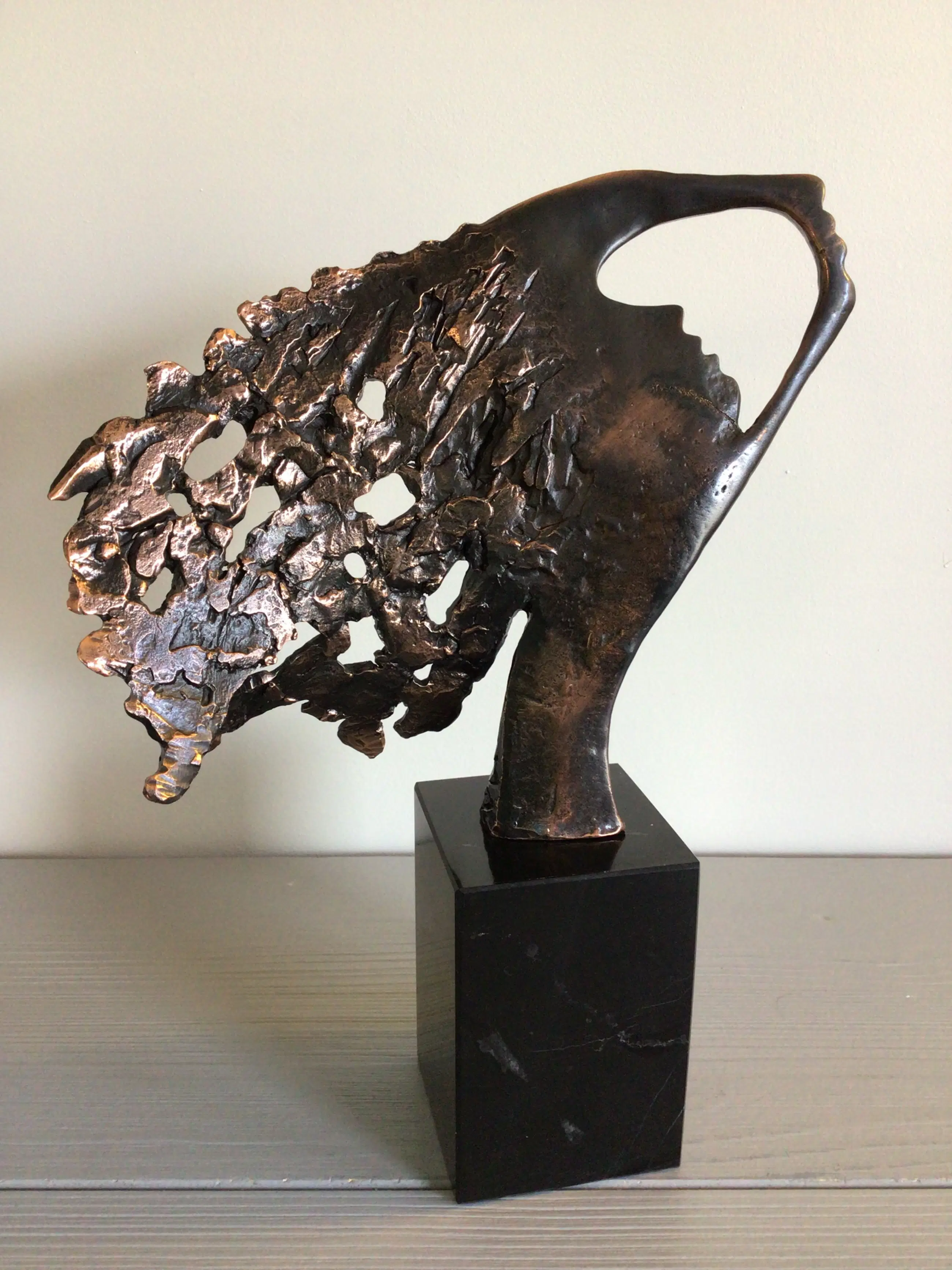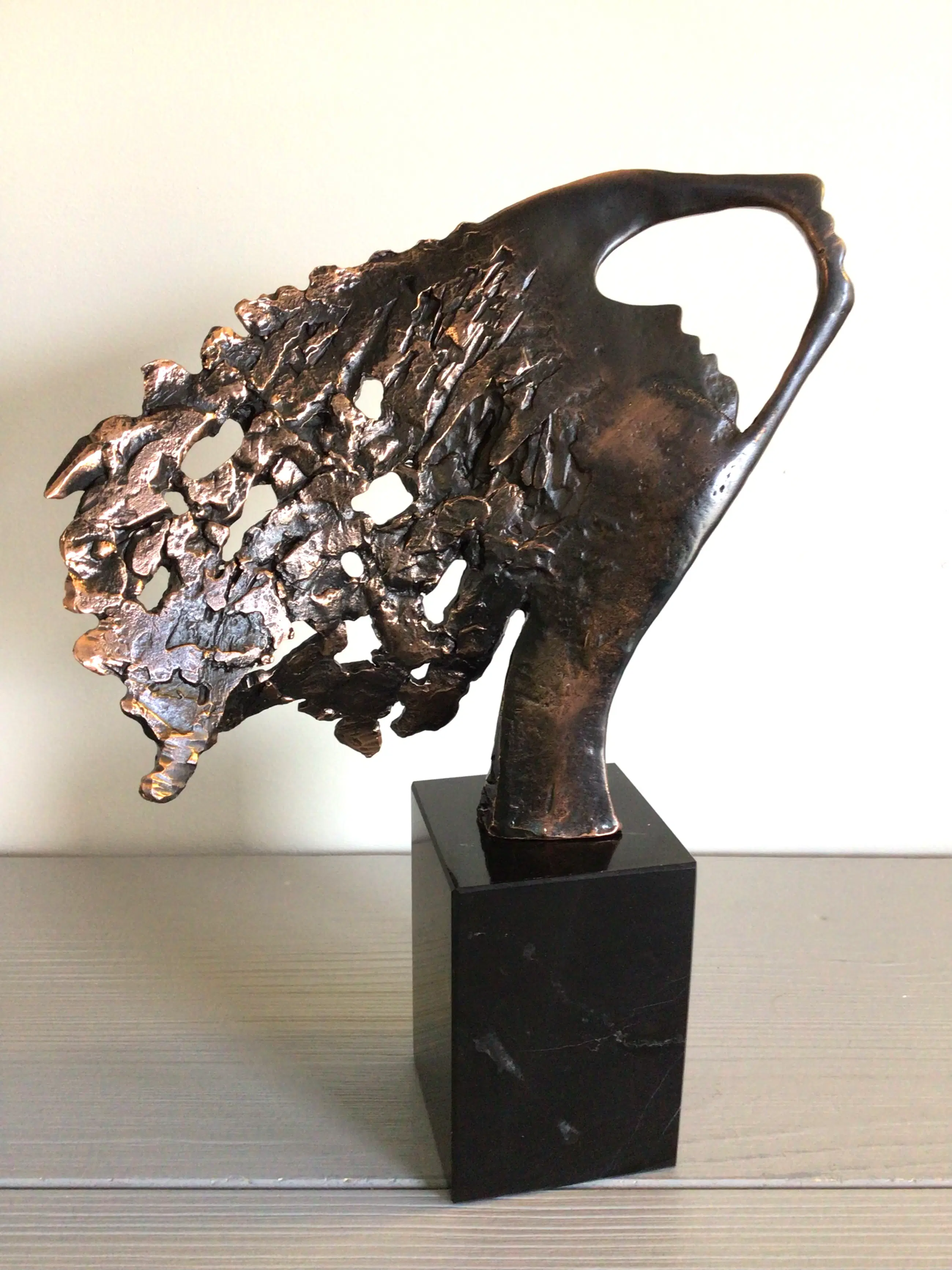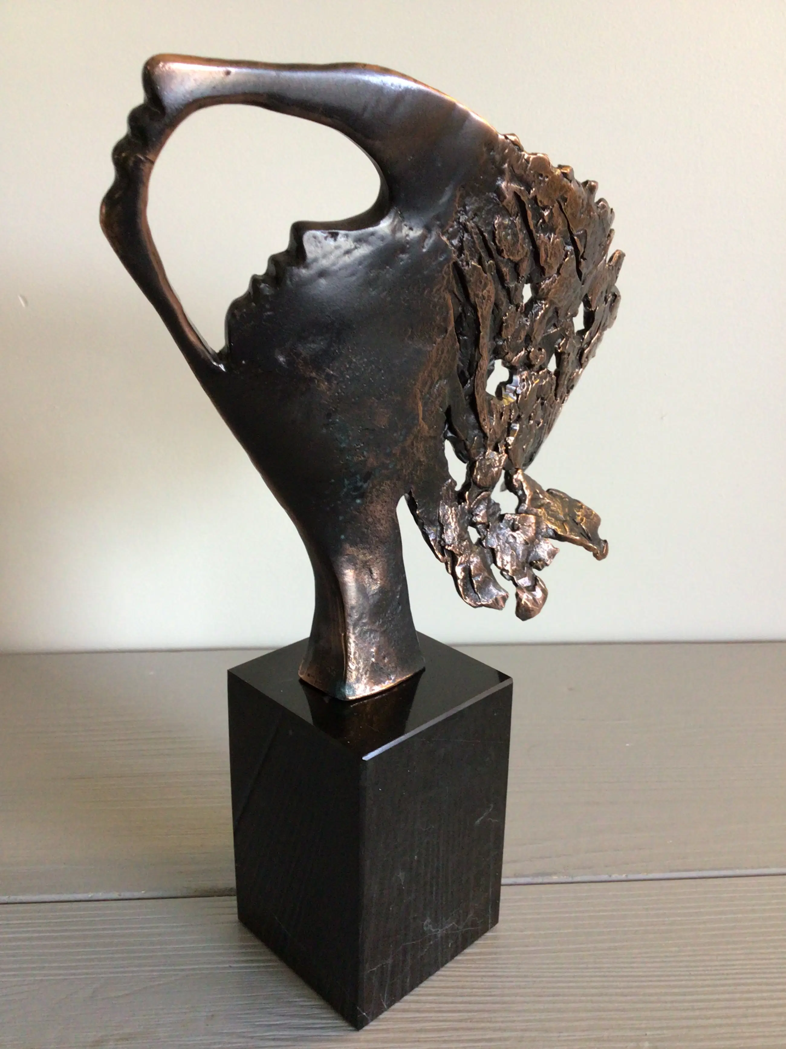 Zeer fraai en gedetailleerd vormgegeven sculptuur van een vrouwengezicht dat vol verwachting omhoog kijkt , een zeer bijzonder en zeldzaam exemplaar. Titel “ Visie op de toekomst “ Kunstenares: Bernadette Leijdekkers Het beeld is op de achterzijde gesigneerd: BL Materiaal: brons op fraaie zwart marmeren sokkel Het beeld verkeert in goede staat en wordt zorgvuldig verpakt verzonden.