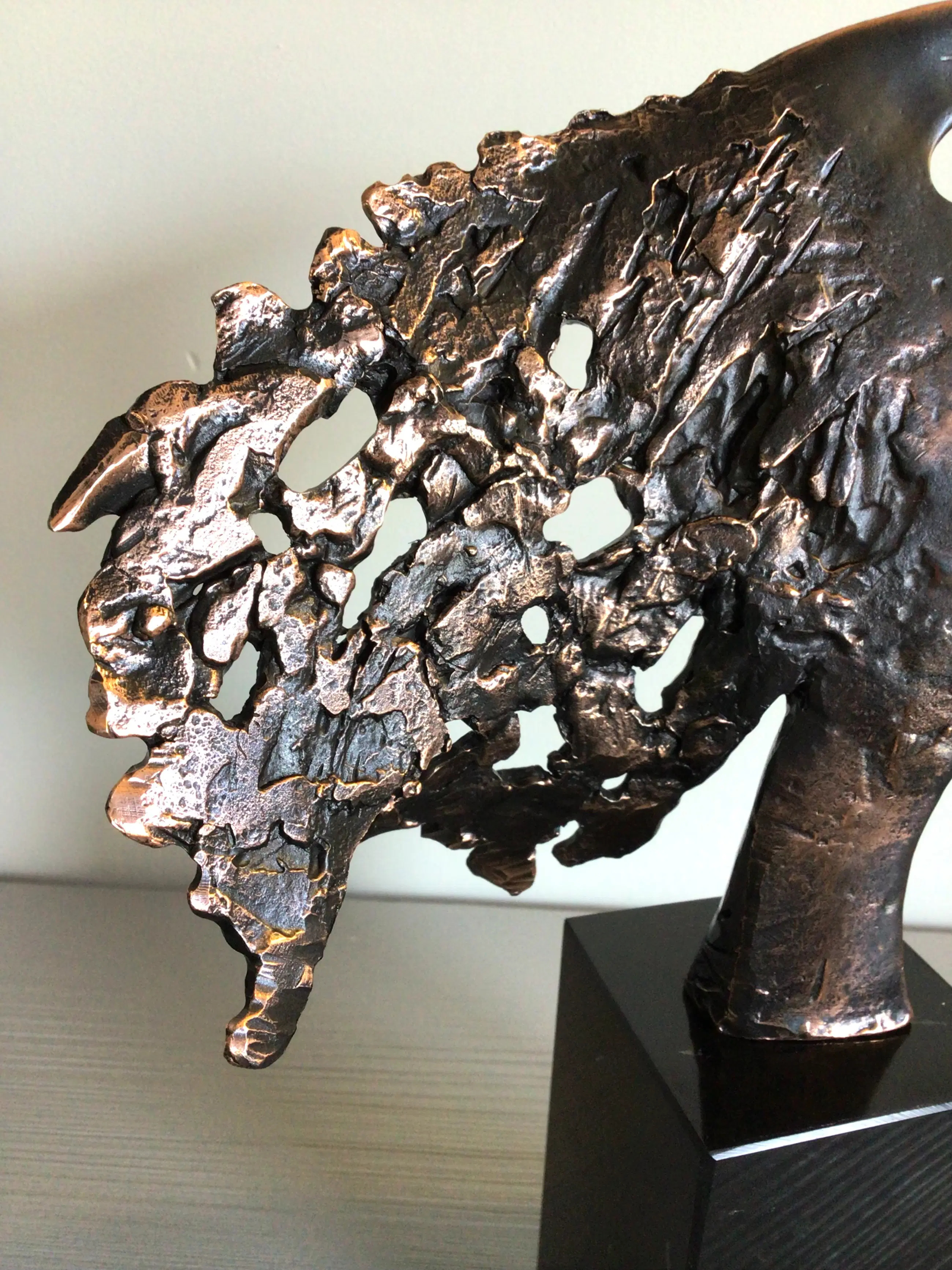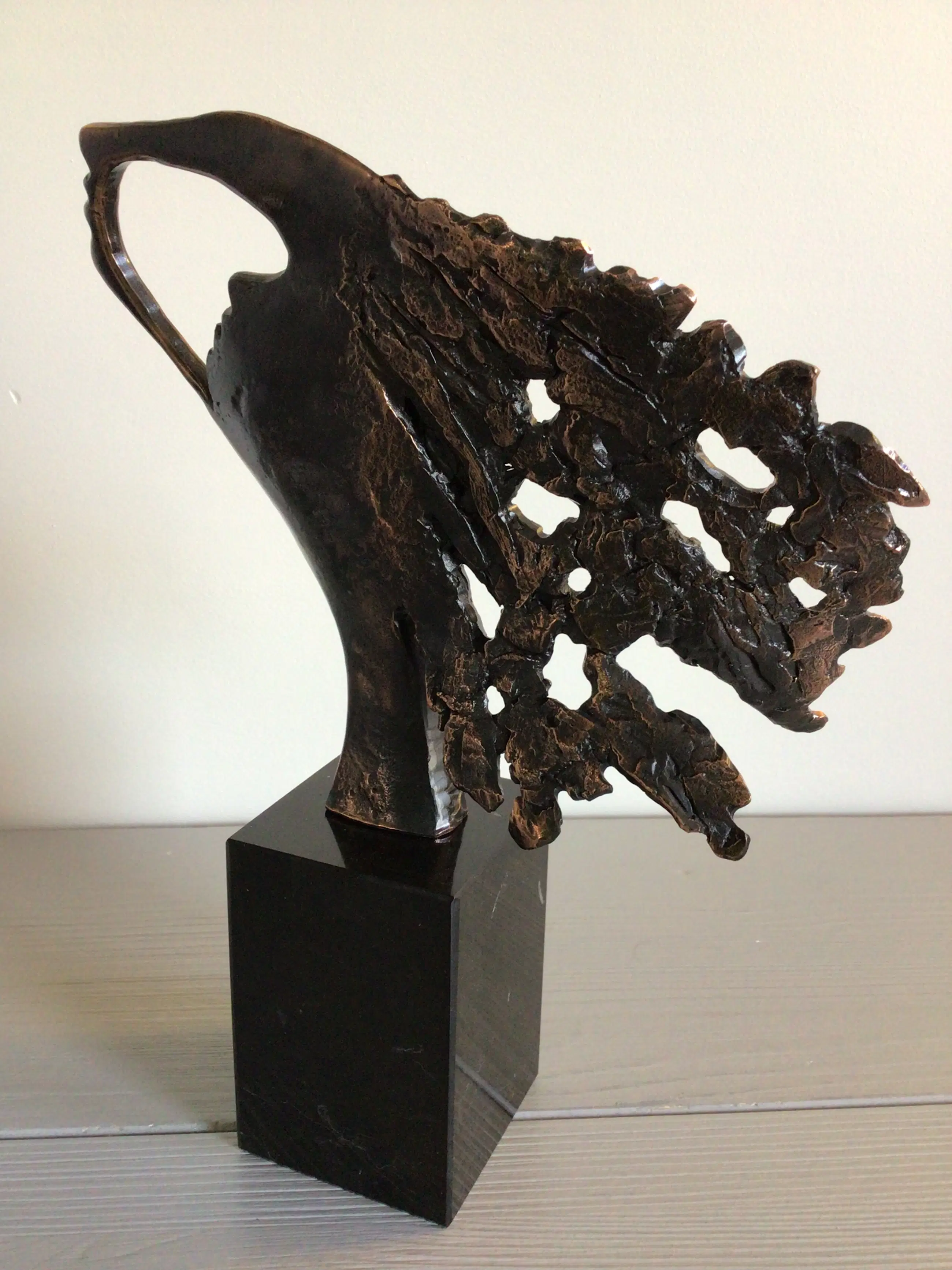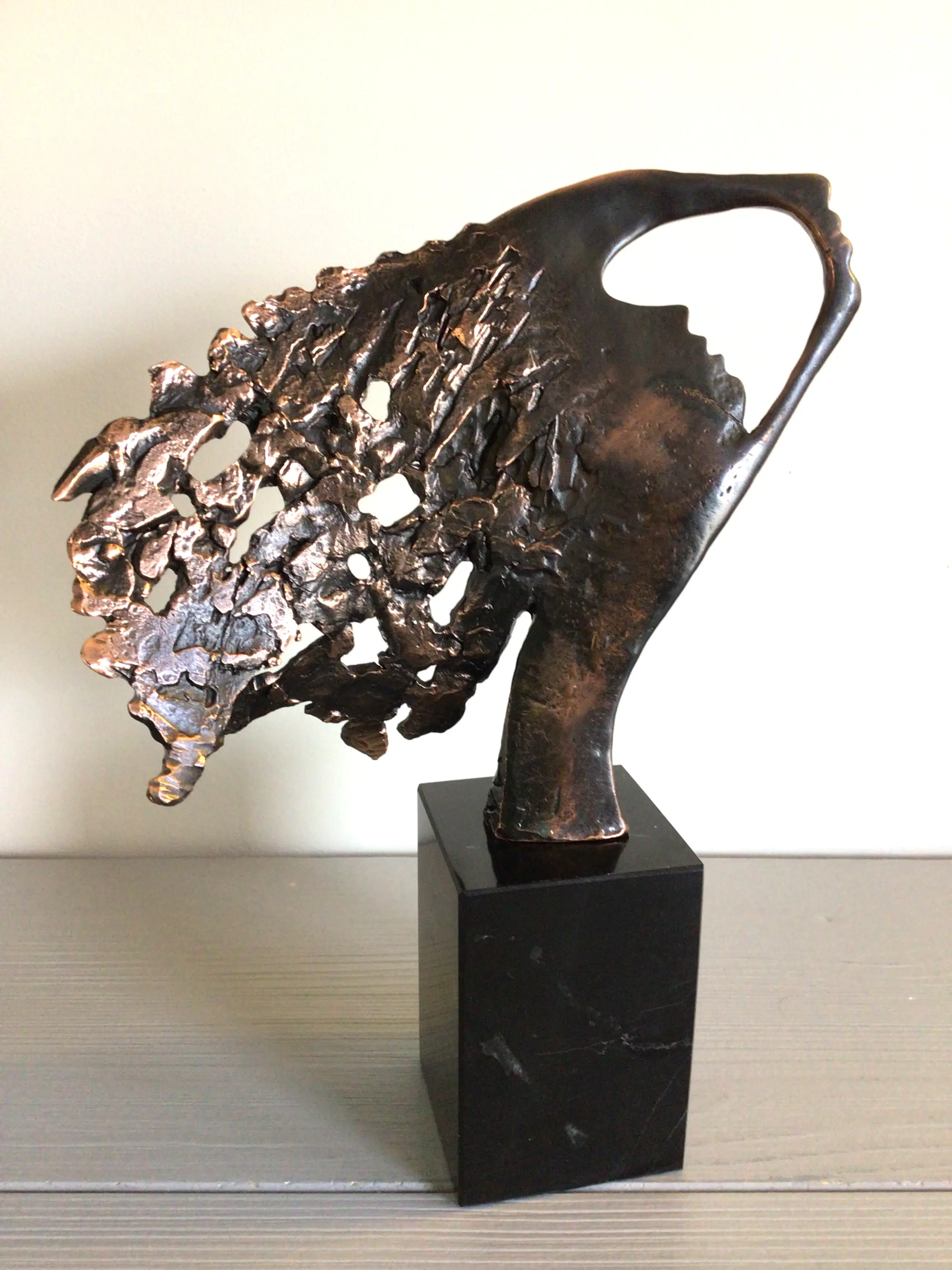 Zeer fraai en gedetailleerd vormgegeven sculptuur van een vrouwengezicht dat vol verwachting omhoog kijkt , een zeer bijzonder en zeldzaam exemplaar. Titel “ Visie op de toekomst “ Kunstenares: Bernadette Leijdekkers Het beeld is op de achterzijde gesigneerd: BL Materiaal: brons op fraaie zwart marmeren sokkel Het beeld verkeert in goede staat en wordt zorgvuldig verpakt verzonden.
