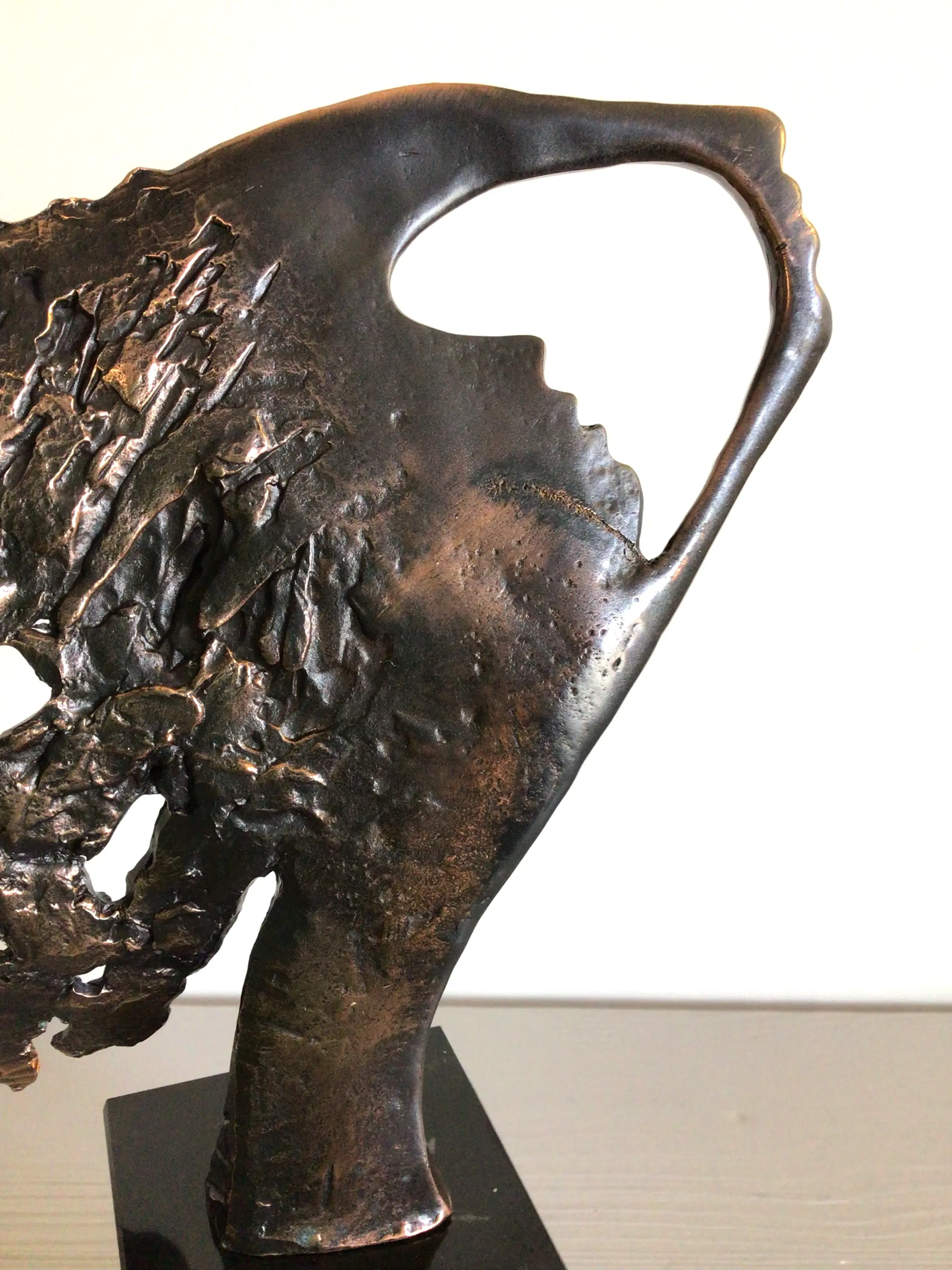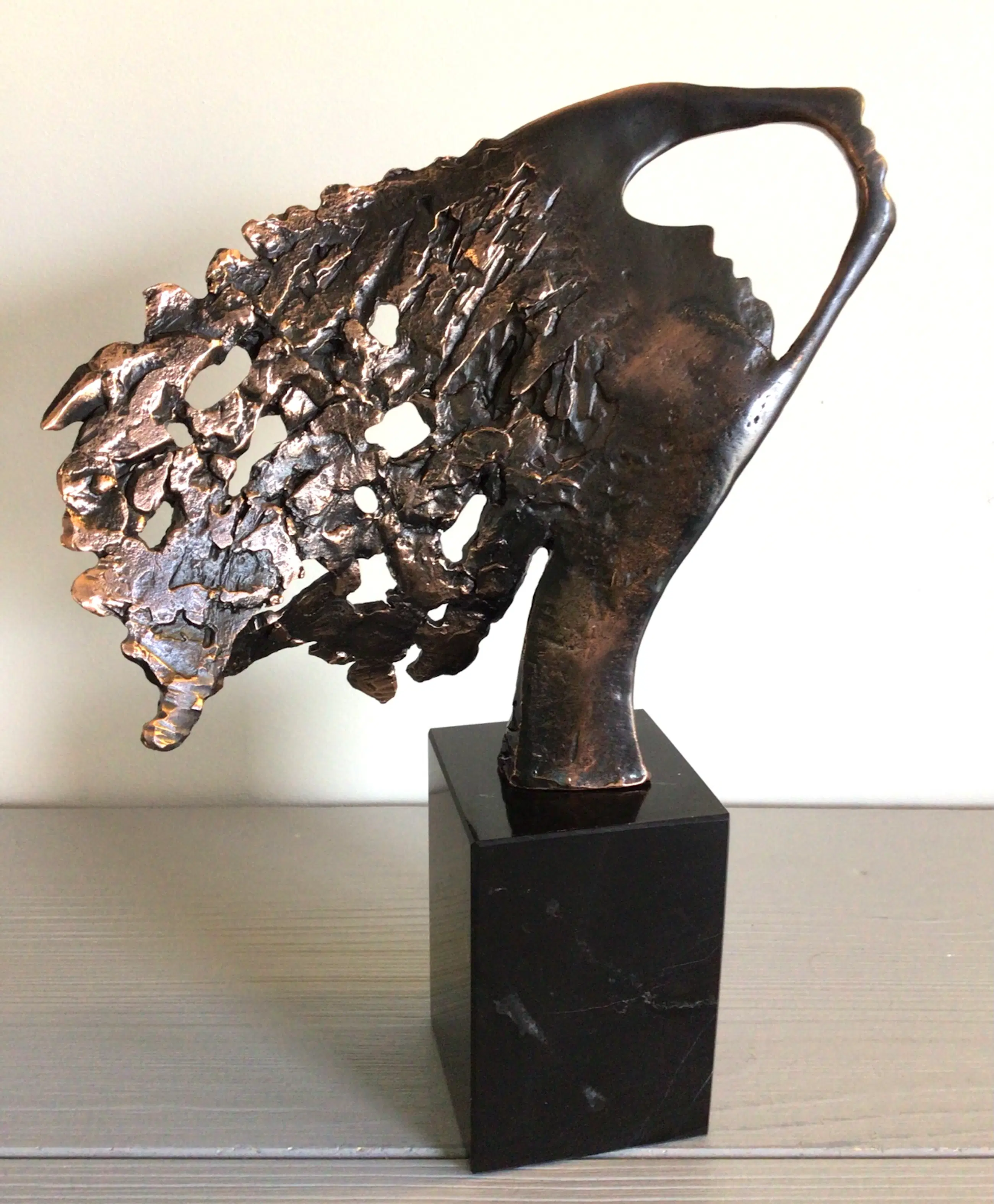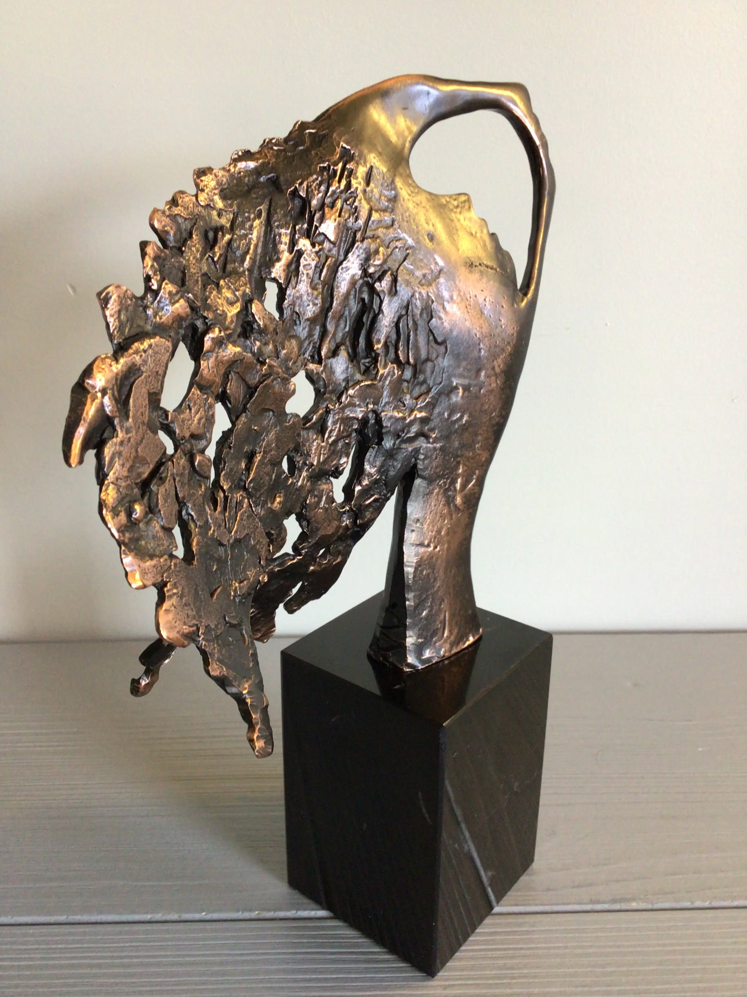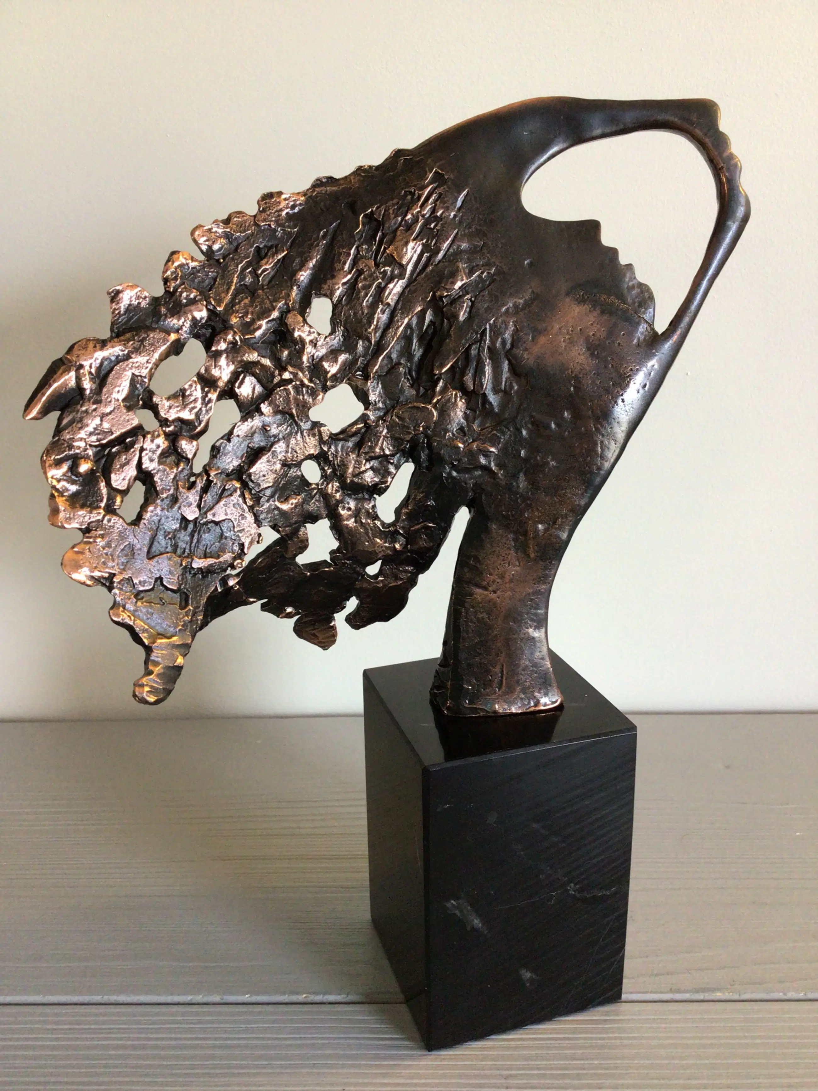 Zeer fraai en gedetailleerd vormgegeven sculptuur van een vrouwengezicht dat vol verwachting omhoog kijkt , een zeer bijzonder en zeldzaam exemplaar. Titel “ Visie op de toekomst “ Kunstenares: Bernadette Leijdekkers Het beeld is op de achterzijde gesigneerd: BL Materiaal: brons op fraaie zwart marmeren sokkel Het beeld verkeert in goede staat en wordt zorgvuldig verpakt verzonden.