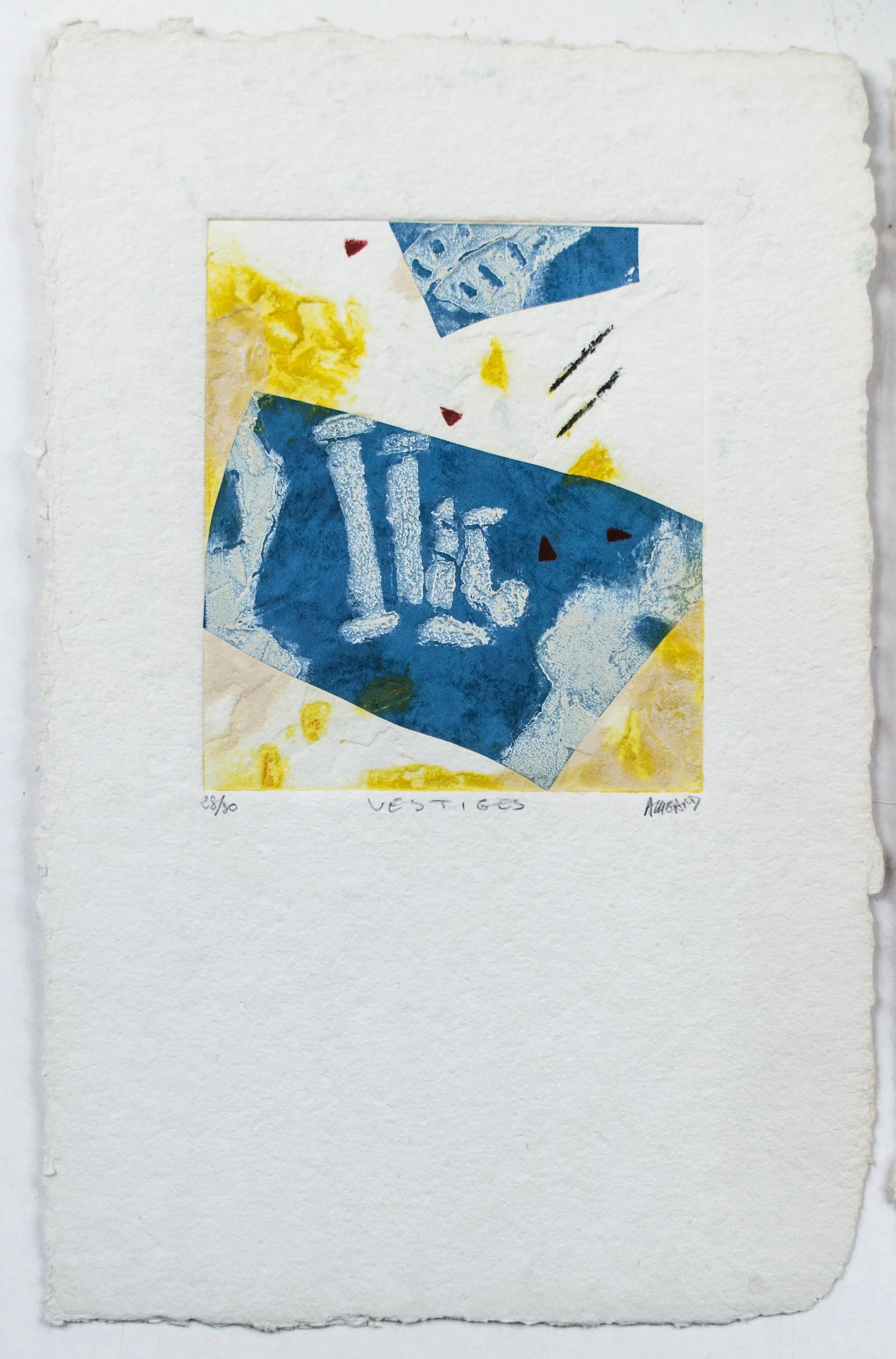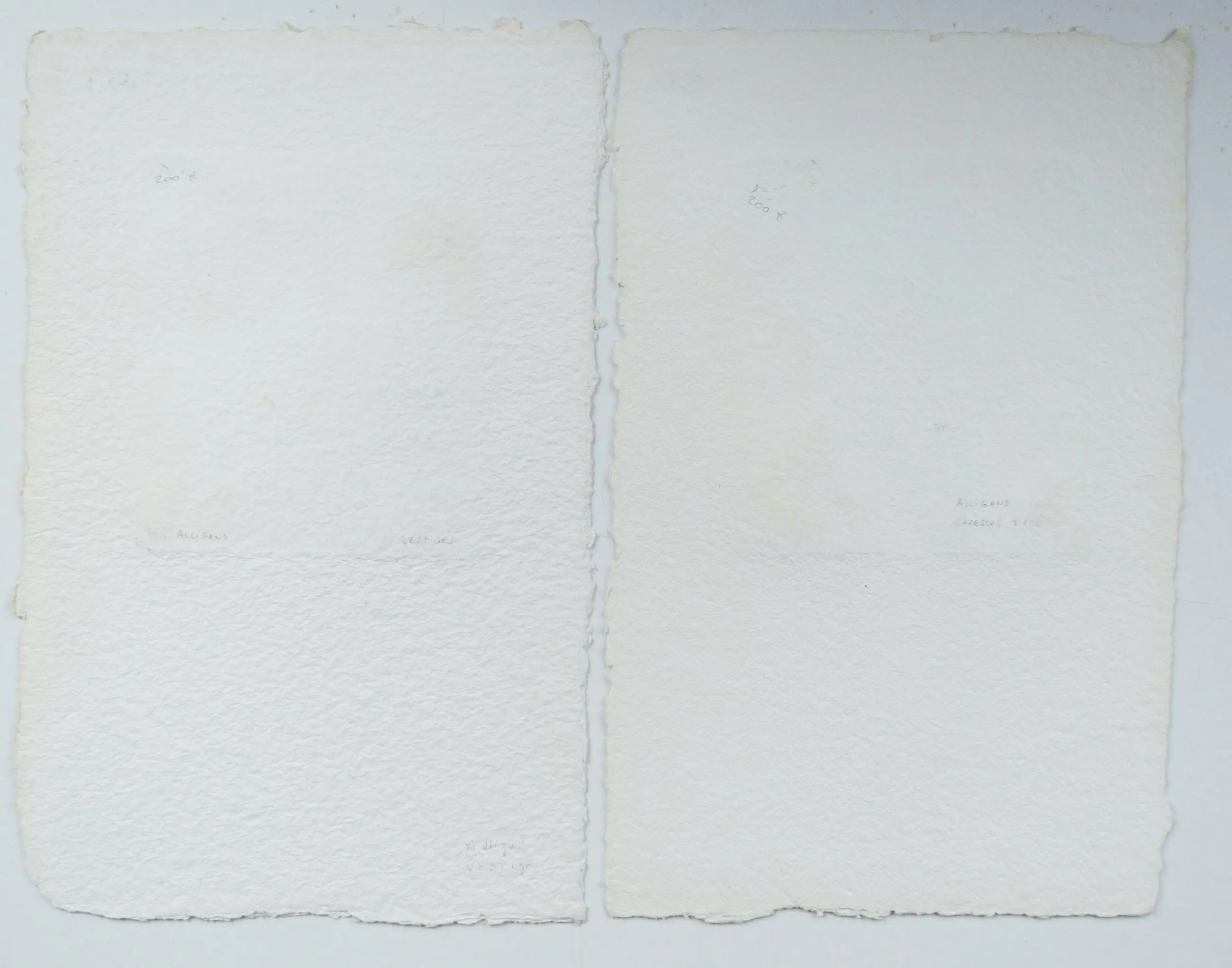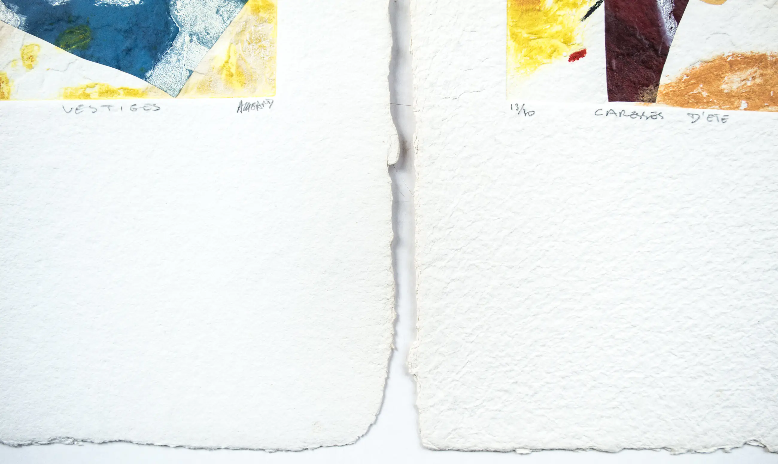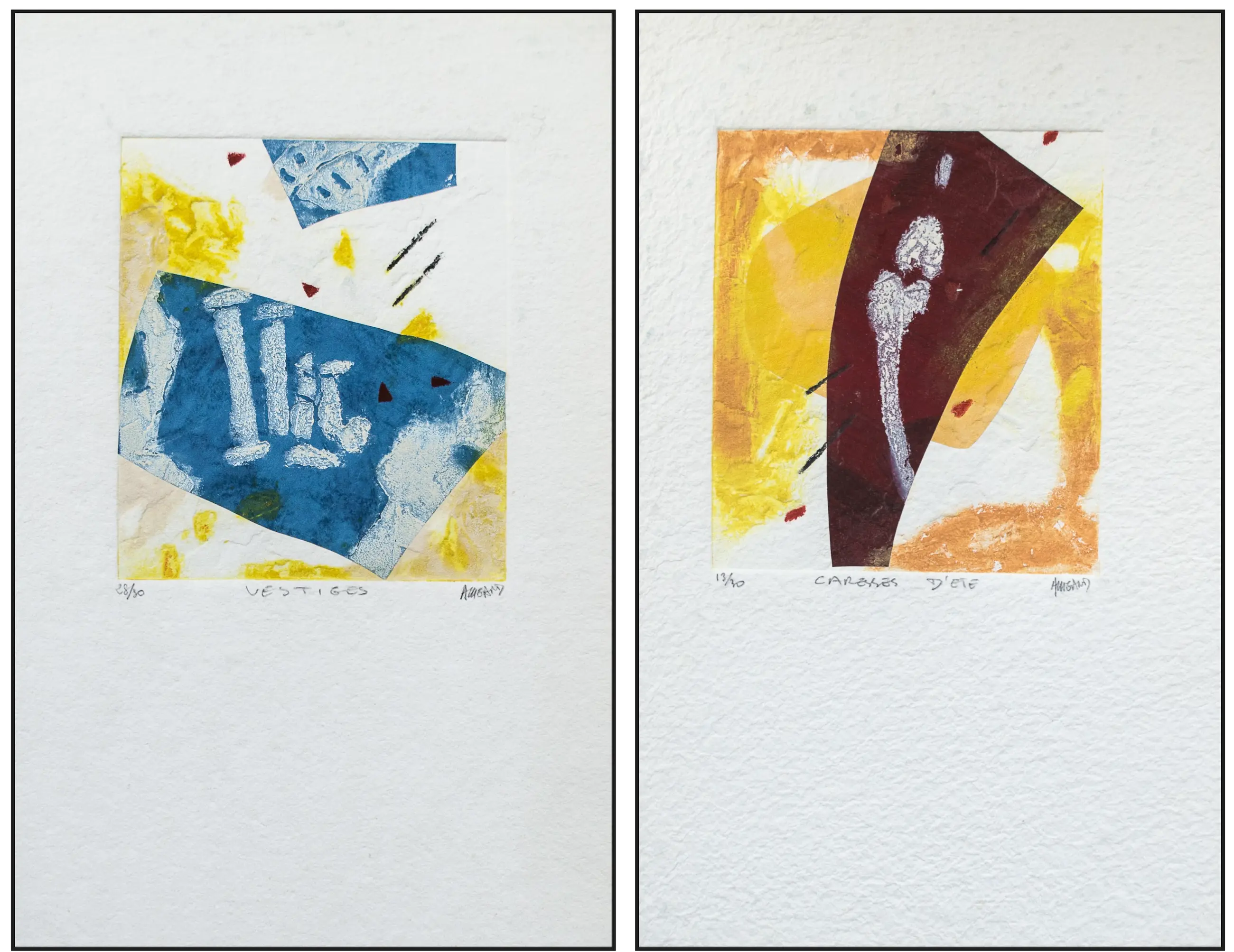 Caresses d´ été: nr. 13/30. Formaat afbeelding 23 x 20 cm, formaat papier 50 x 34 cm. Vestiges: nr. 28/30. Formaat afbeelding 23 x 20 cm, formaat papier 52 x 33,5 cm.