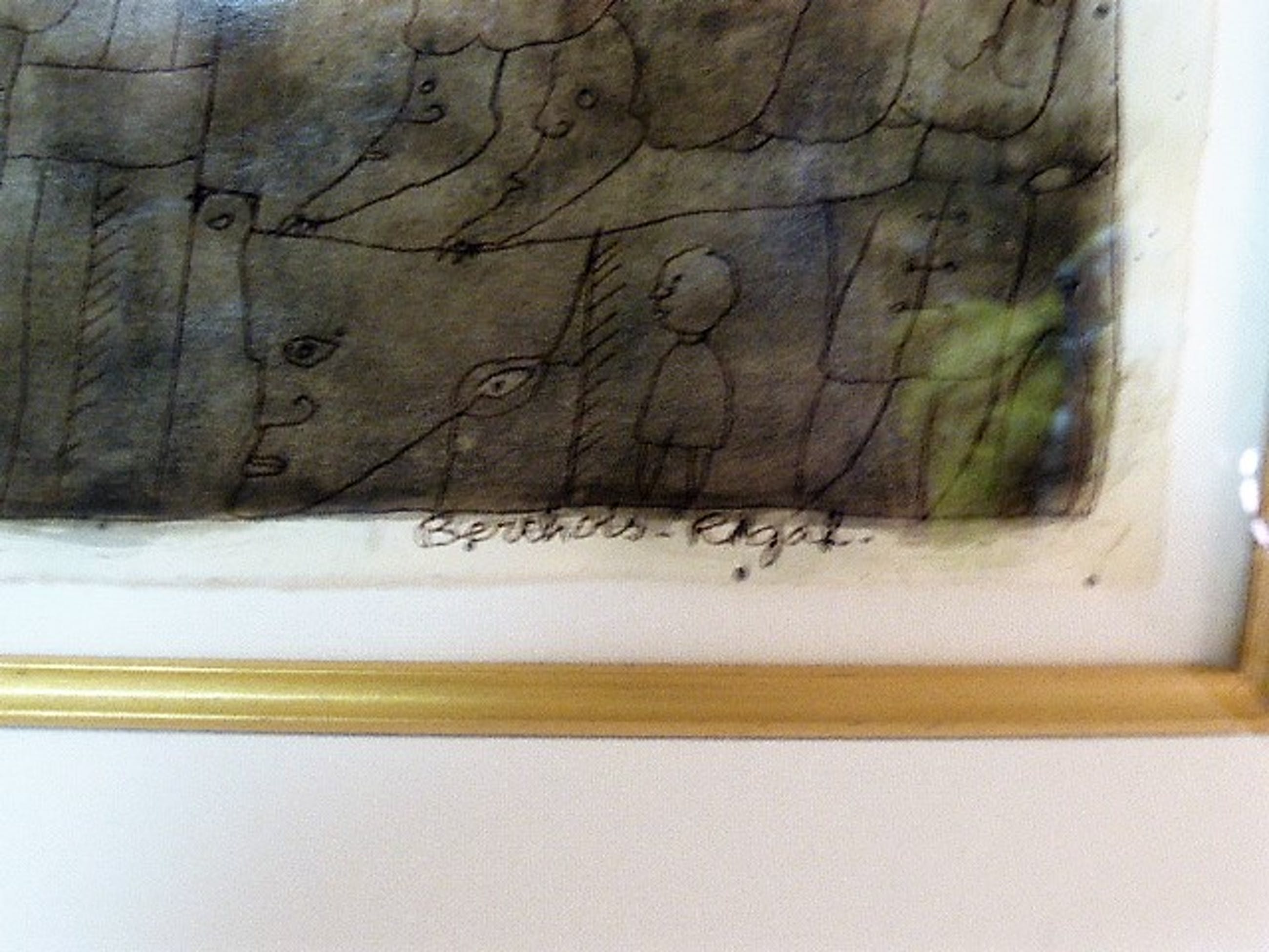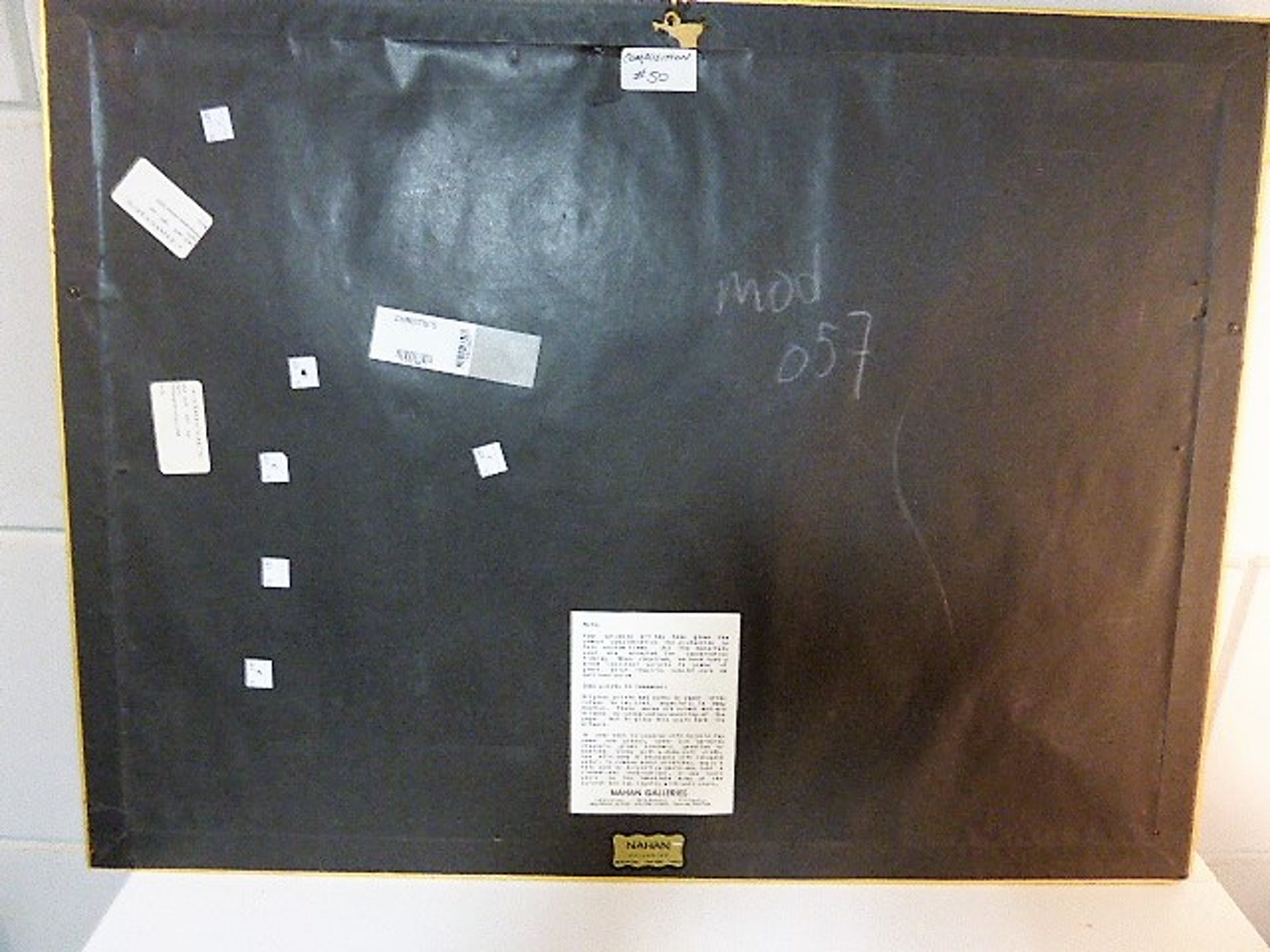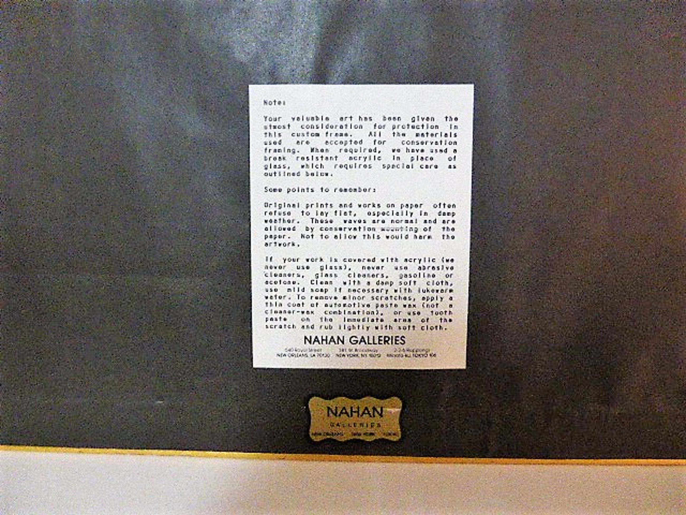 Bijzonder werk in verschillende techniek Pen en aquarel en lak? Mooi ingelijst met speciaal acrylglas, waardoor de fotos niet zo goed uitkomen. Op de achterzijde stickers van Nathan Gallerie en van Christie. Hand gesigneerd etc.