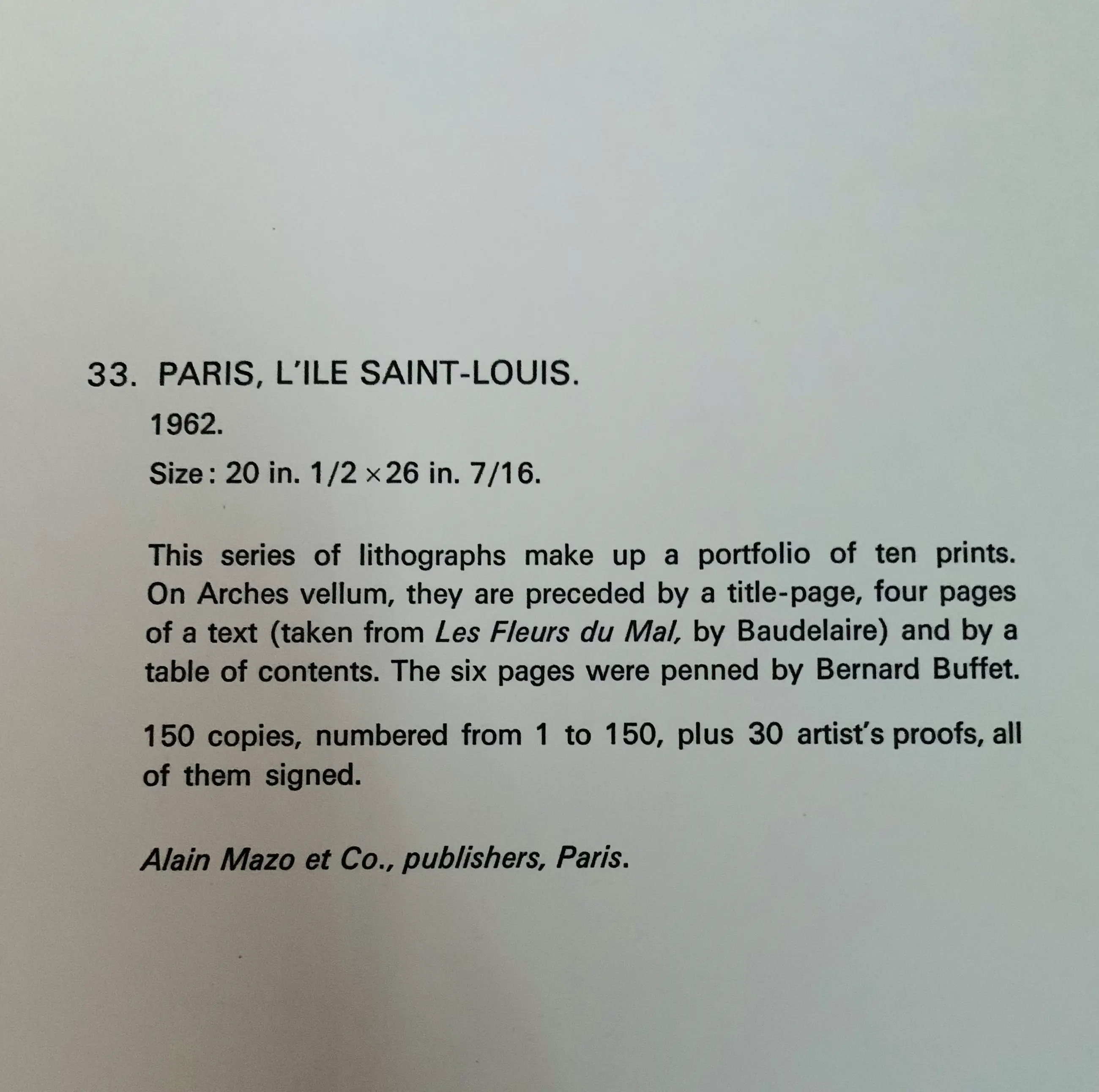 Dit werk werd in november 1967 gedrukt op de persen van Fernand Mourlot, meesterlithograaf in Parijs. Het draagt het nummer van de litho in de map, tekst op de achterkant. In uitstekende staat en is nooit ingelijst geweest.
