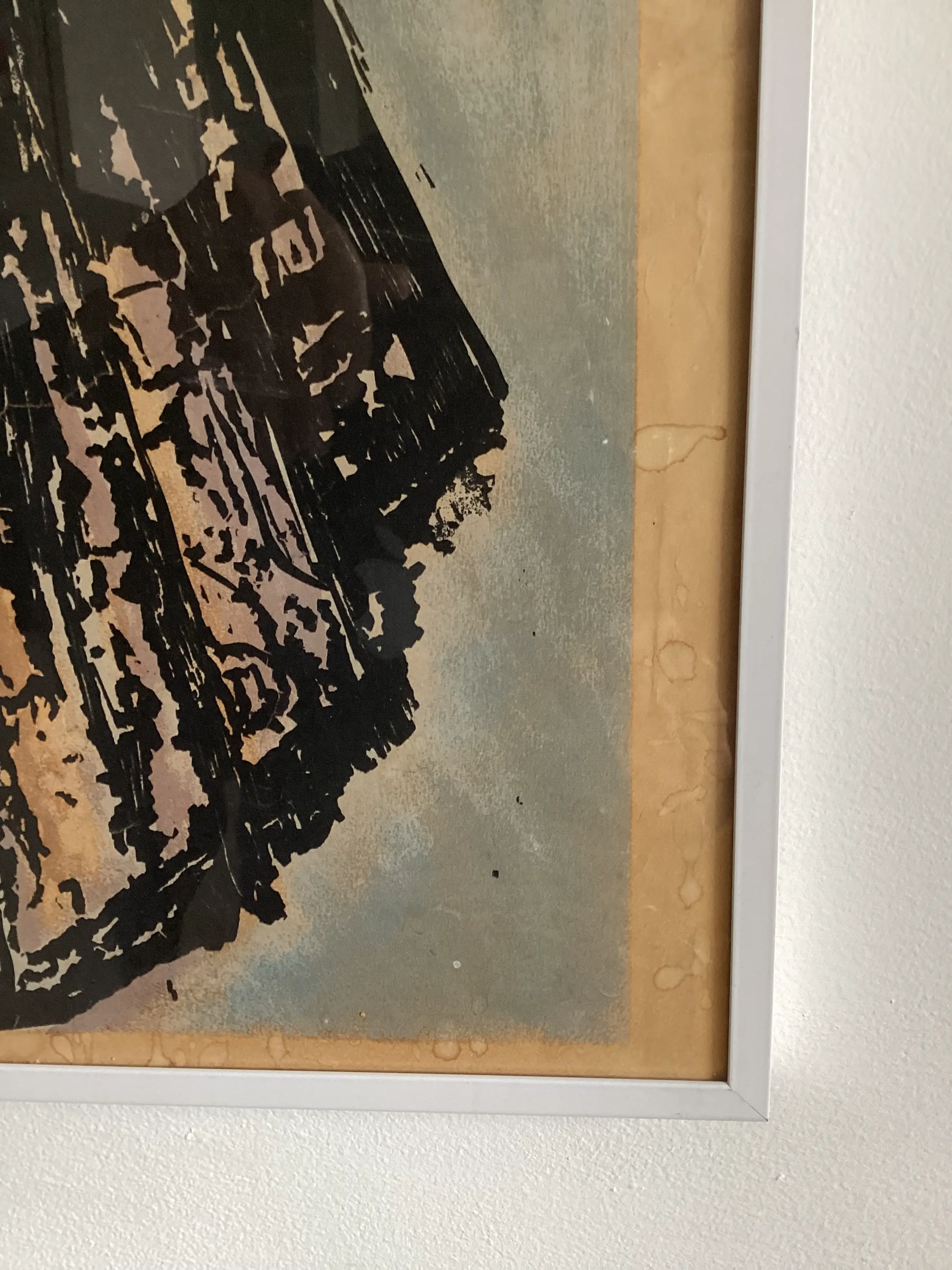 Het betreft een uitsnede (vanwege waterschade) van lithografische poster, uitgave 1958, ingelijst.