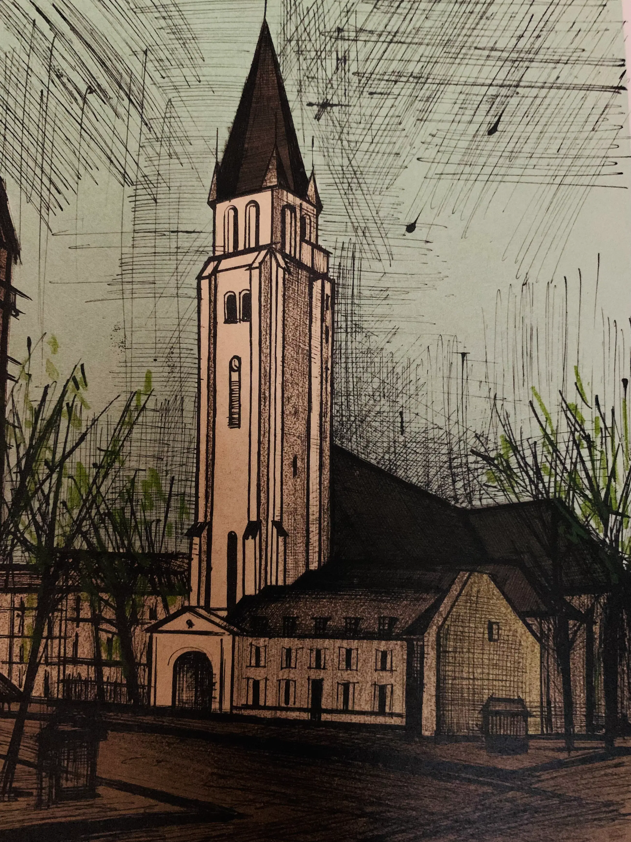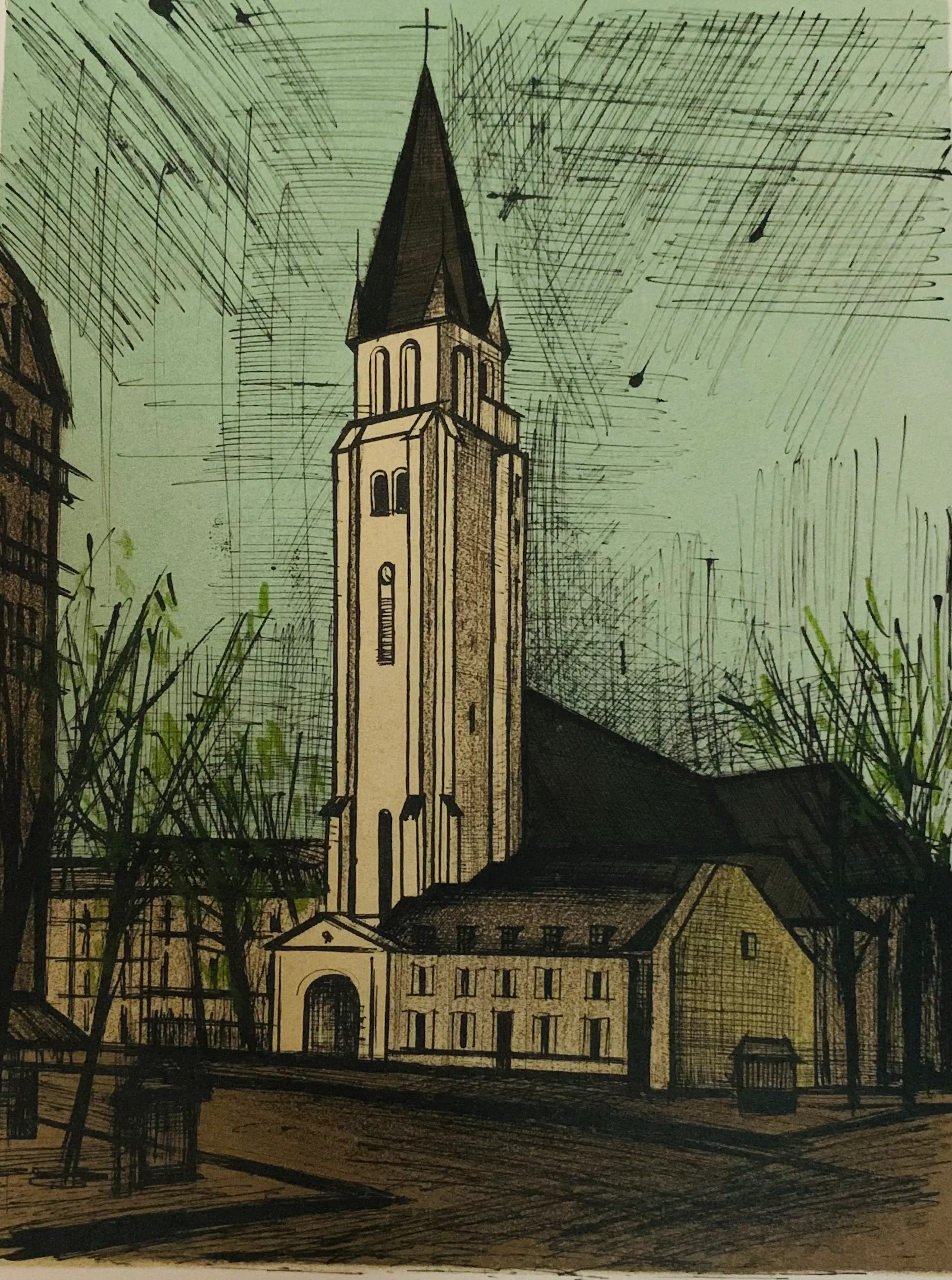 Bernard Buffet: “Place Saint-Germain-des-Prés in het 6e arrondissement van Parijs, 1965” Lithografie.