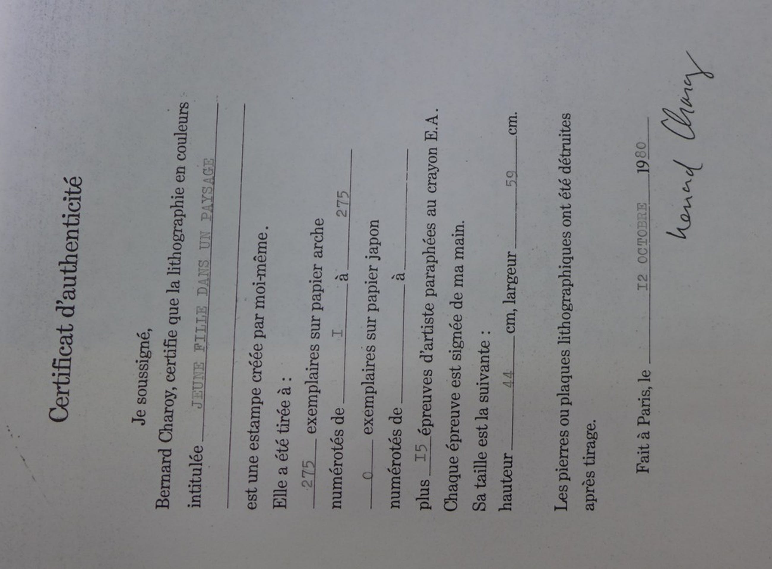 | Type kunstwerk | Grafiek (handgesigneerd) |