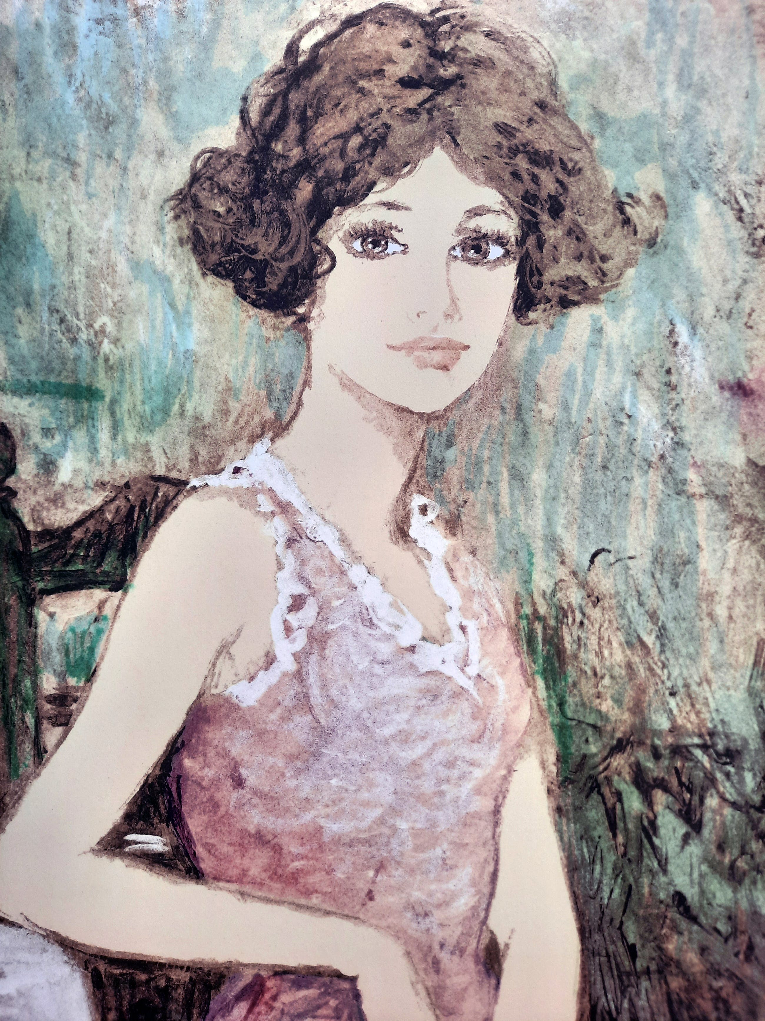 In nieuwstaat verkerende steendruk uit 1956 van Bernard Charoy. Charoy werd in 1931 geboren in een familie van ambachtslieden in Lotharingen. In 1955 studeerde hij vier jaar schilderen, tekenen en lithografie aan het Dejoie Atelier in Montmartre. In 1958 maakte hij zijn eerste tekeningen en illustraties voor Editions Dargaud. Daarna, in 1959, tekende hij voor het Presse Magazine en voor La Vie Parisienne. Hij maakte ook portretten van politieke persoonlijkheden voor het tijdschrift Tout Savoir. De kunstenaar is vooral bekend om zijn vrouwelijke voorstellingen, de ‘pin-up’. Hij blinkt ook uit in het maken van prototypes en in zijn praktijk van het schilderen van landschappen.