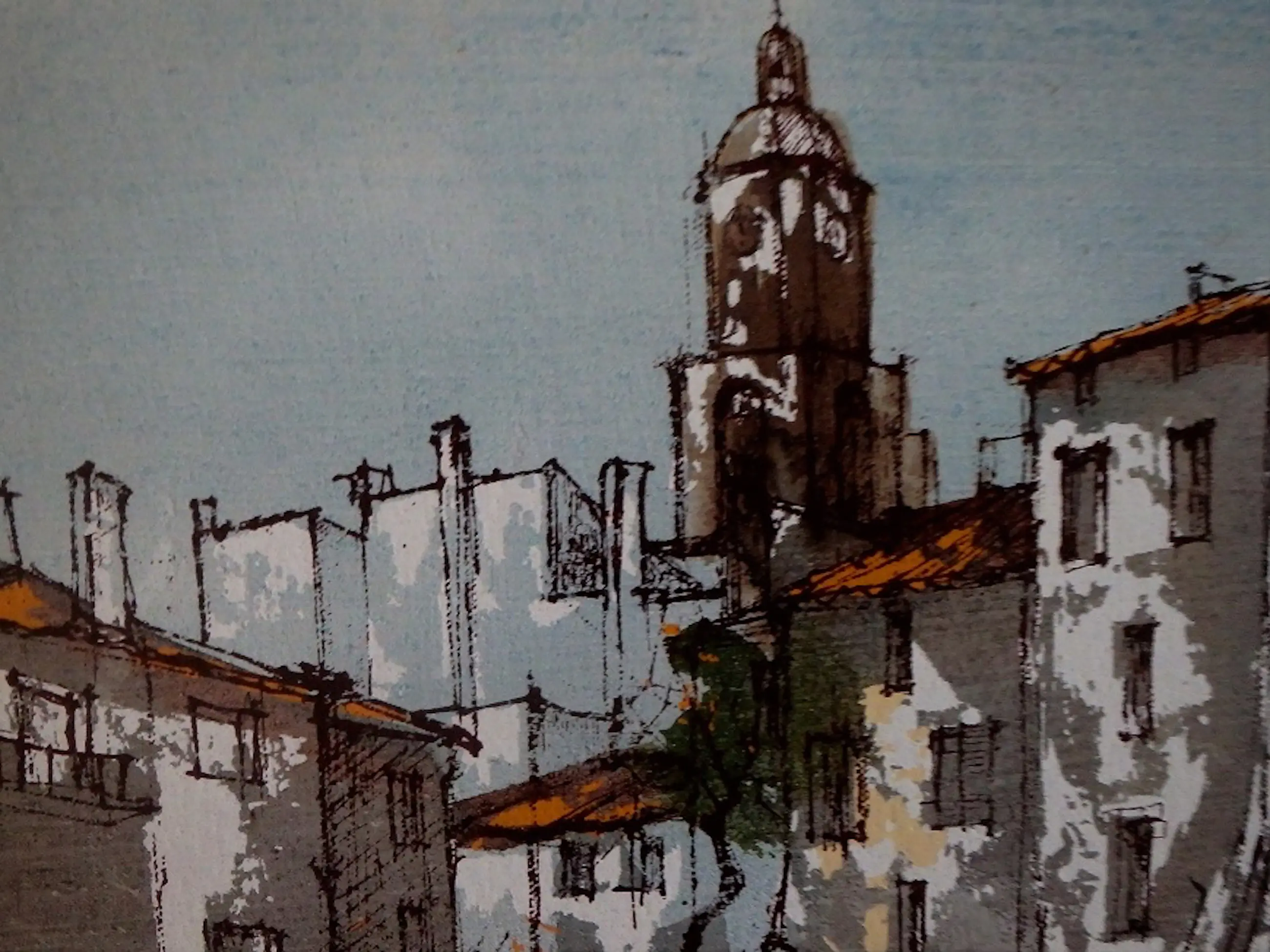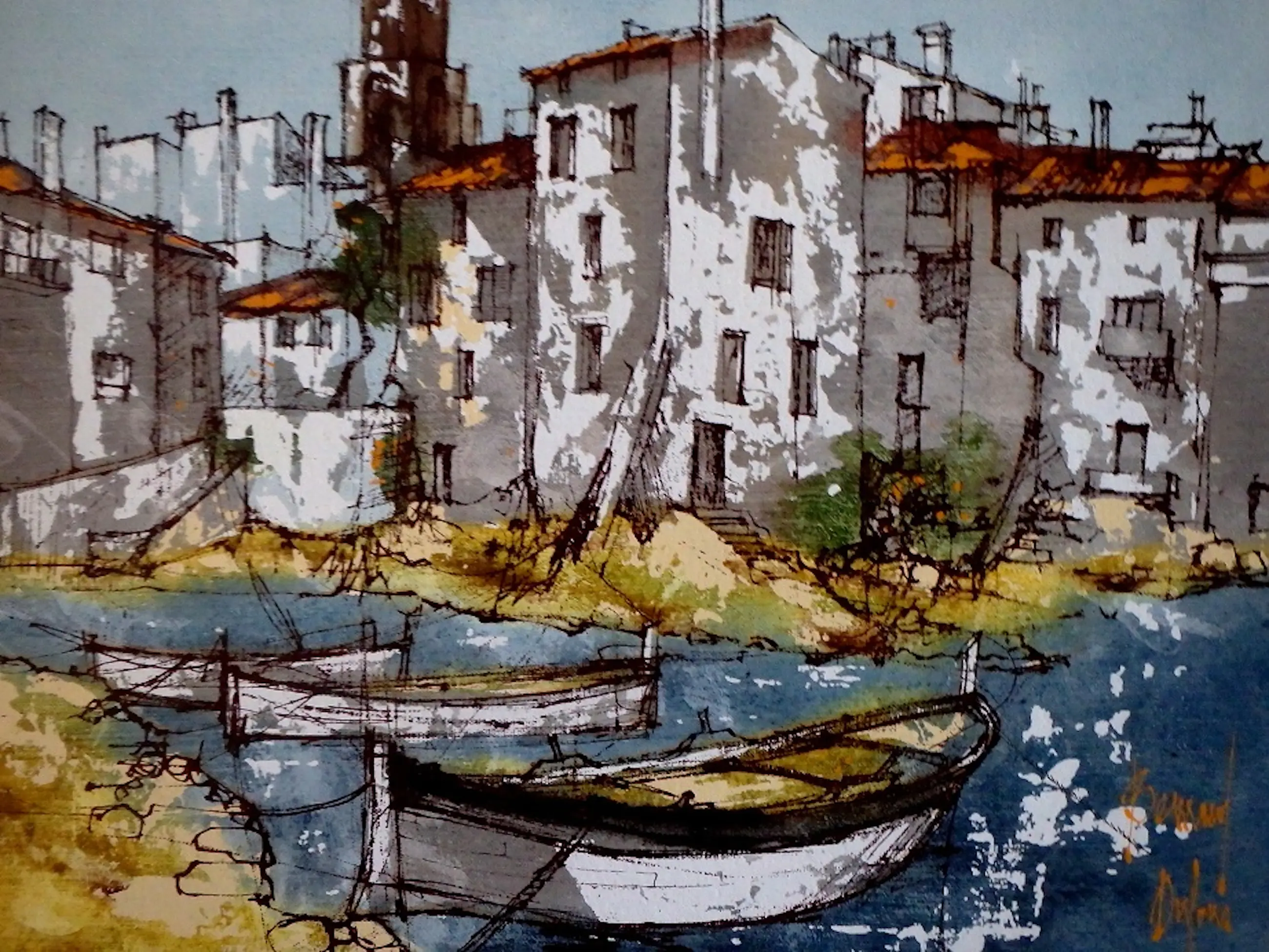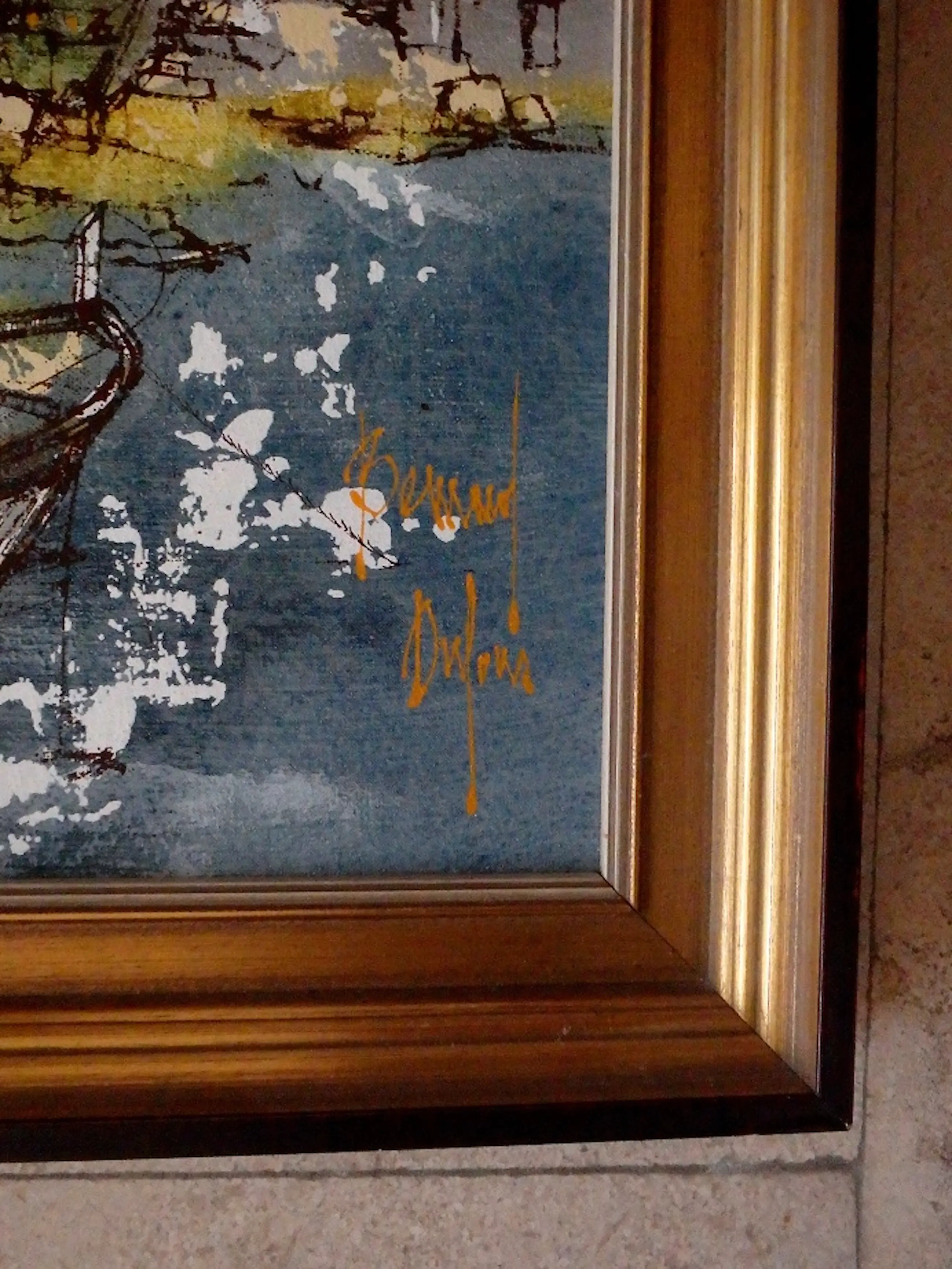 Gemengde techniek, vnl. acryl 38x45, rechtsonder gesigneerd Bernard Dufour, in keurige galerielijst.