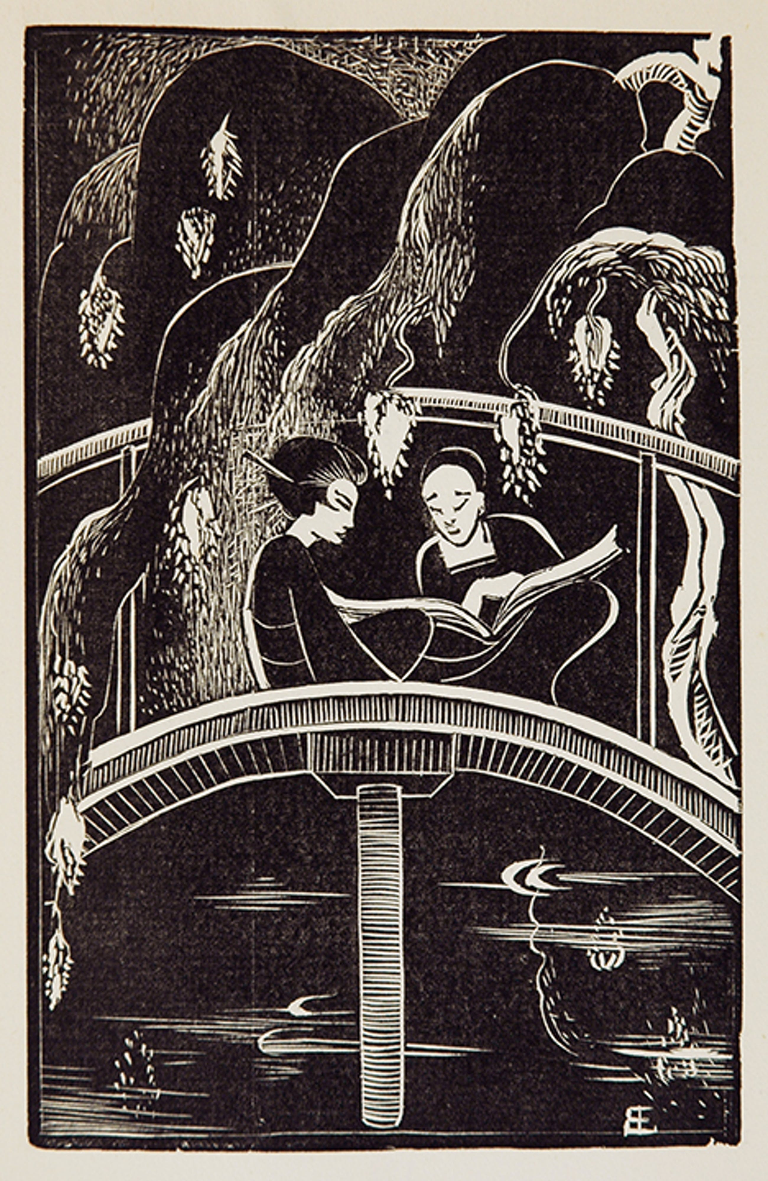 Bernard Essers was een Nederlands grafisch kunstenaar die bekend is geworden met houtsneden en penseeltekeningen in inkt; hij was ook aquarellist, etser, illustrator, glasschilder, kunstschilder en boekbandontwerper. Hij illustreerde het tijdschrift Wendingen en werken van bekende auteurs: de 'zwerver-boeken' van Arthur van Schendel en Deirdre en de zonen van Usnach van Adriaan Roland Holst en een boek van P.C. Boutens. Deze houtsnede is een van de vier boekillustraties uit: "Bloemen en legenden" door Tine Cool uit 1928. Essers' werk is figuratief; het geeft herkenbare voorstellingen. Tegelijkertijd heeft zijn werk ook abstracte en decoratieve kwaliteiten. Het kenmerkt zich door een grote expressiviteit die bereikt wordt met een strakke stilering. In sommige opzichten doet het aan Art Nouveau denken; in andere opzichten aan expressionistisch werk.