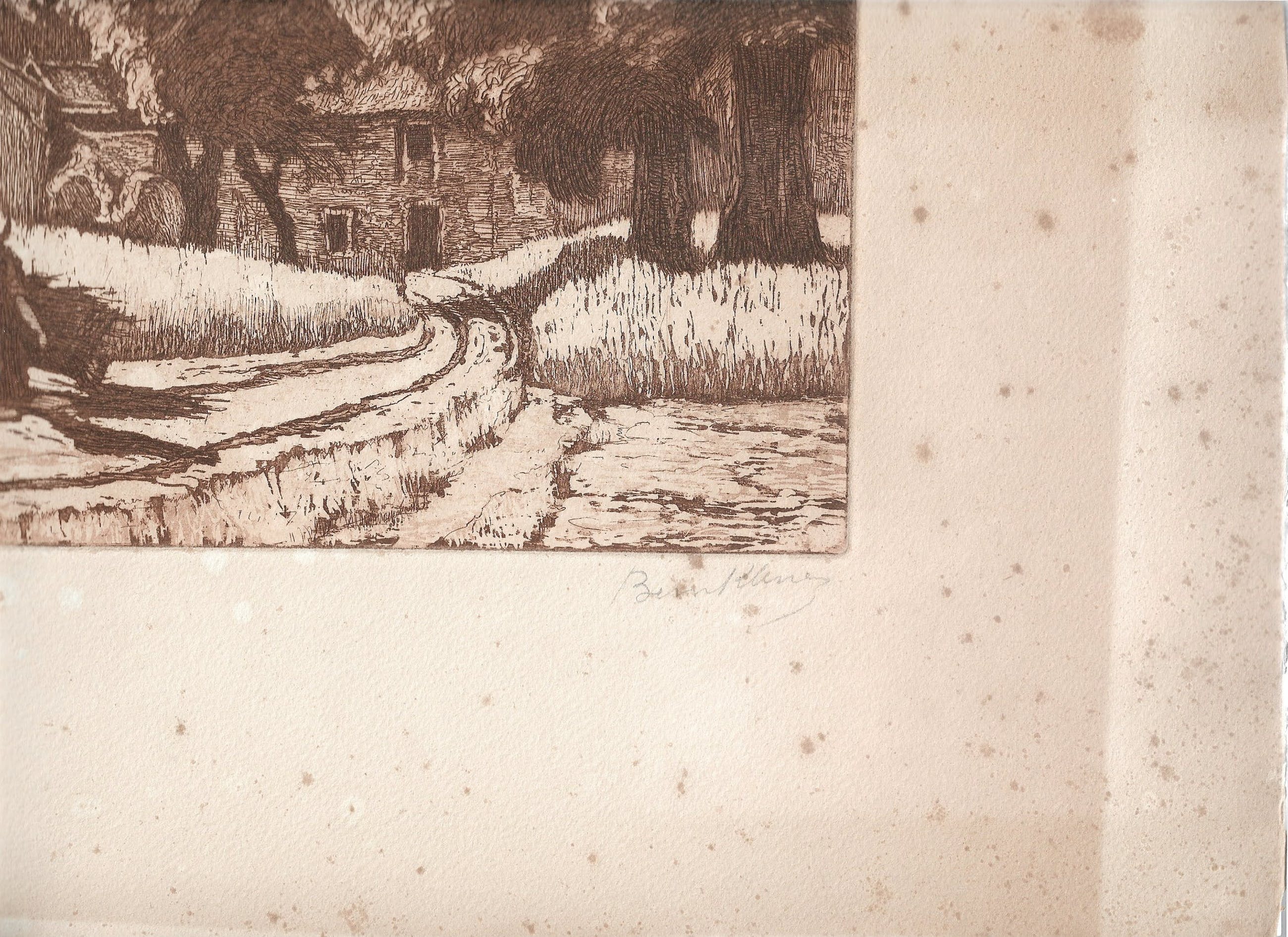 Bij Klene is het >> zéker door het afdrukken in bruin en kunstig gebruik van aquatint << een heerlijk impressionistische, magistrale en indrukwekkende ets! Een kunstwerk, dat het waard is om met ruime marge er omheen, een passend ingelijste plaats te krijgen. Daar zal het zeker belangstellende aandacht trekken!