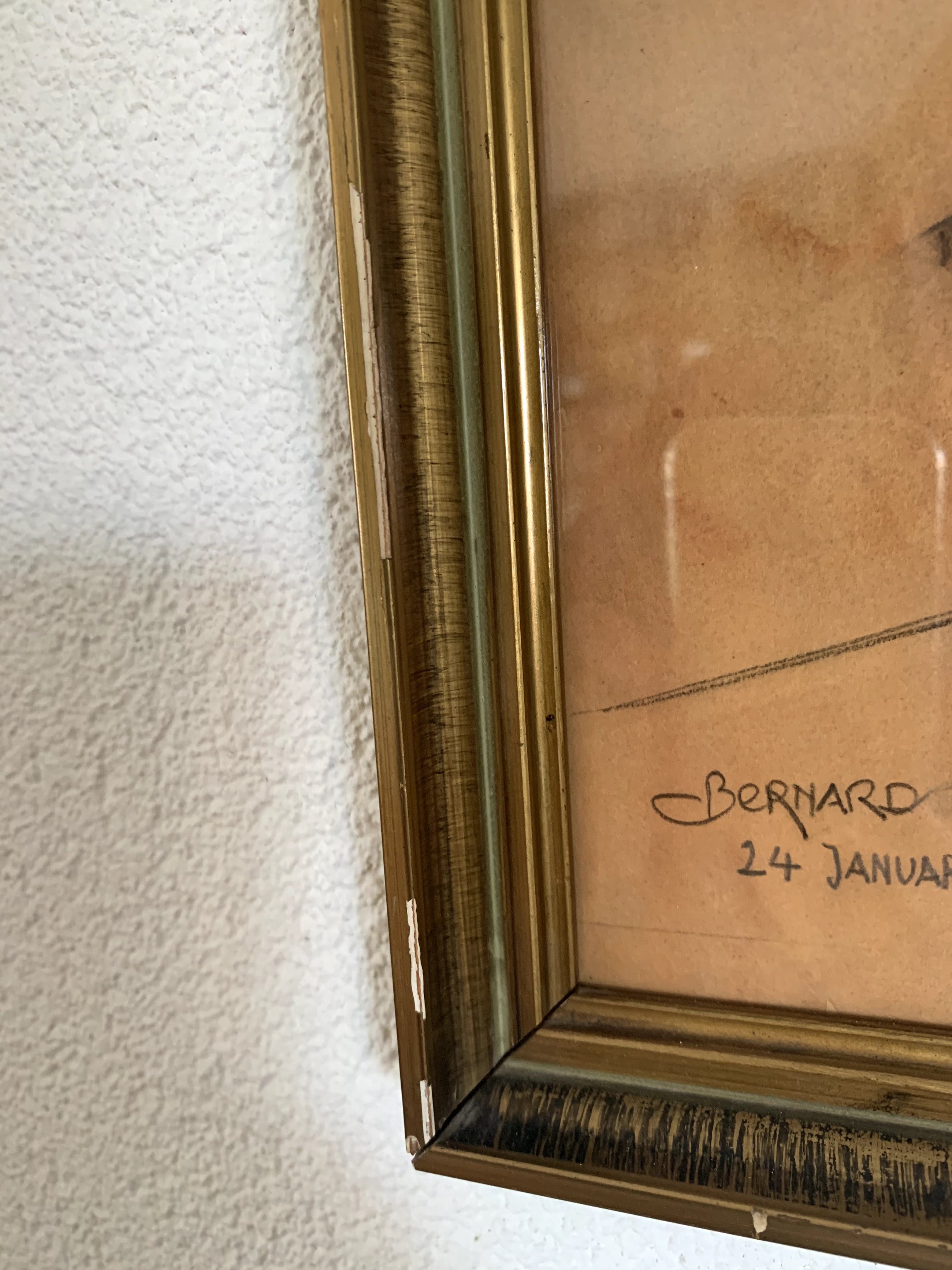 Bernard Leemker staat bekend om zijn sfeervolle afbeeldingen van clowns, danseressen en bartaferelen. Deze pastel uit 1936 toont clowns met muziekinstrumenten met om hen heen dieren. Ingelijst achter glas, lijst licht beschadigd (zie foto). Pastel in goede staat.