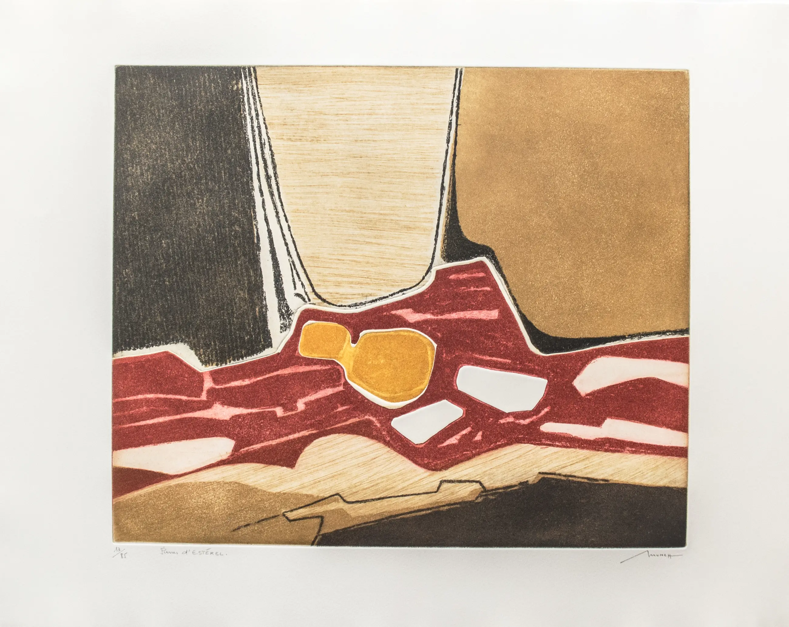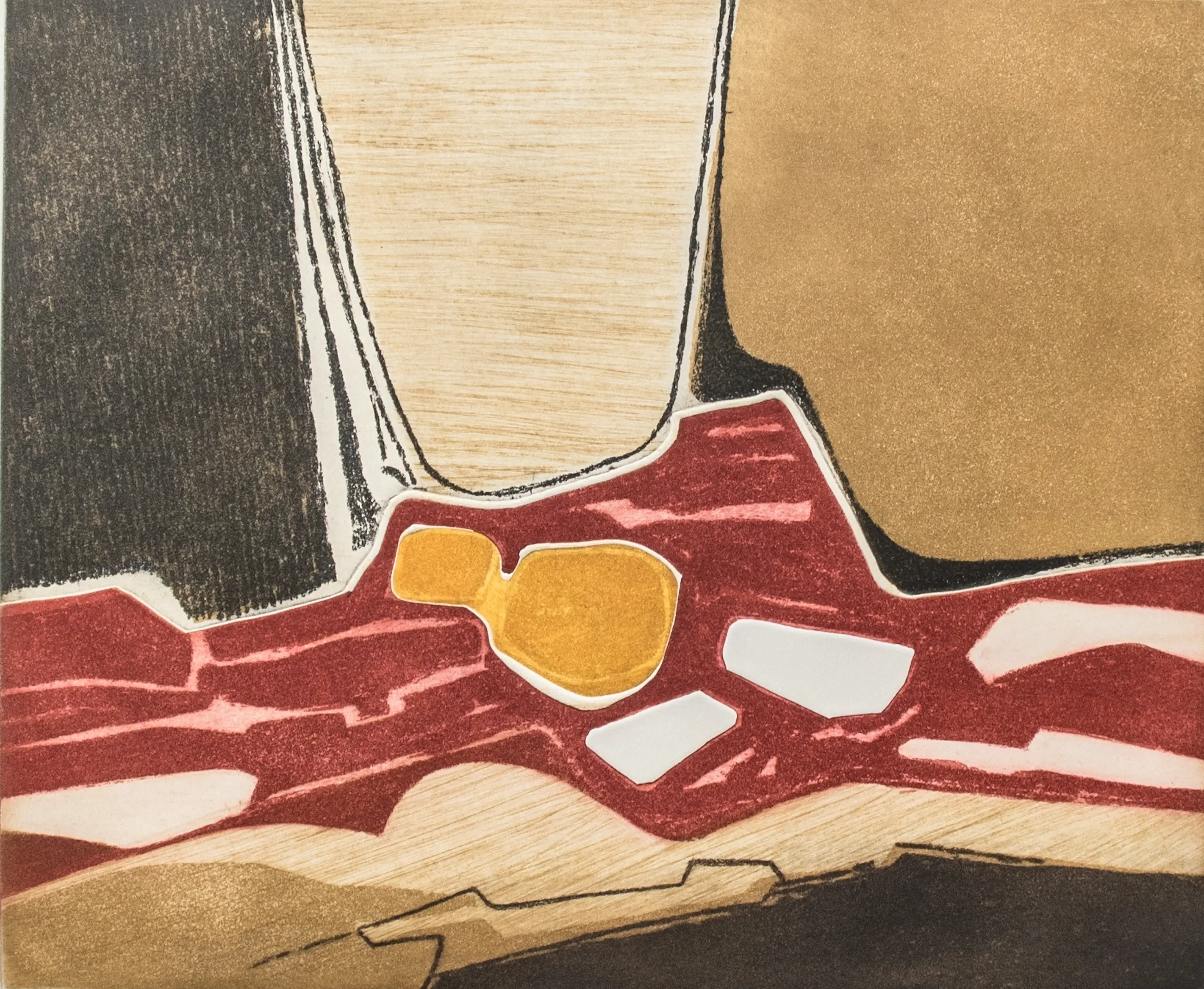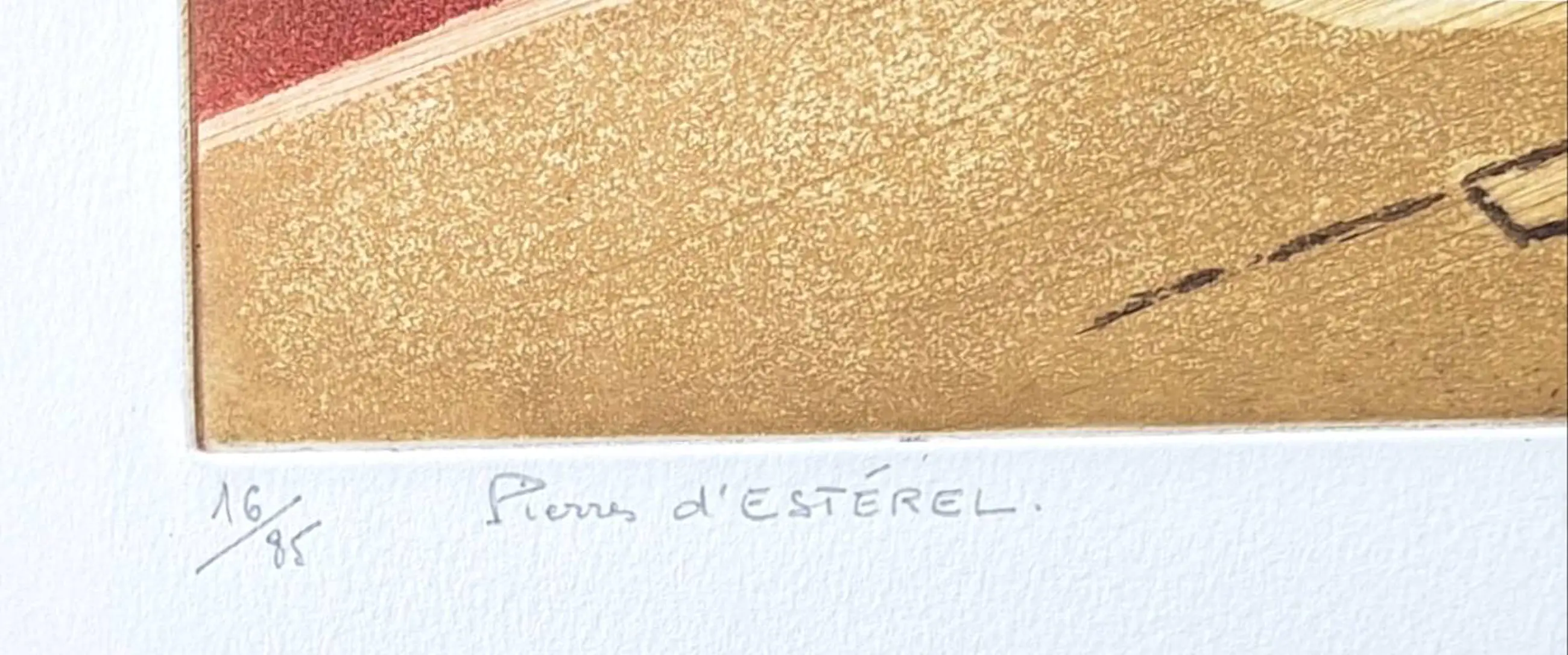 Kleurets met reliëfdruk, handgesigneerd, genummerd en getiteld. Oplage 16/85.
