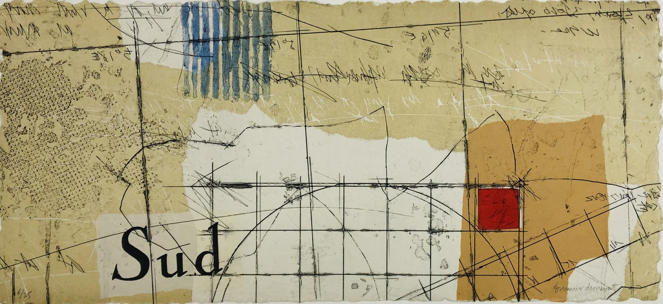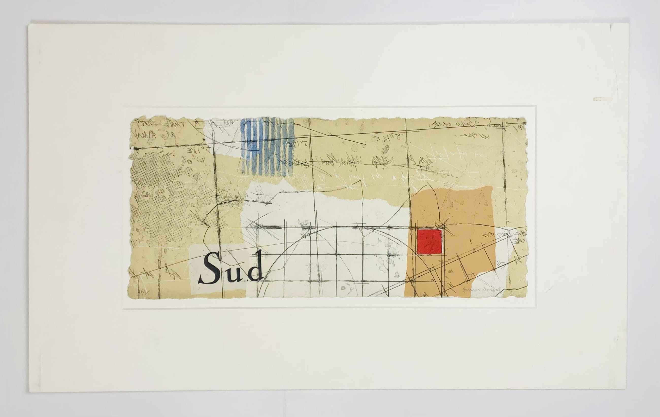 Fraaie werk van Bernard Remusat (1953). Het werk zit geplakt op karton.