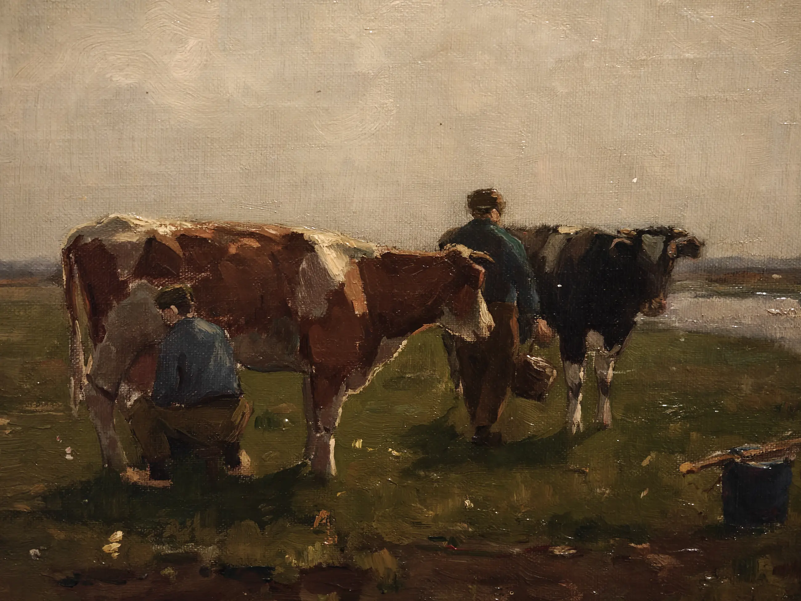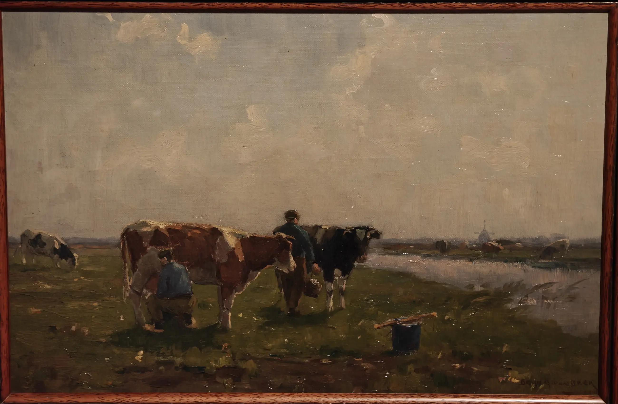 Bernard van Beek - Olieverf op paneel, Koeien Melken