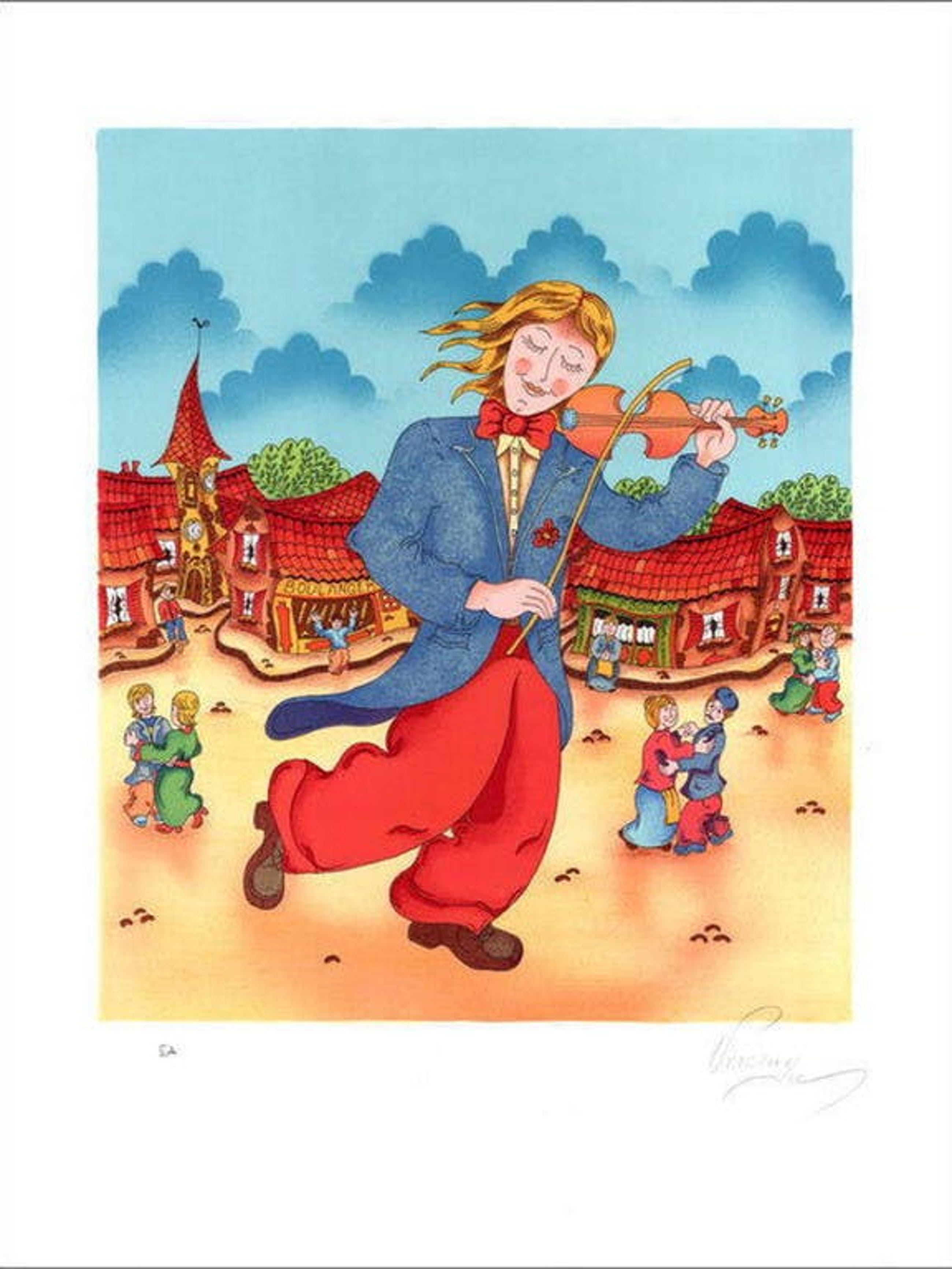 Heel leuk en betaalbaar werk van deze kundige Franse naïeve schilder. Prachtig mooie en heldere kleuren.