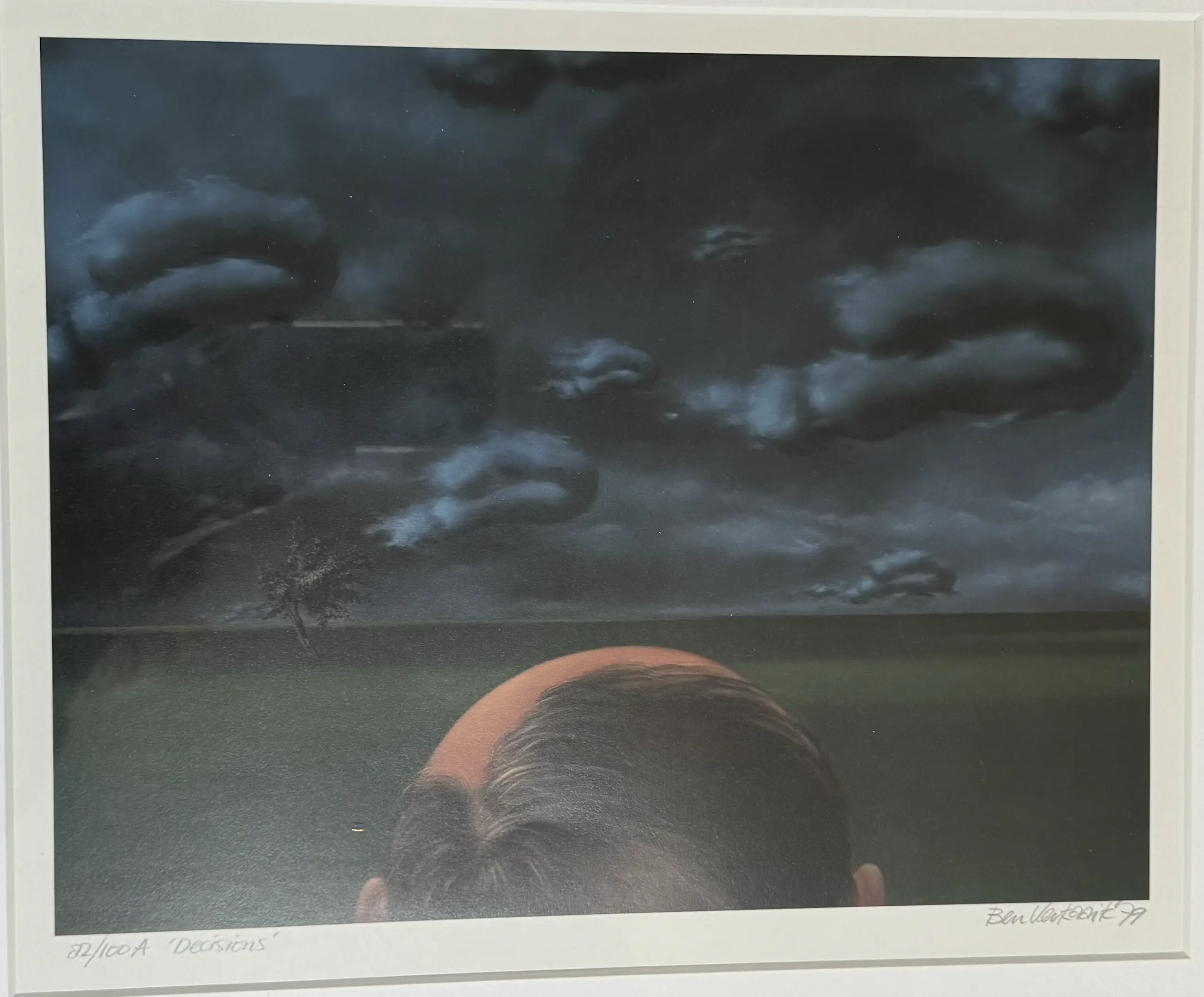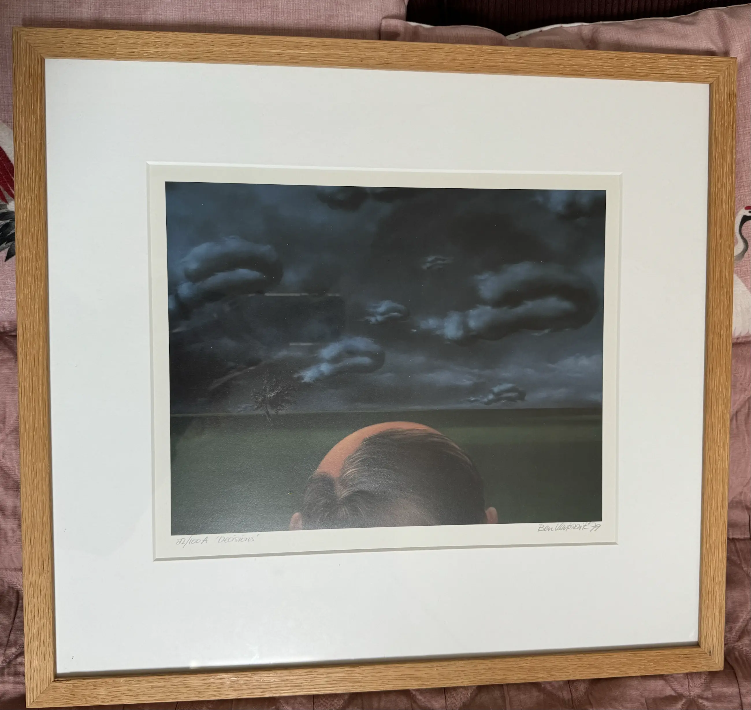 Prachtige, intrigerende zeefdruk (?) van Ben Verkaaik. Ingelijst incl passe partout en in uitstekende staat. Handgesigneerd. Zelf gekocht op een veiling van ING dus verder geen info over de historie en het werk.