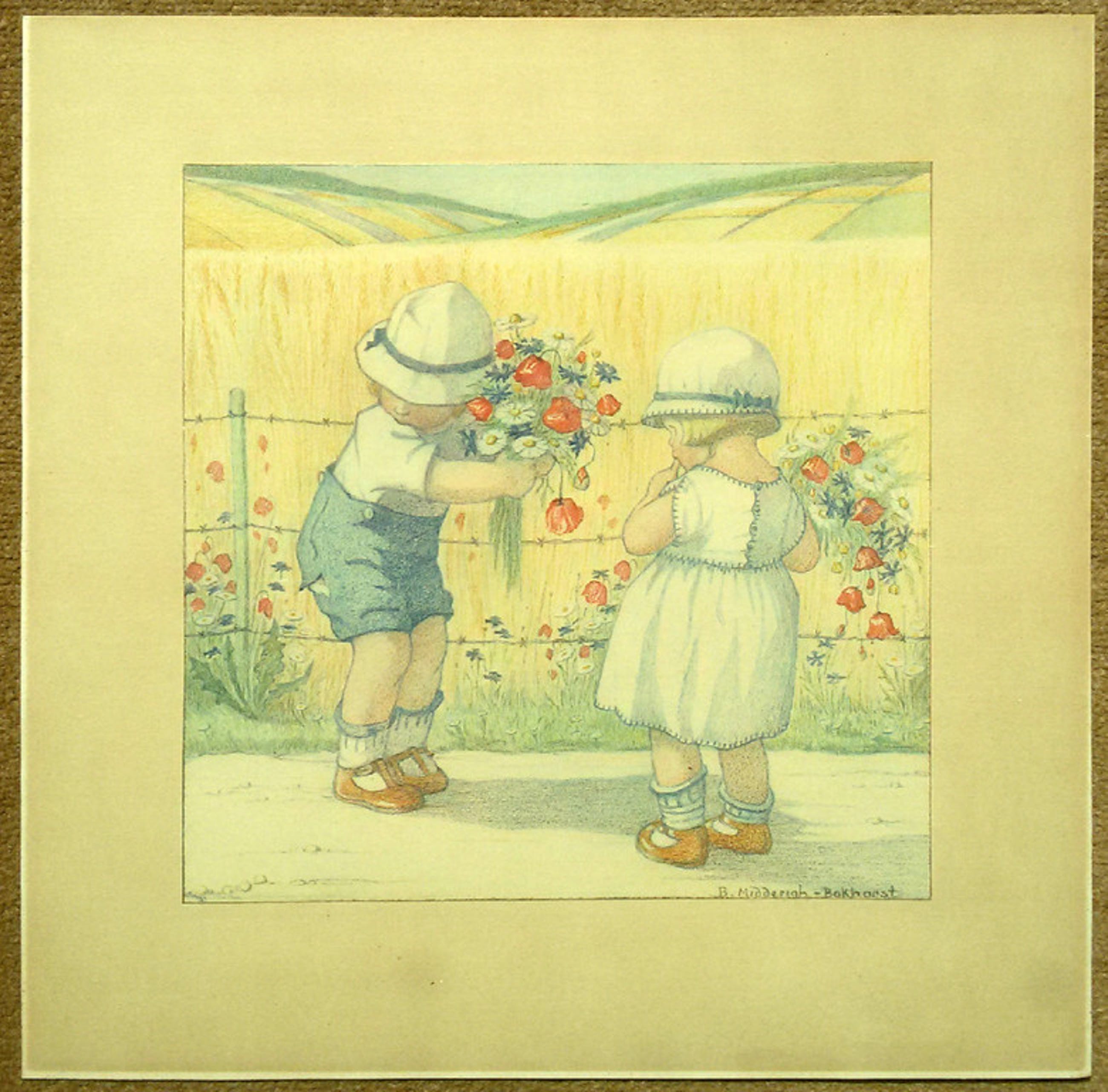 Leuk werkje voor de liefhebber van dit genre. In de druk gesigneerde litho, gemonteerd op dik karton. In redelijke staat, wel verkleurd.