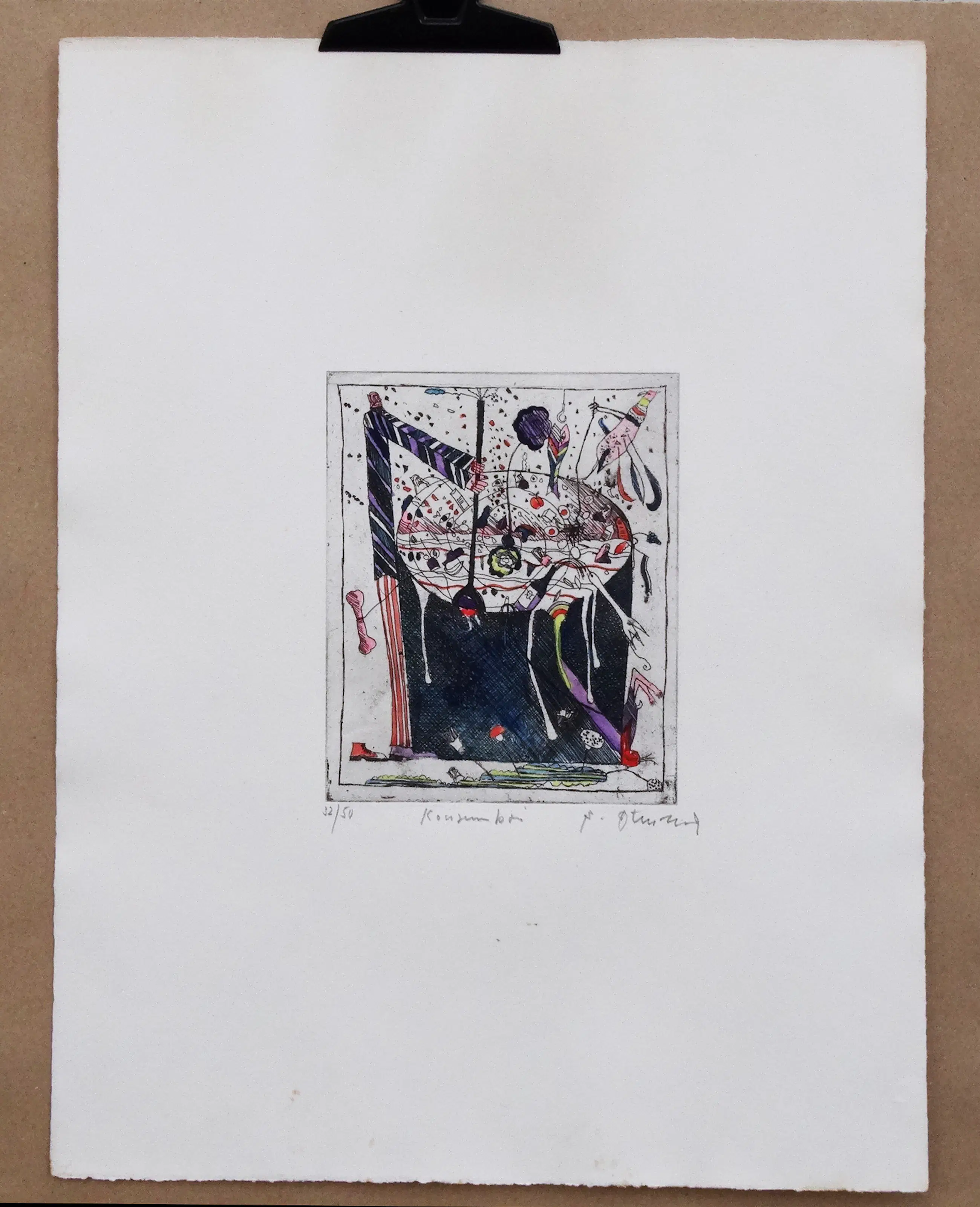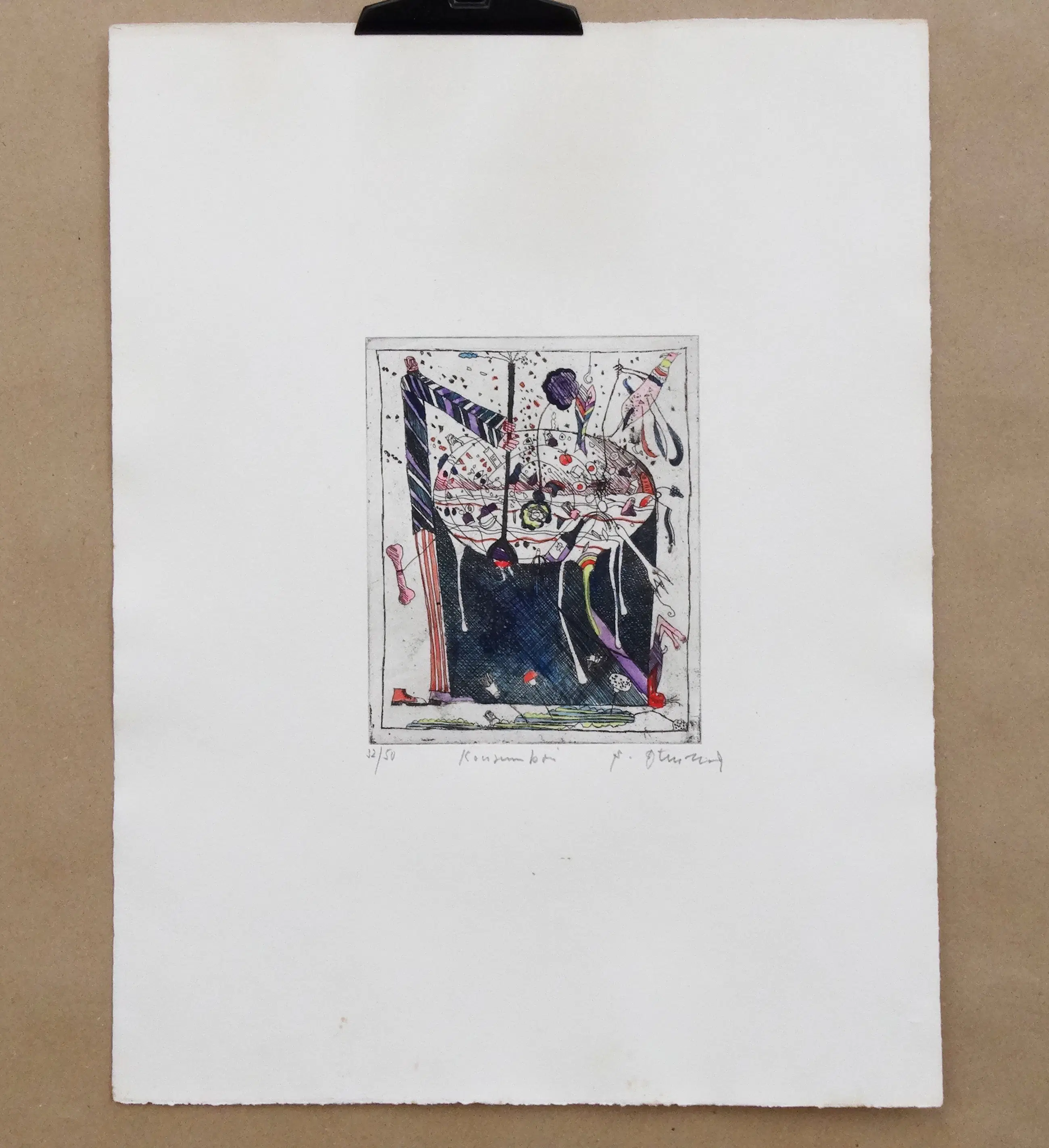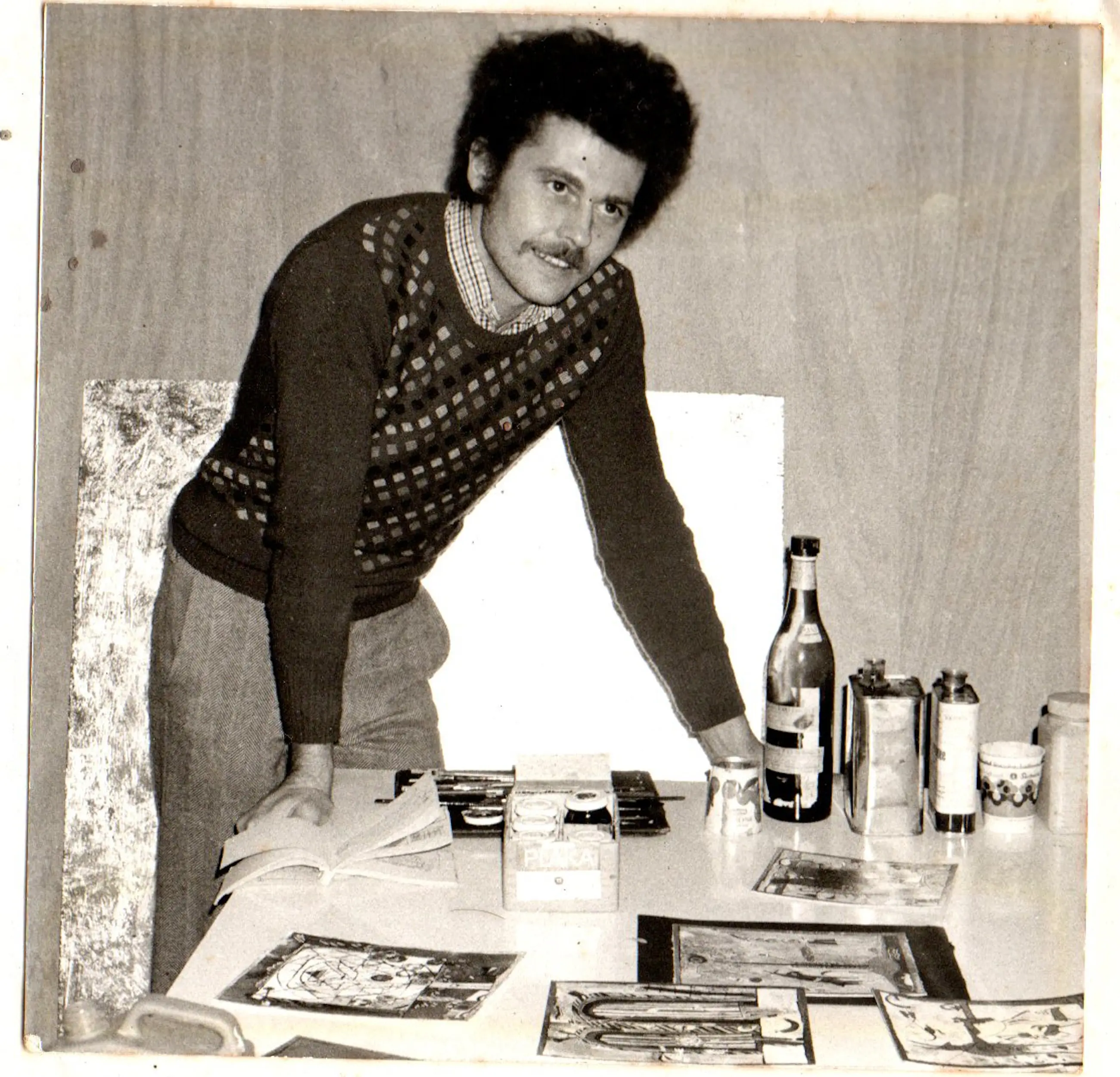 Als gratis bonus: een zeer zeldzame originele foto van de kunstenaar in zijn atelier, uit circa 1974 (op fotopapier, formaat 8,9 x 8,9 cm).