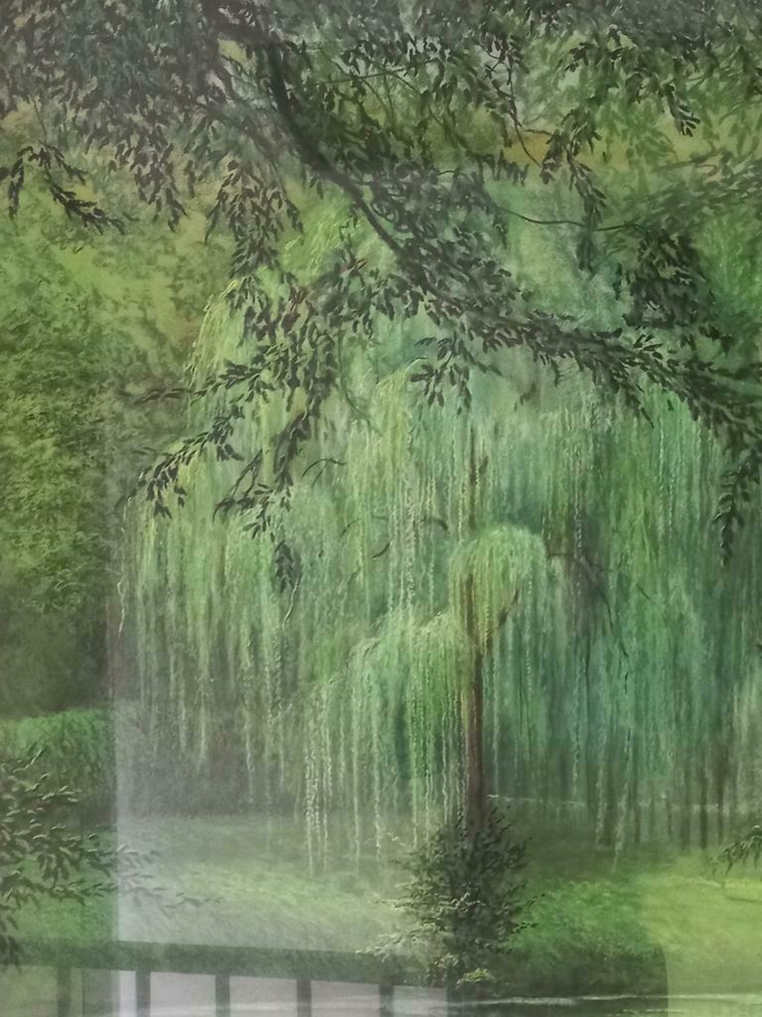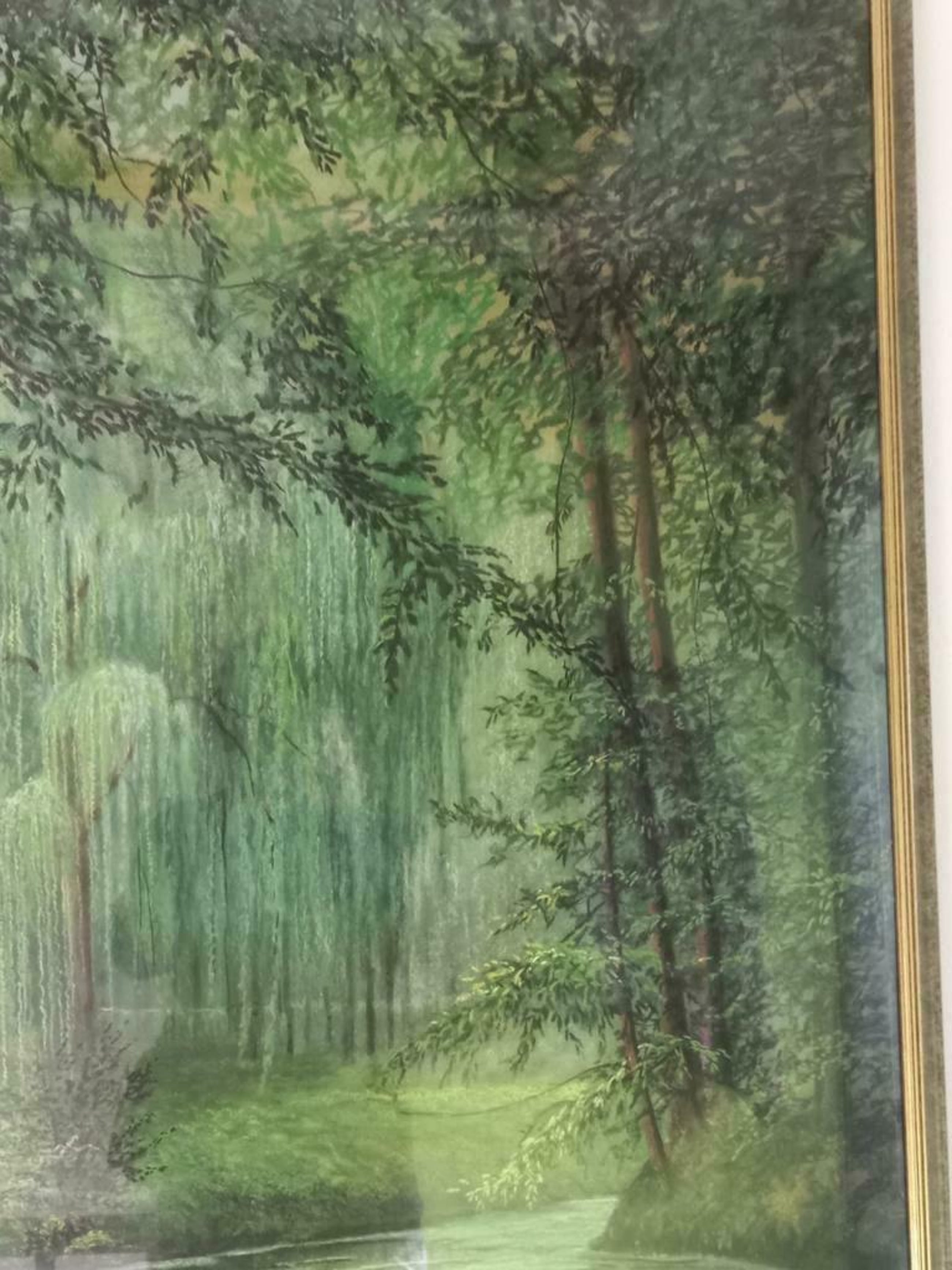 Broer verzetsstrijder en kunstenaar John Dons .pastel is van het Marknesse bos . Gesigneerd anno 1939 . In zeer goede staat en magisch betoverend pastel met vooral veel groenen kleuren. Afmeting ( ingelijst) 105 breed. 155 hoog