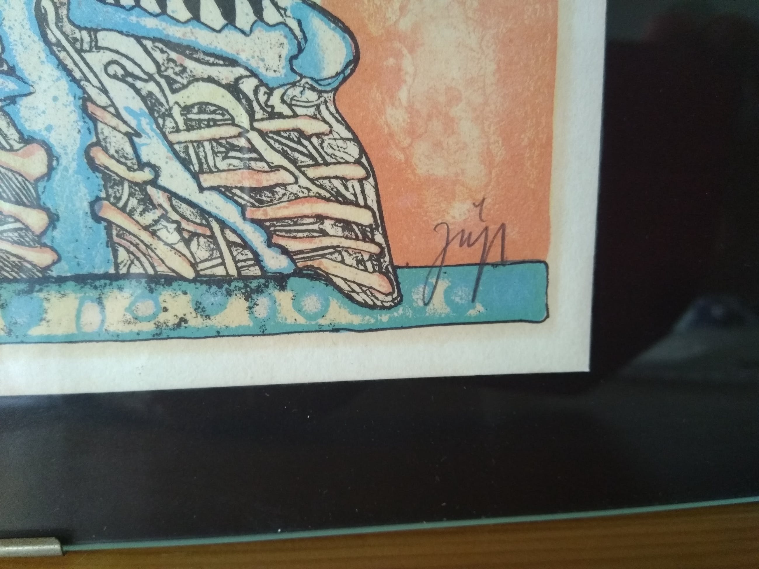 Lithographie in 4 Farben: rot, blau, gelb und schwartz. Nummer 1385 van 10.000.